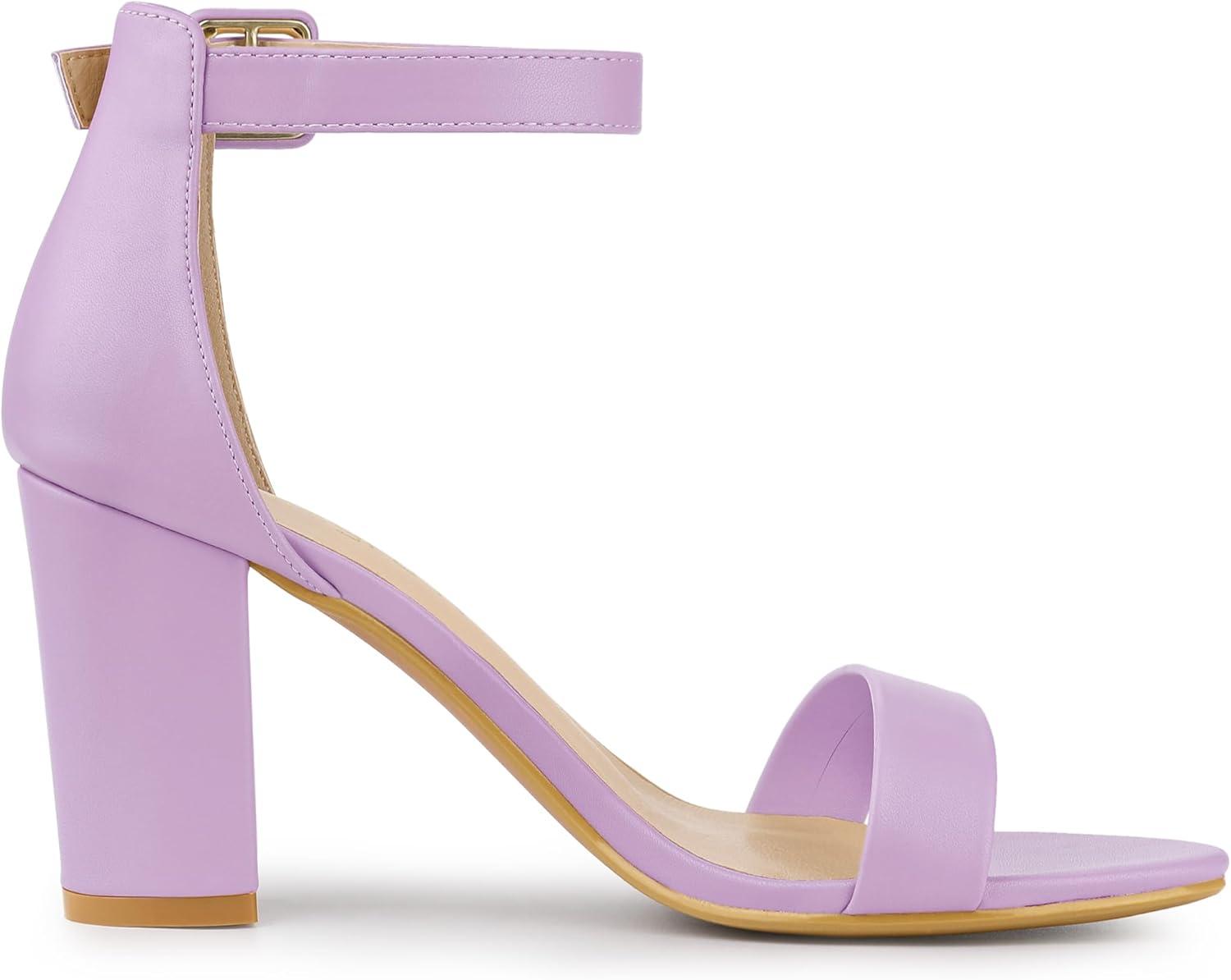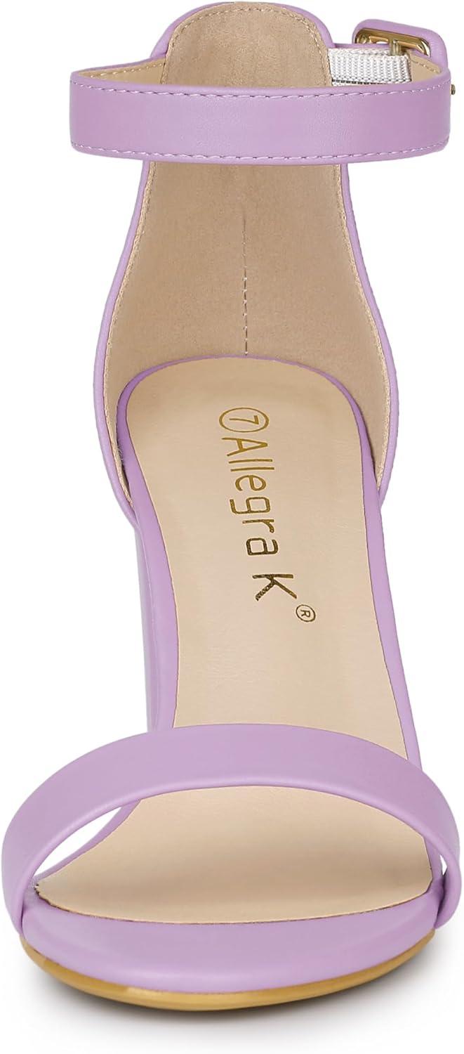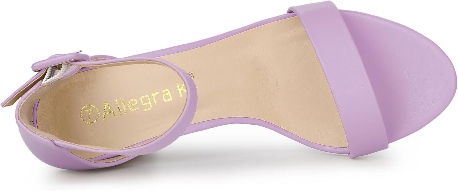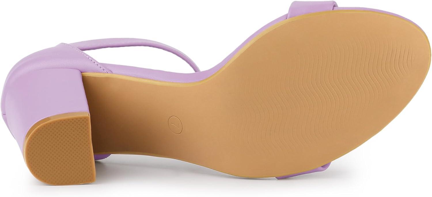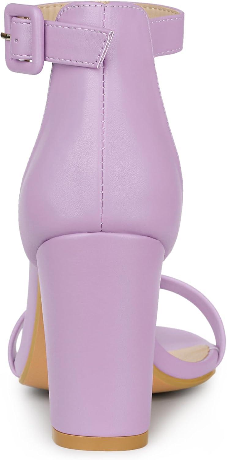 Allegra K Women's Solid Open Toe Buckle Block Heel Ankle Strap Sandals(Purple)
