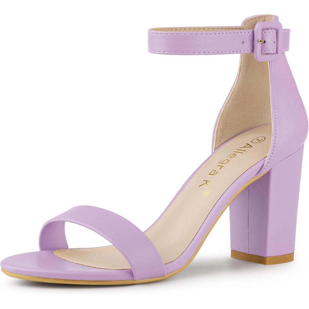 Allegra K Women’s Solid Open Toe Buckle Block Heel Ankle Strap Sandals(Purple)