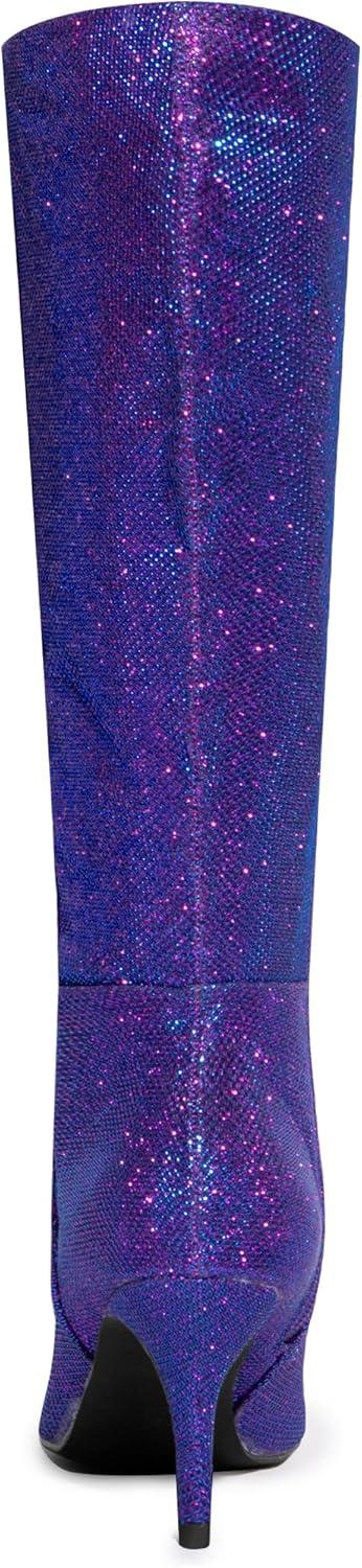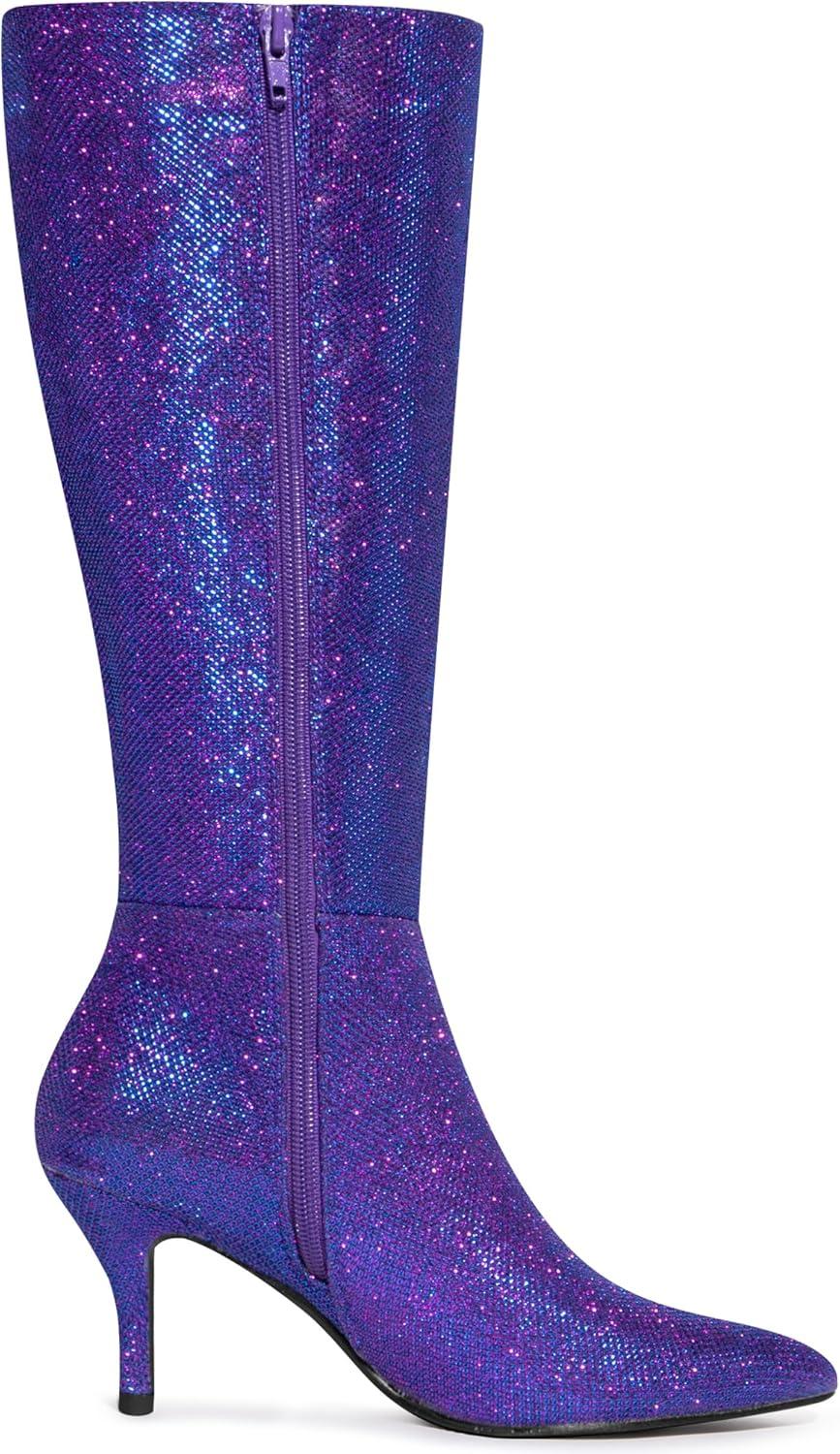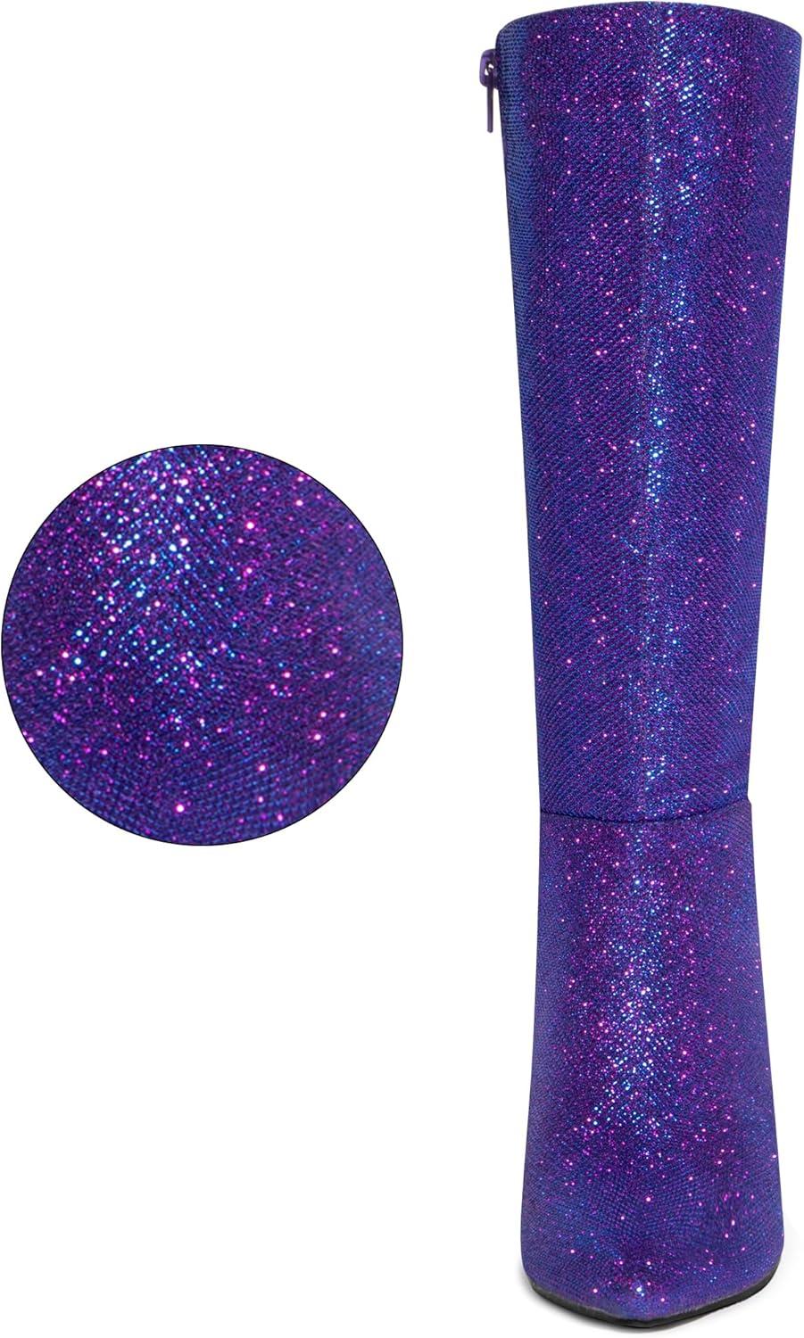Allegra K Women's Sparkle Glitter Pointy Toe Stiletto Heel Knee High Boots(Purple)