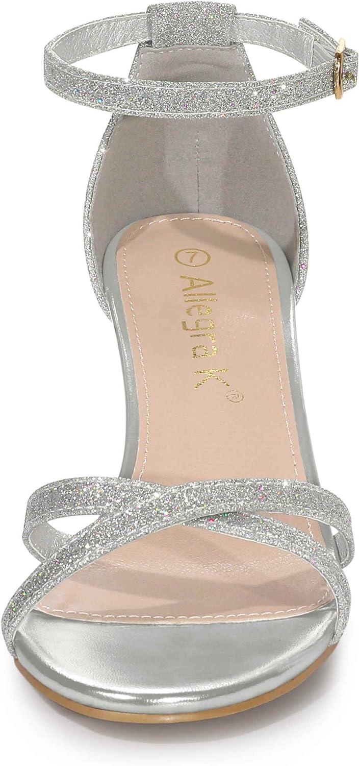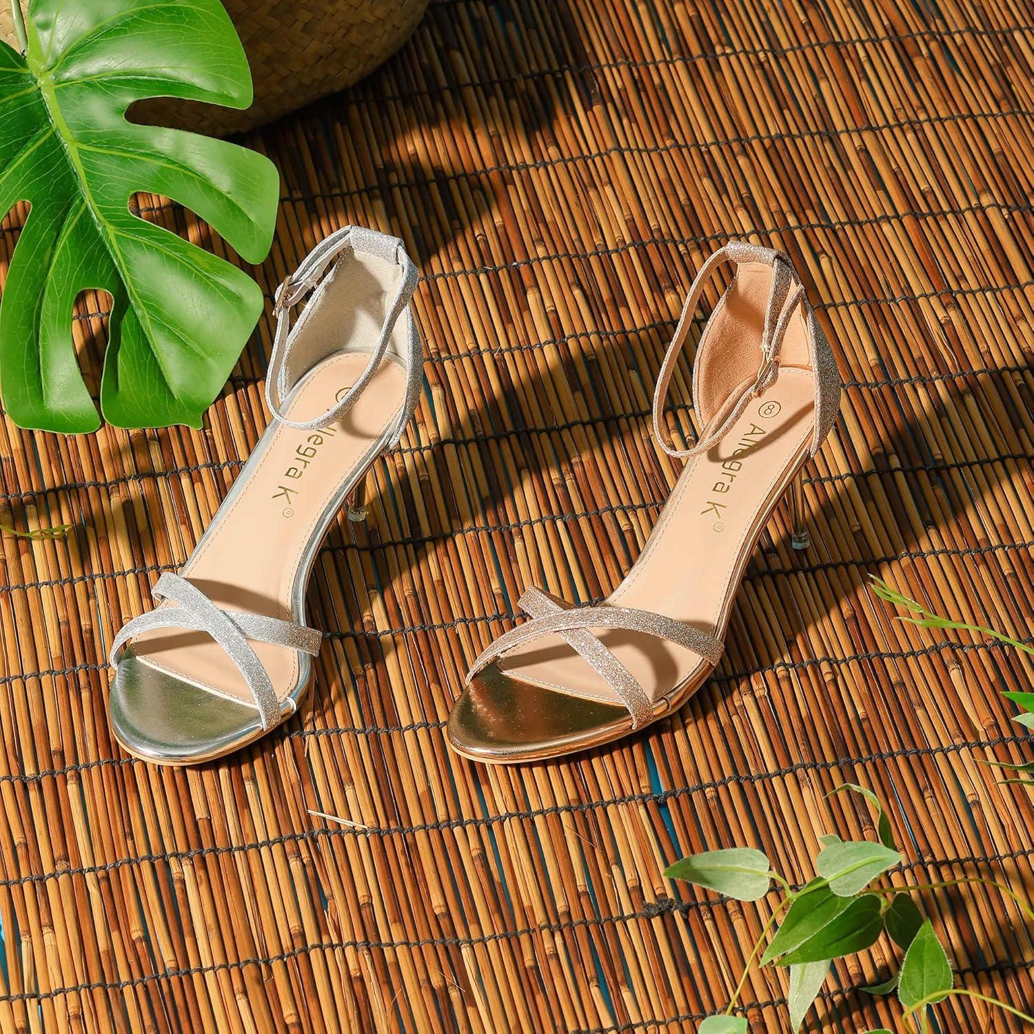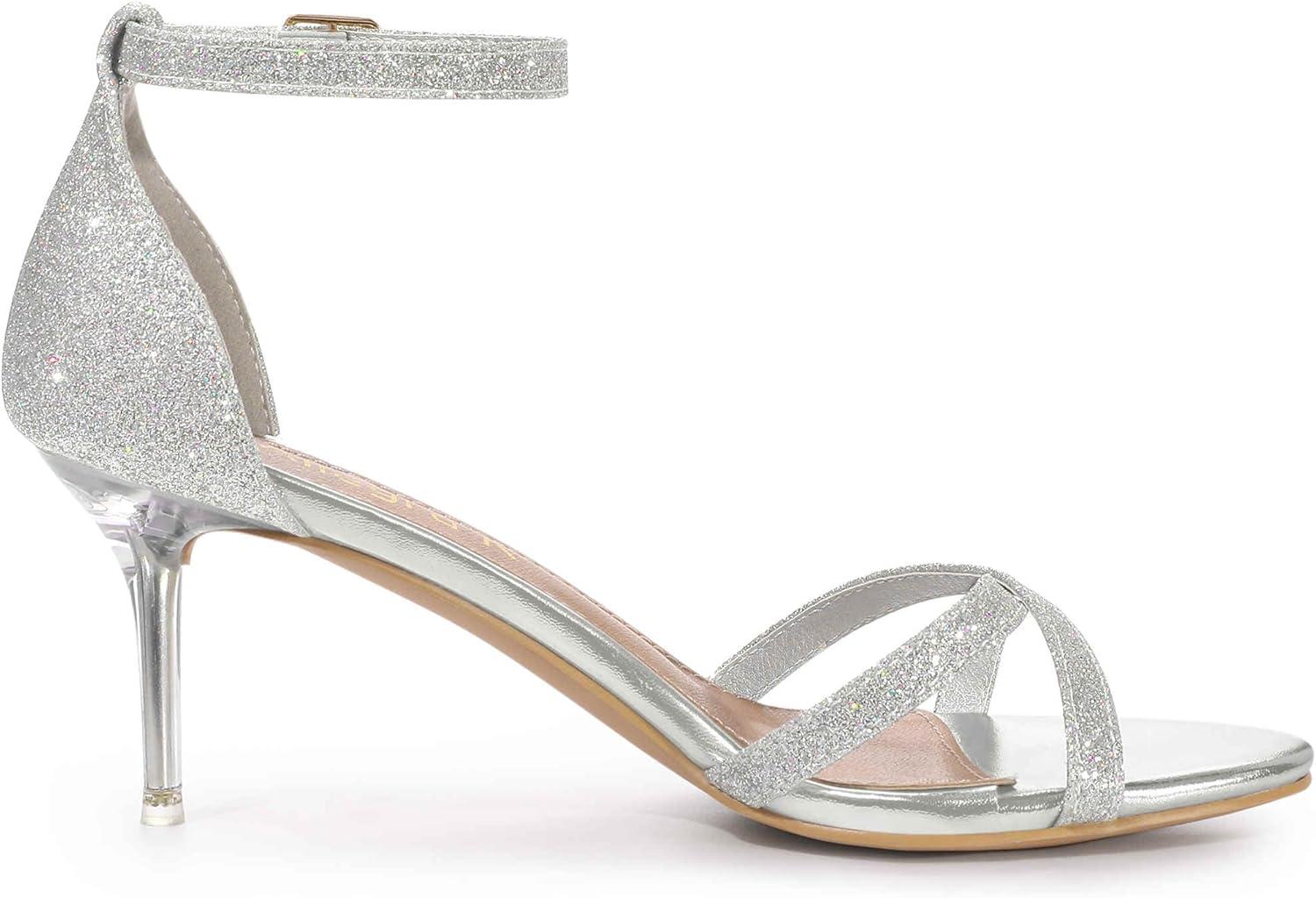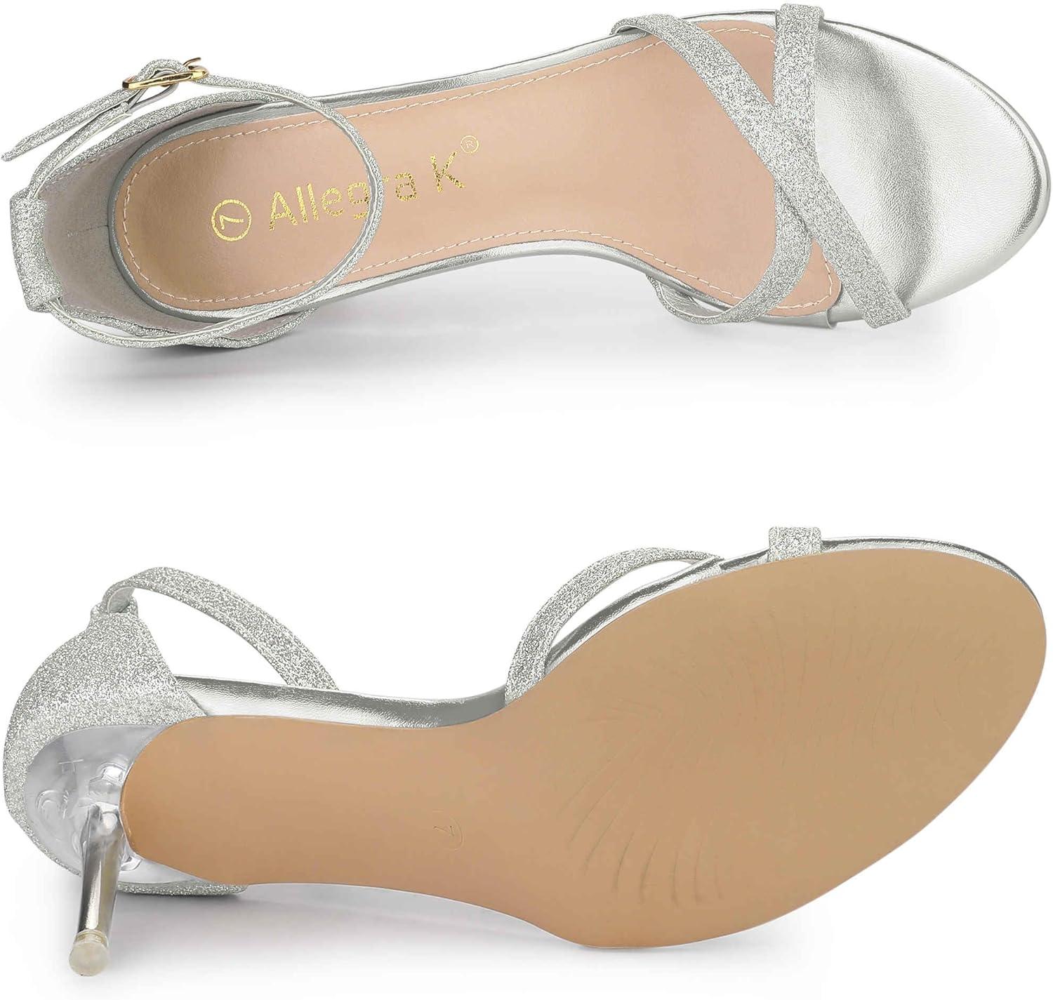 Allegra K Women’s Sparkly Glitter Ankle Straps Stiletto Clear Heels Sandals(Silver)