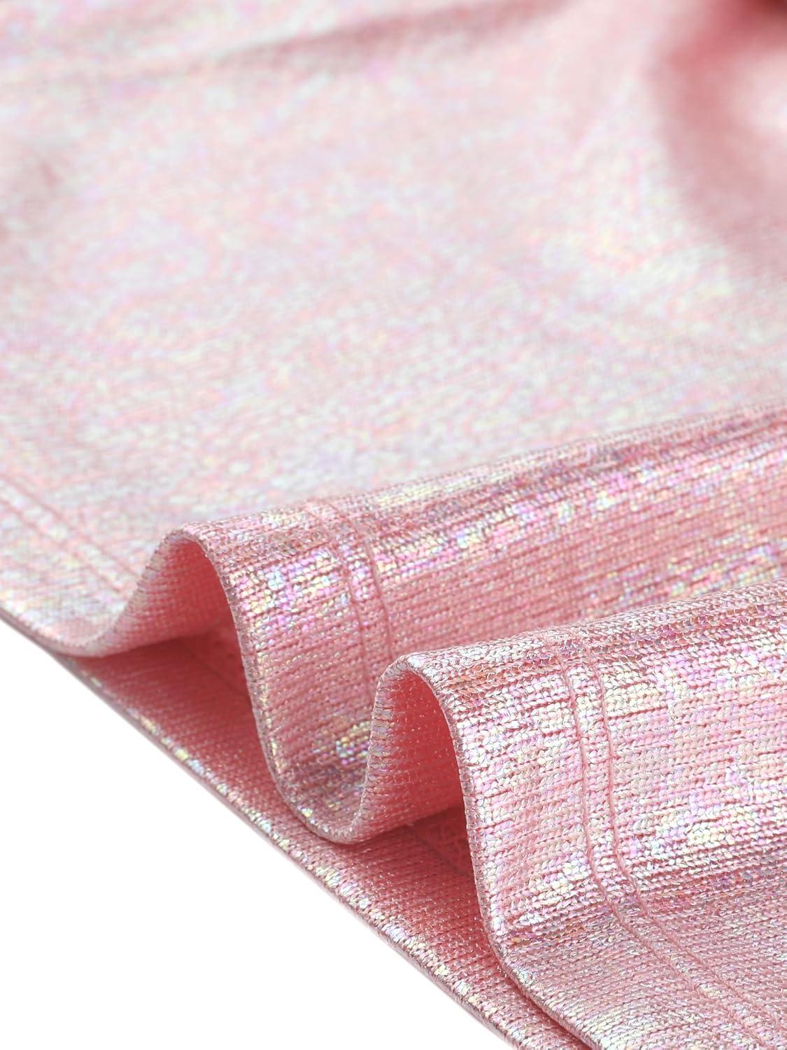 Allegra K Women’s Sparkly Glitter Tops Shiny Metallic 80s Disco Outfits(Pink)