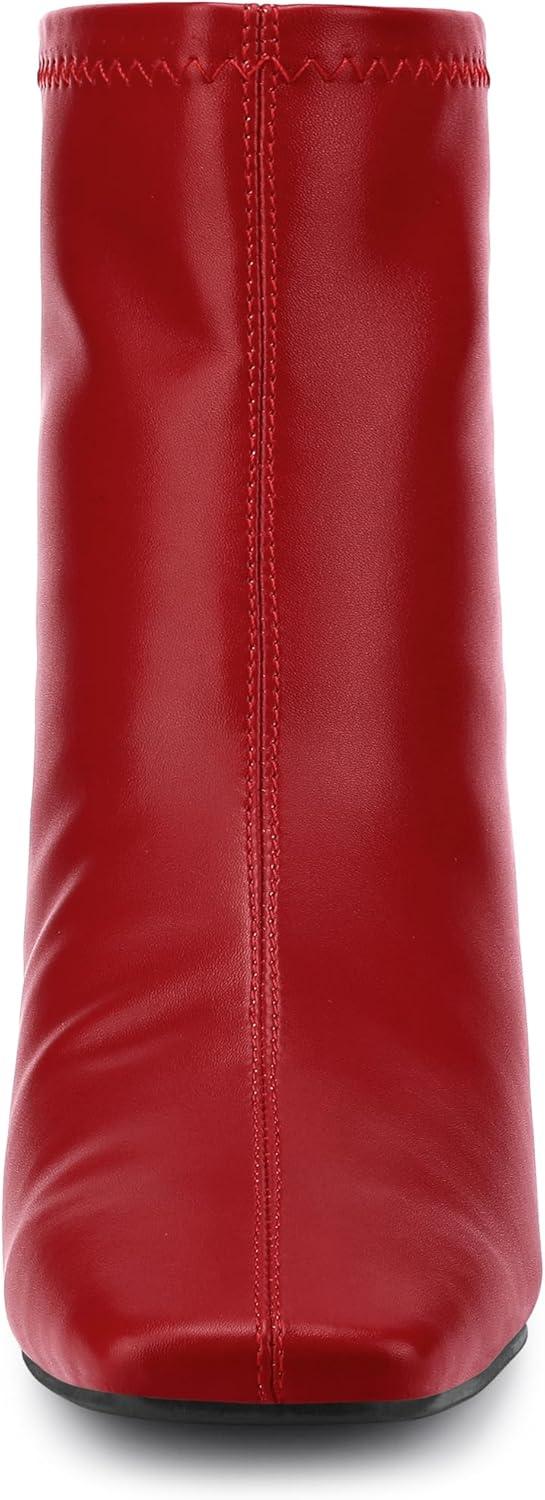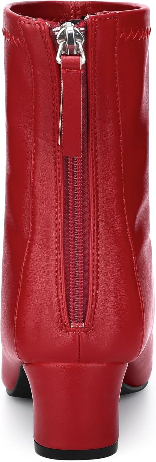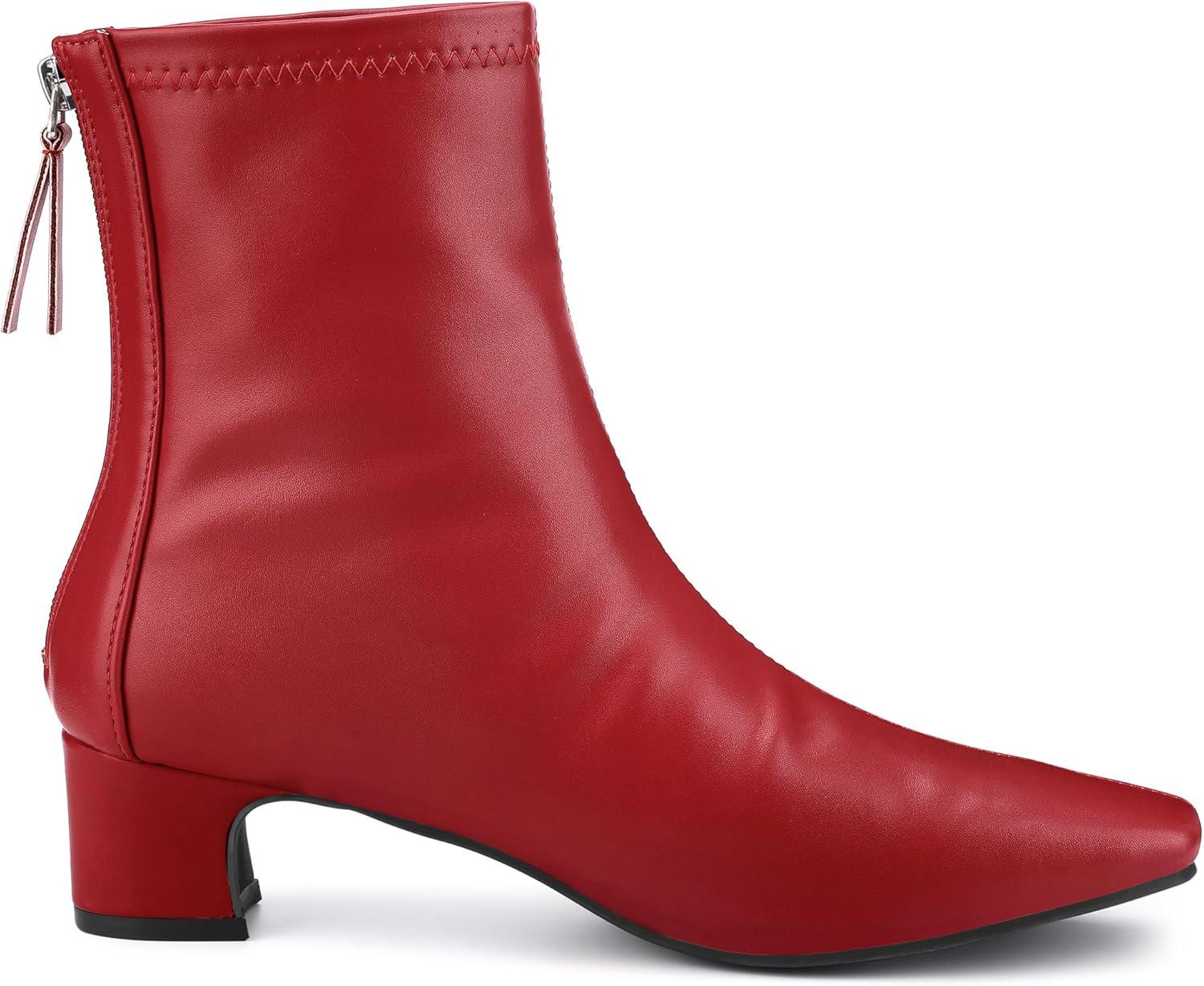 Allegra K Women’s Square Toe Block Heels Ankle Boots(Red)