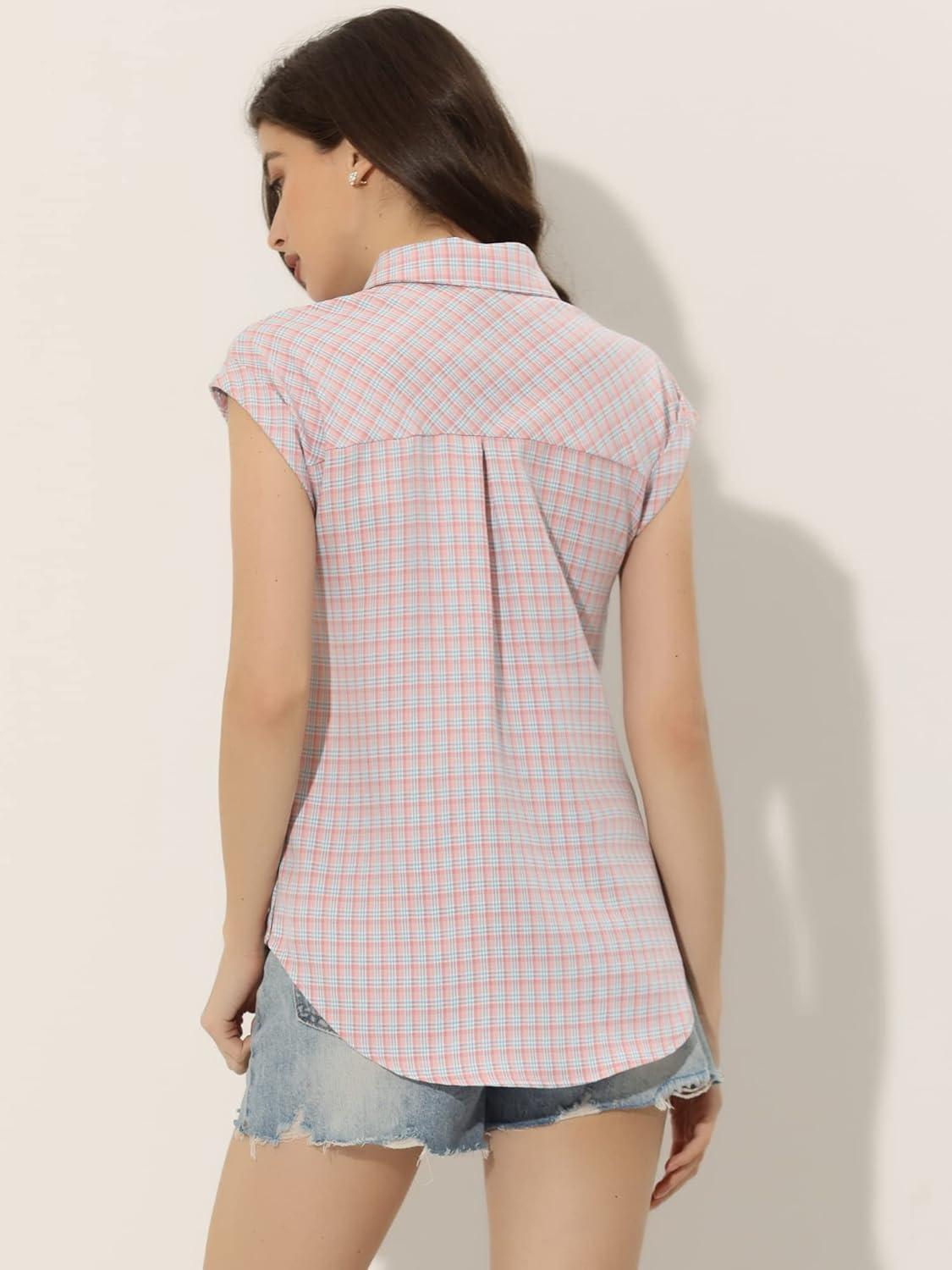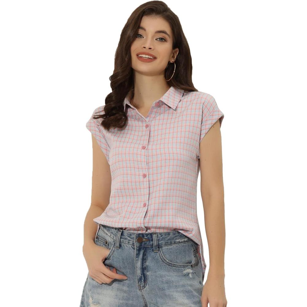 Allegra K Women’s St Patrick’s Day Plaid Tops Casual Short Sleeves Western Button Down Shirt(Pinks)