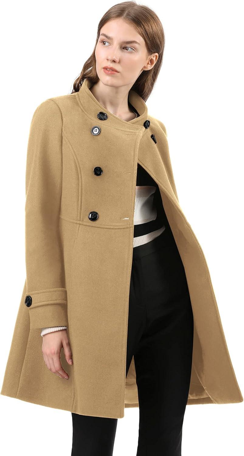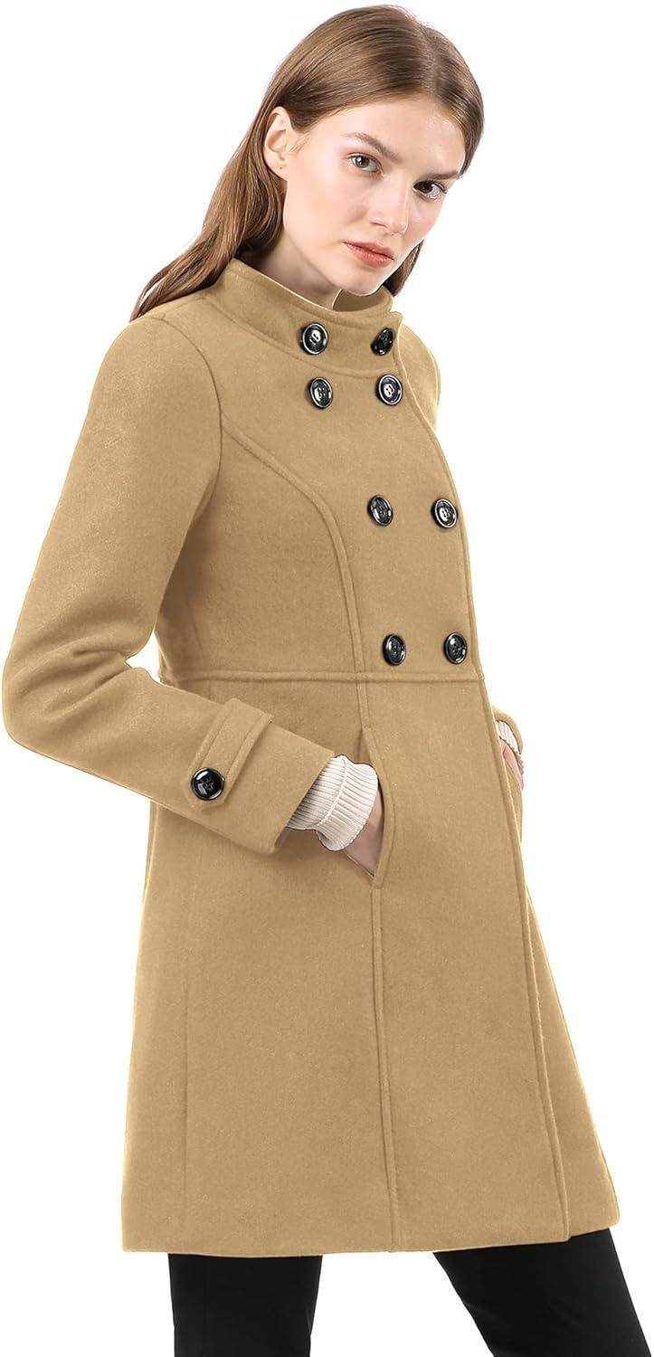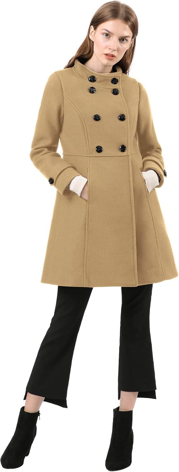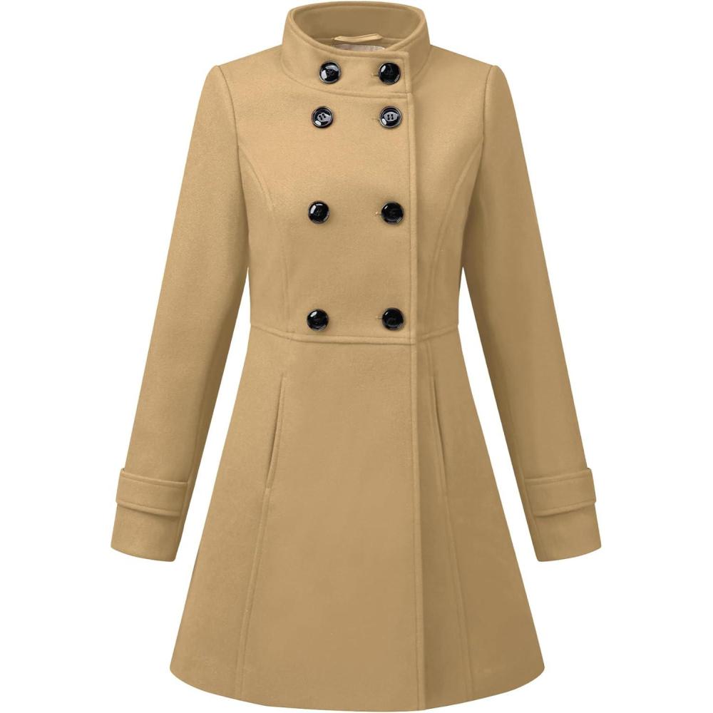 Allegra K Women’s Stand Collar Double Breasted Slant Pockets Trendy Outwear Winter Coat(Khaki)