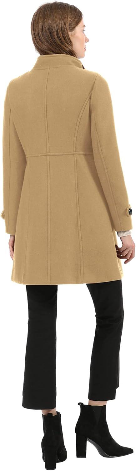 Allegra K Women's Stand Collar Double Breasted Slant Pockets Trendy Outwear Winter Coat(Khaki)