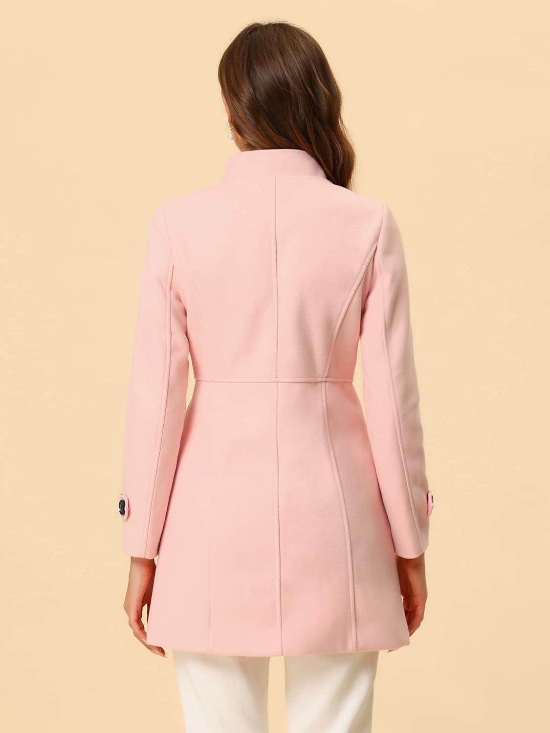 Allegra K Women's Stand Collar Double Breasted Slant Pockets Trendy Outwear Winter Coat(Pink)