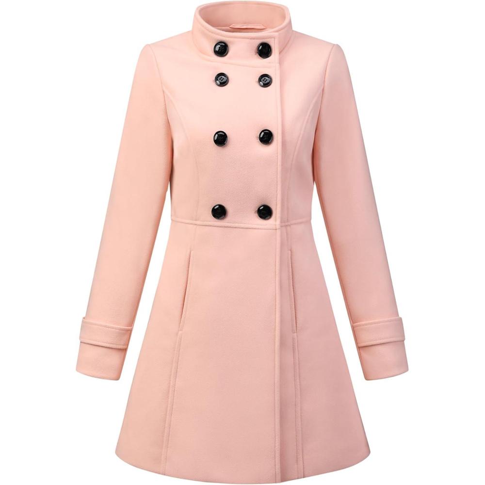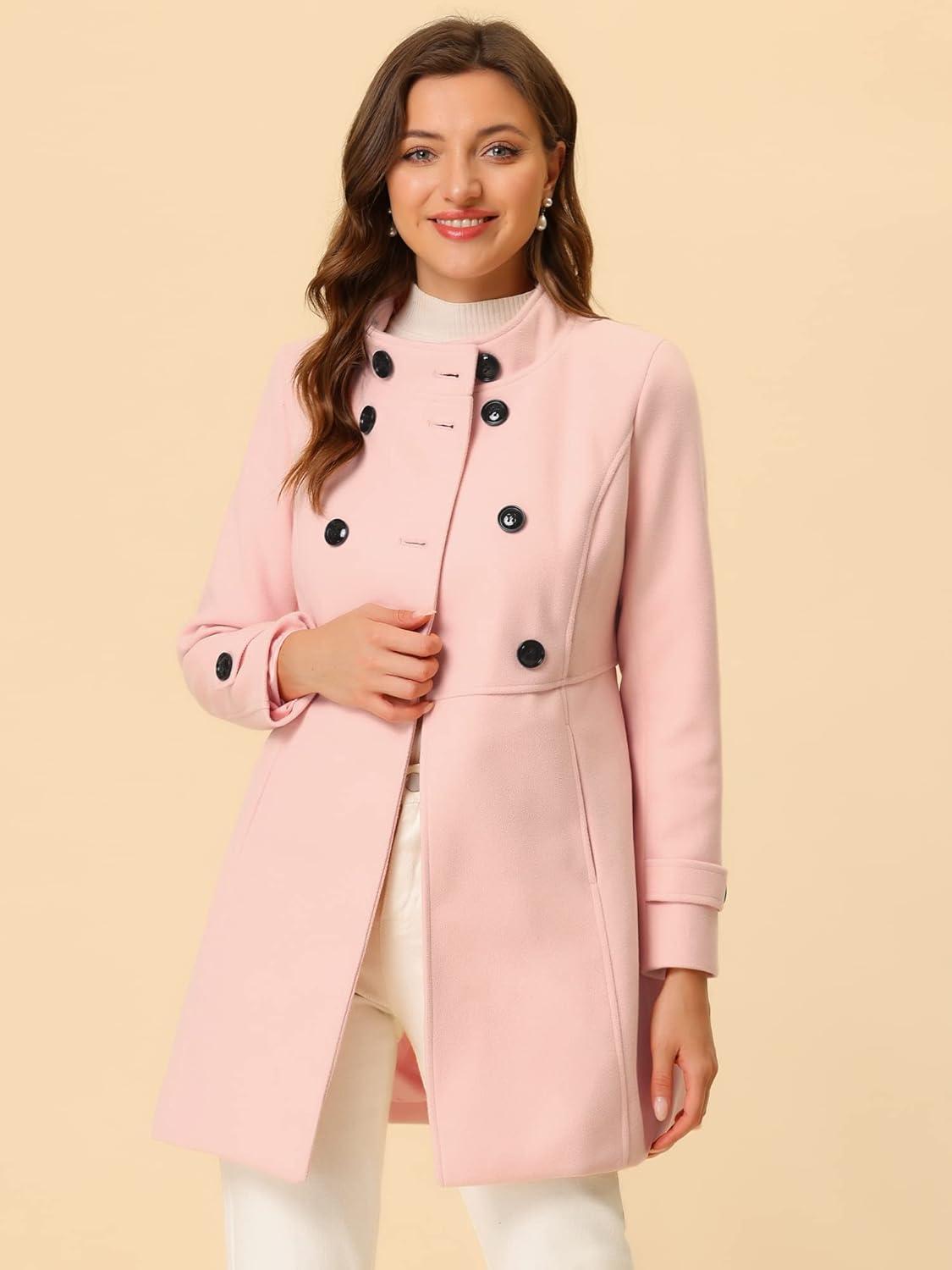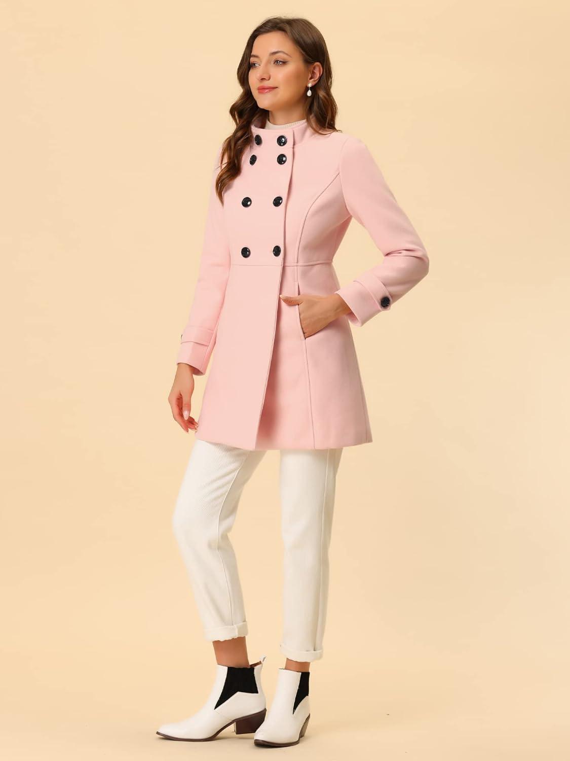Allegra K Women’s Stand Collar Double Breasted Slant Pockets Trendy Outwear Winter Coat(Pink)