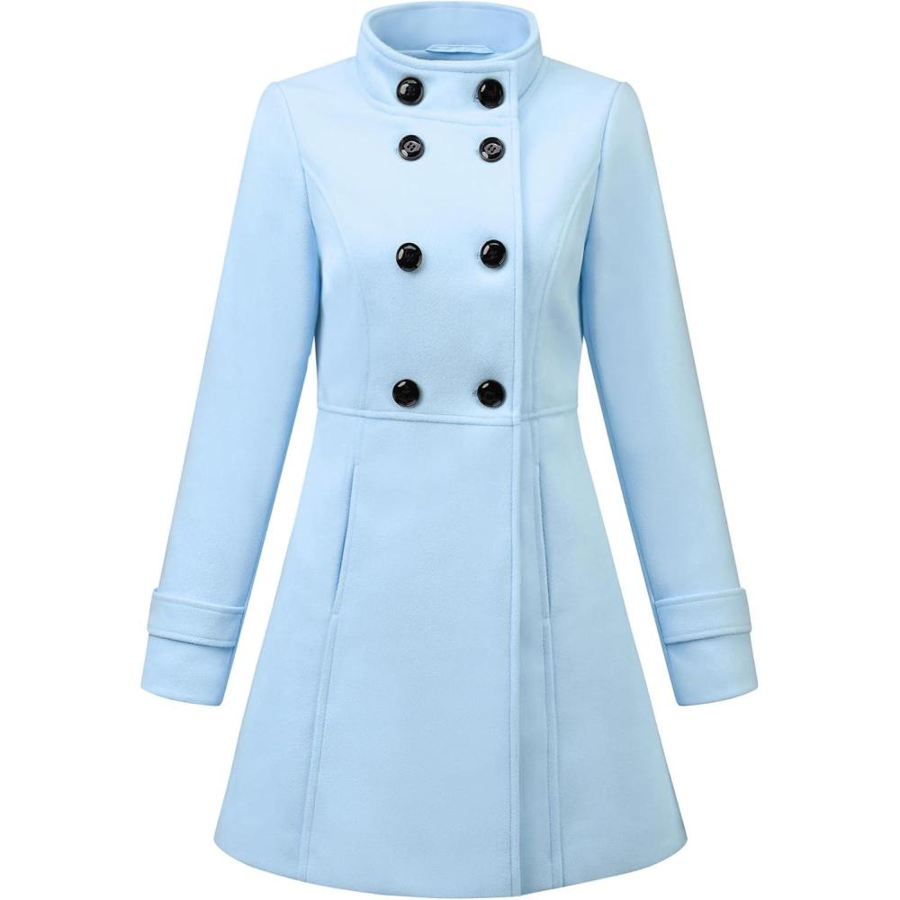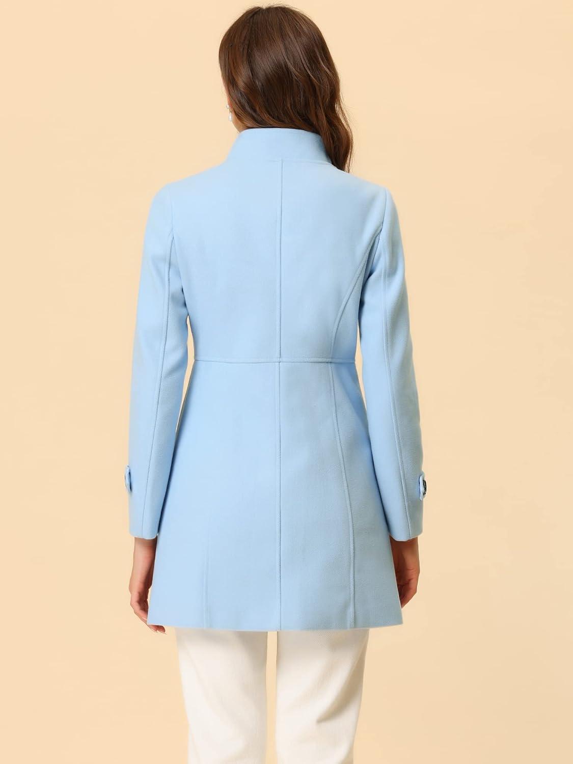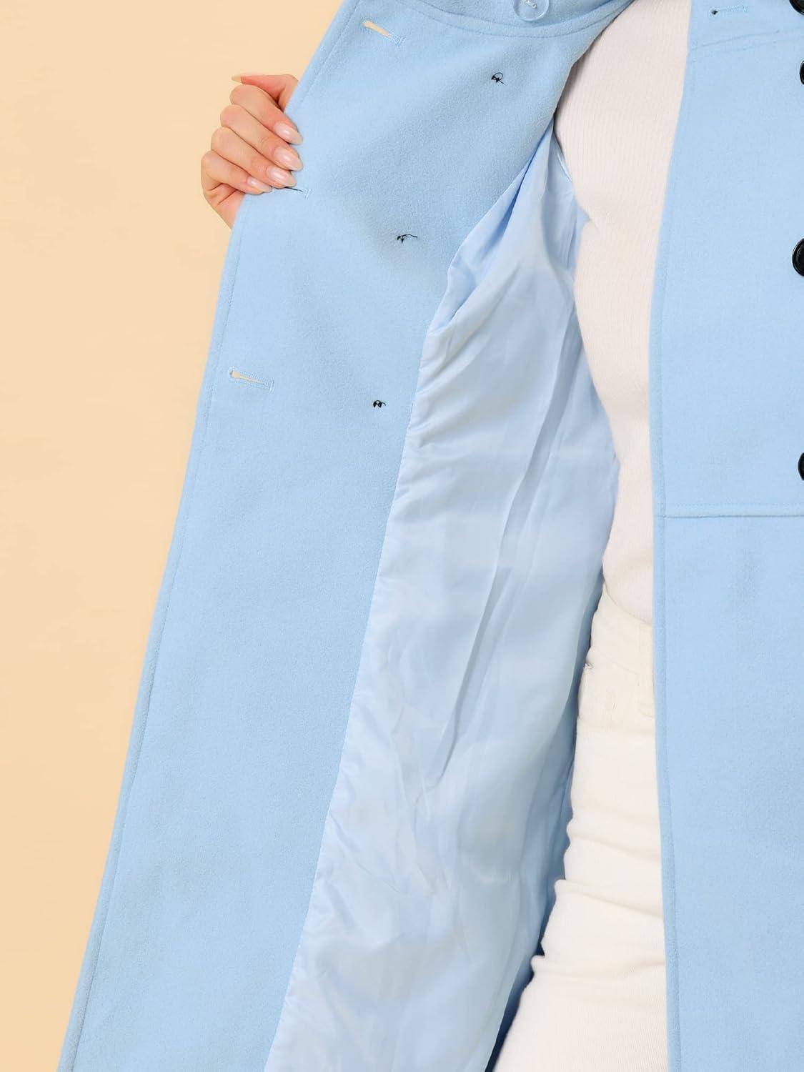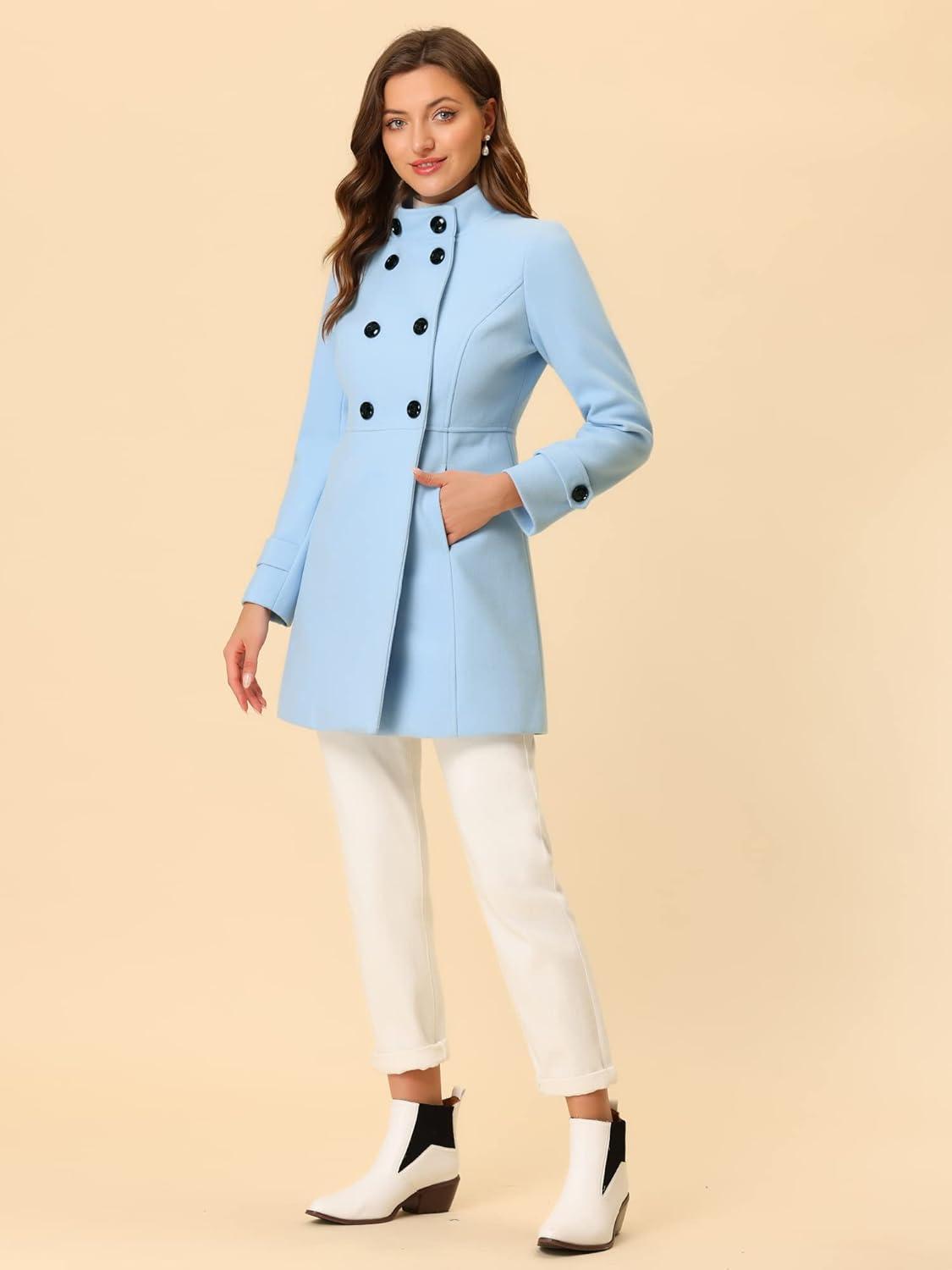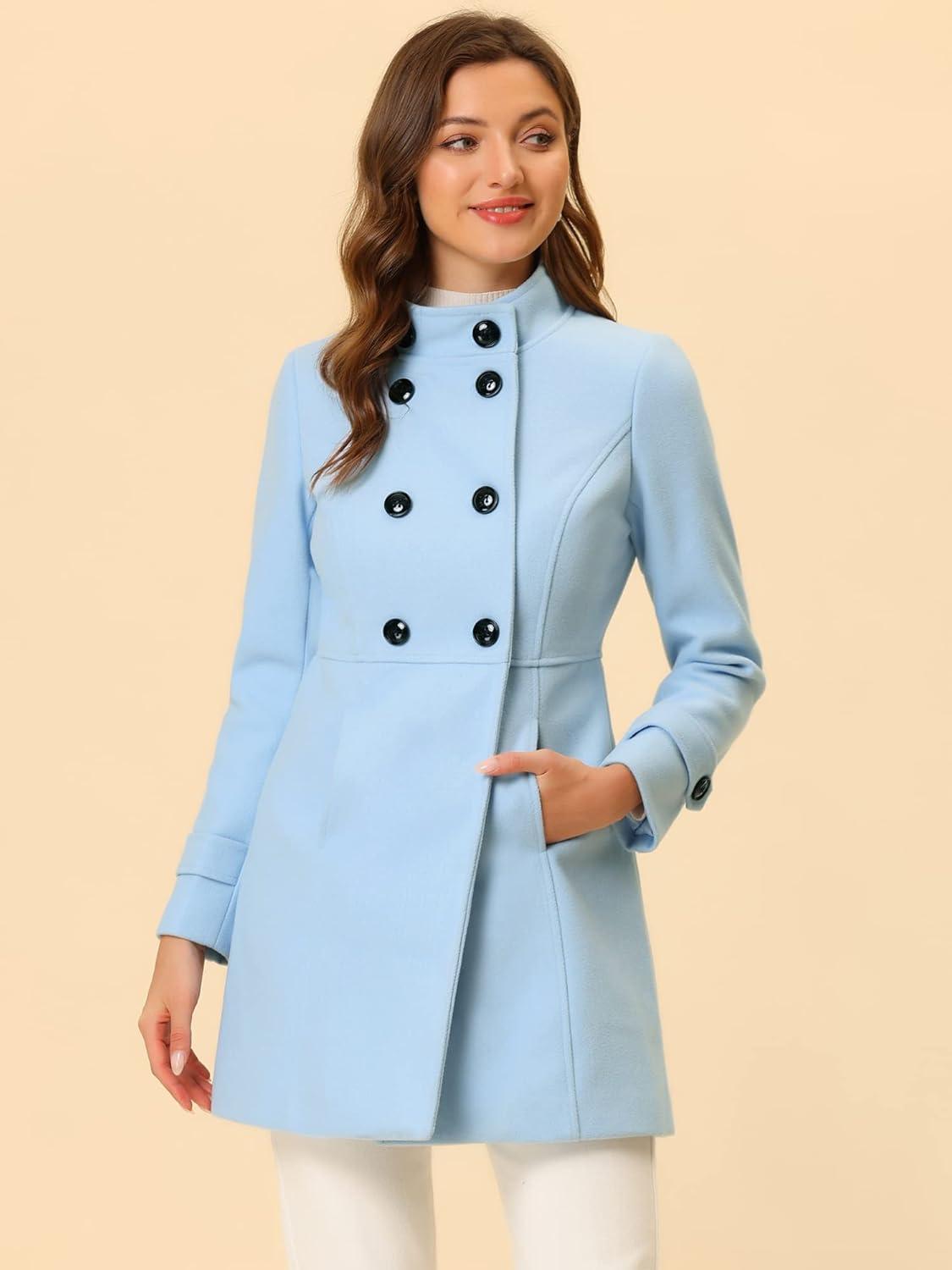 Allegra K Women’s Stand Collar Double Breasted Slant Pockets Trendy Outwear Winter Coat(Sky Blue)
