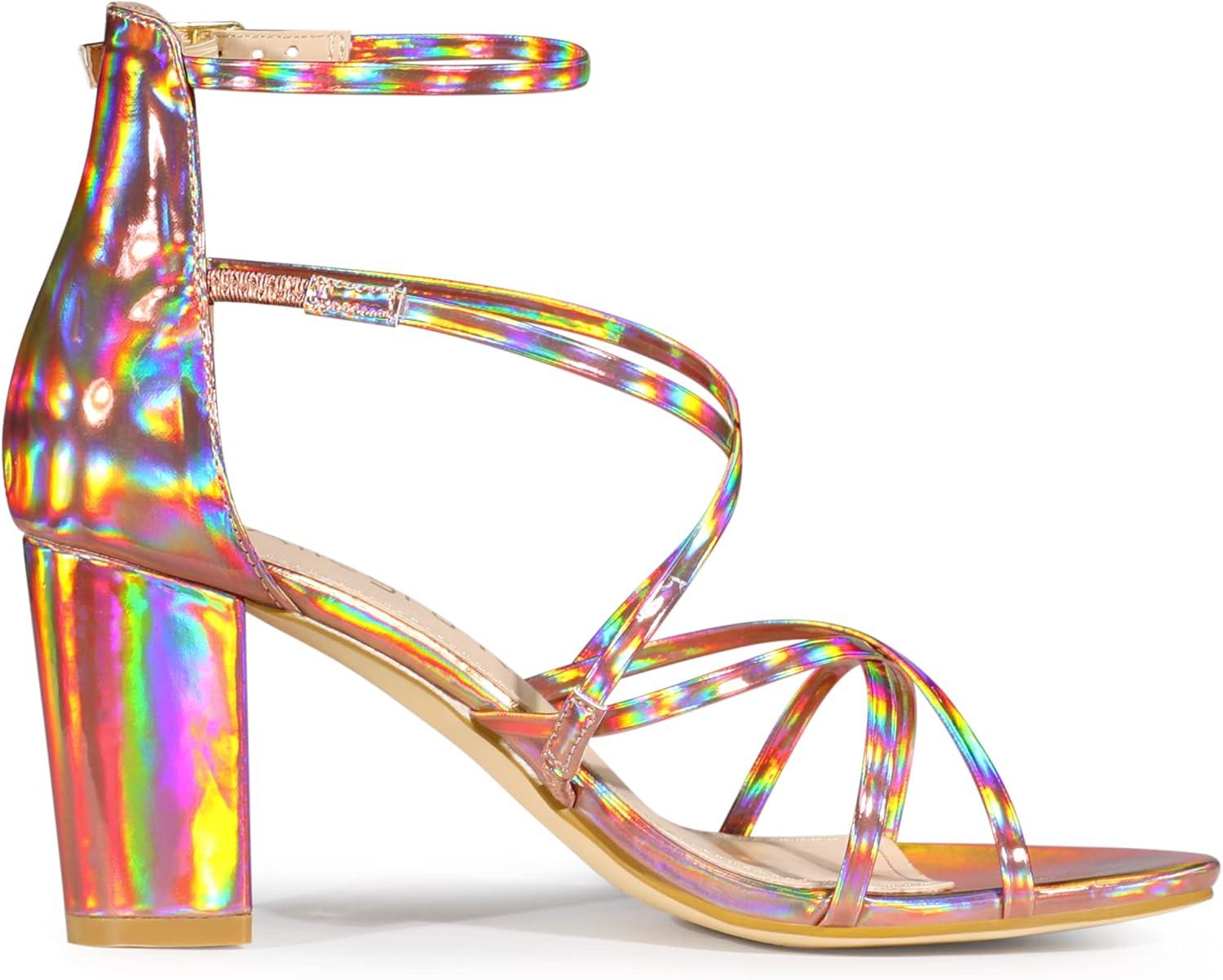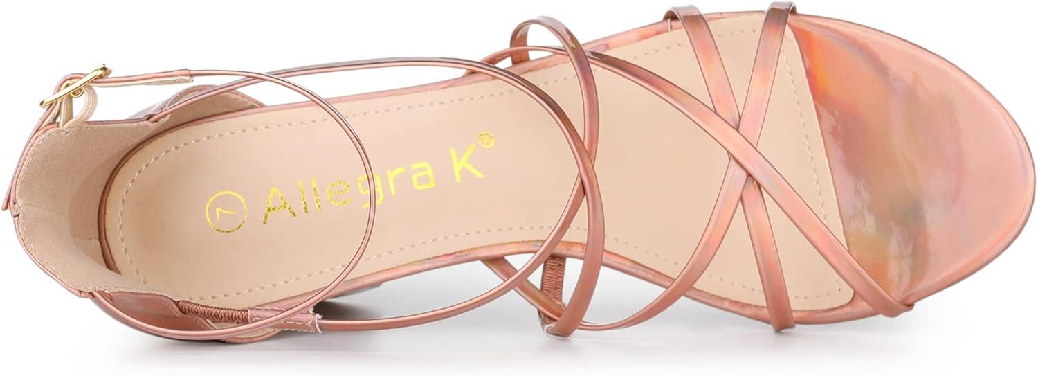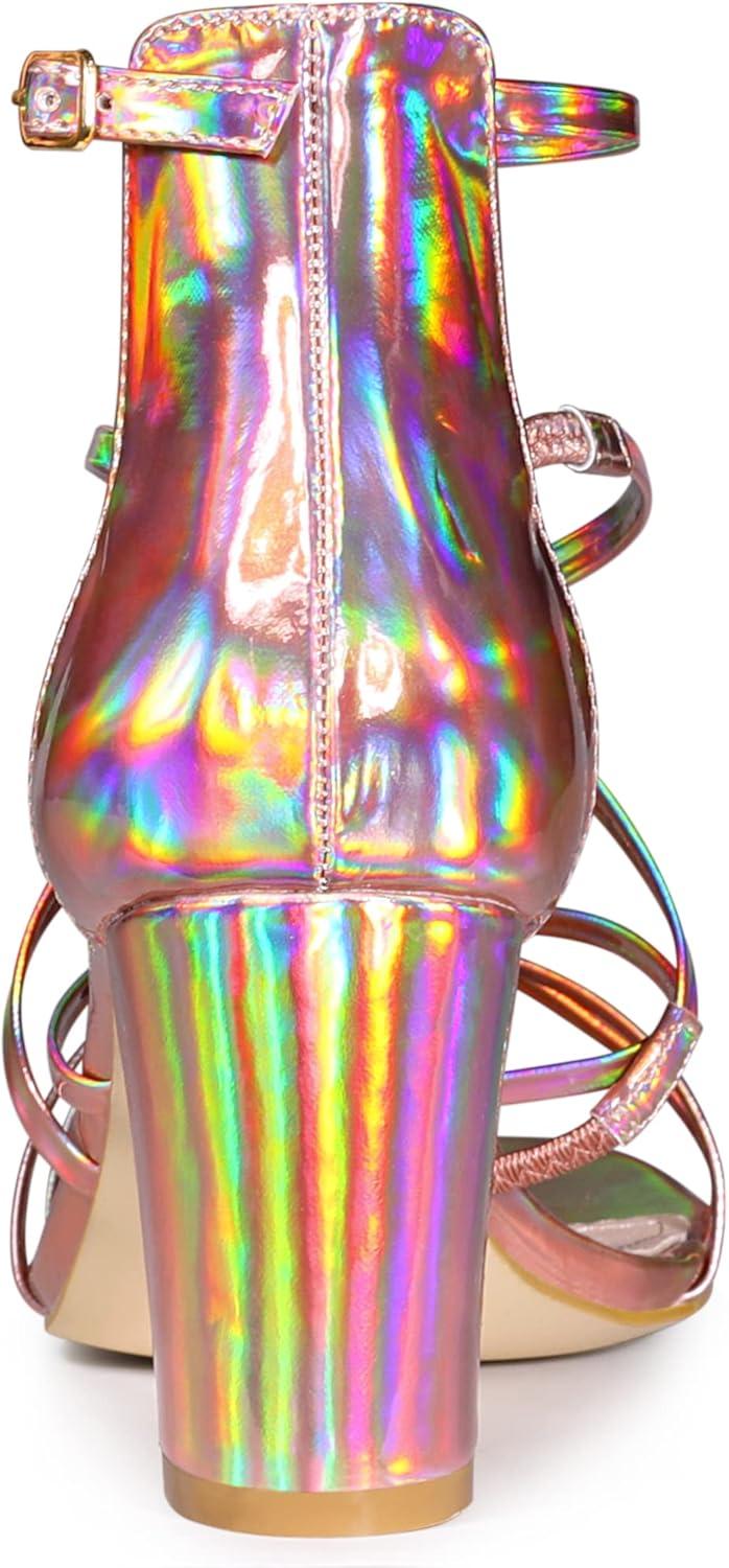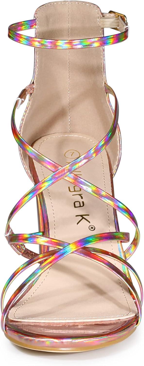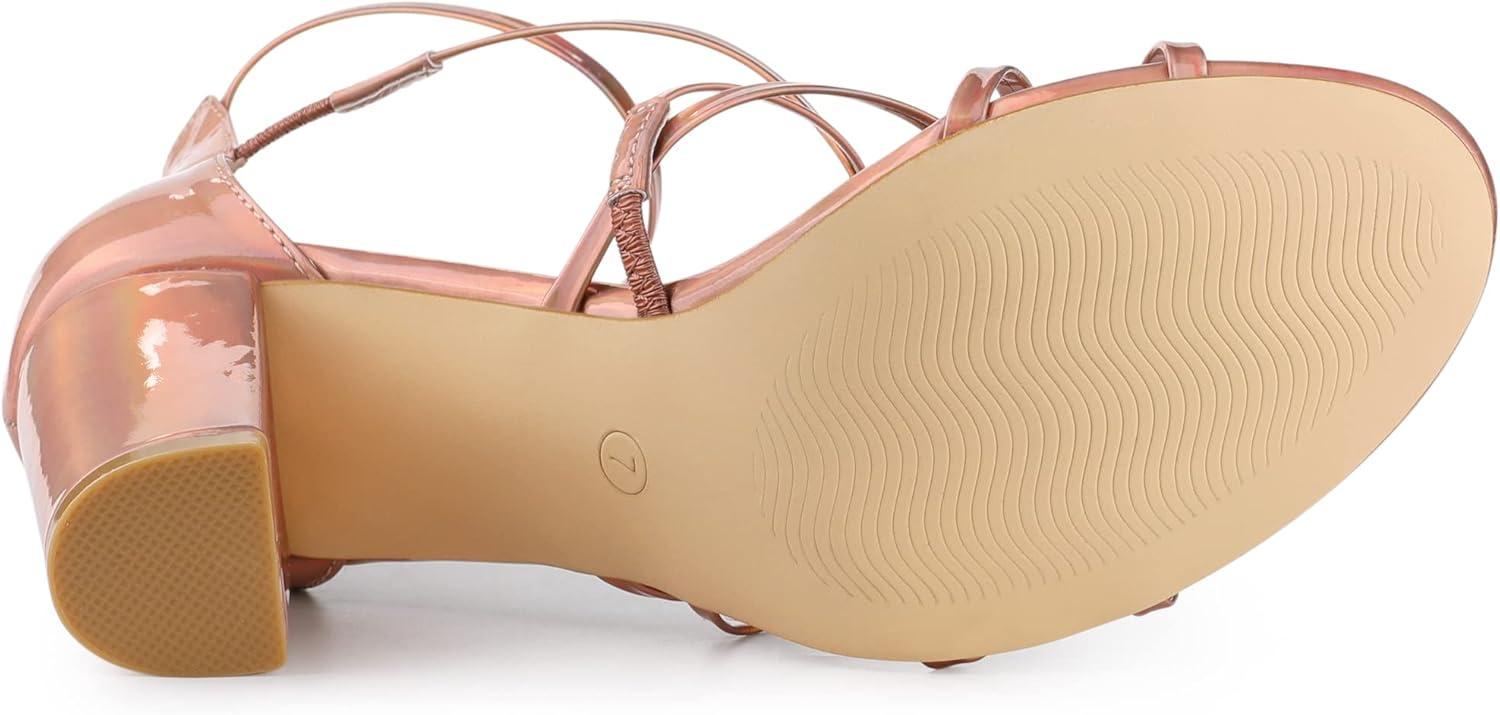 Allegra K Women’s Strappy Crisscross Strap Opened Toe Block Heels Sandals(Colorful Gold)