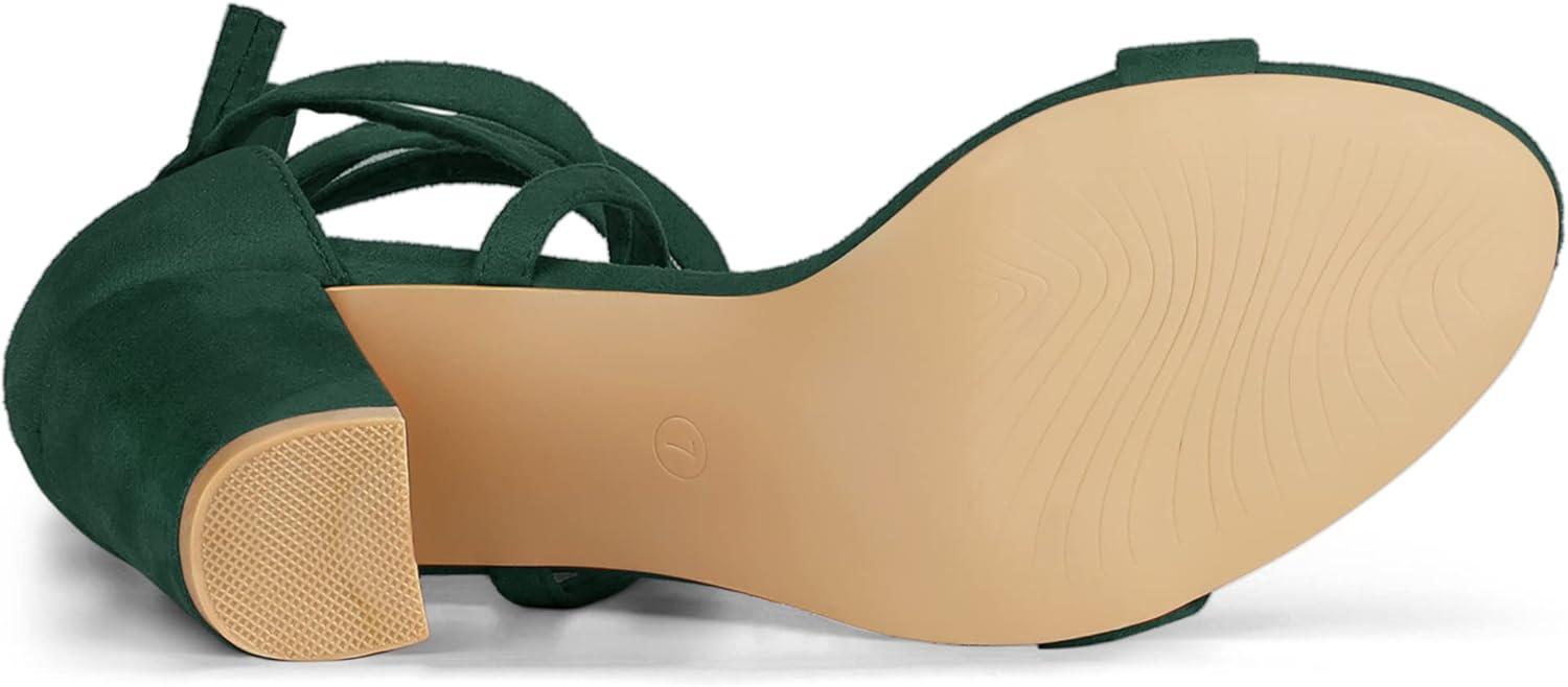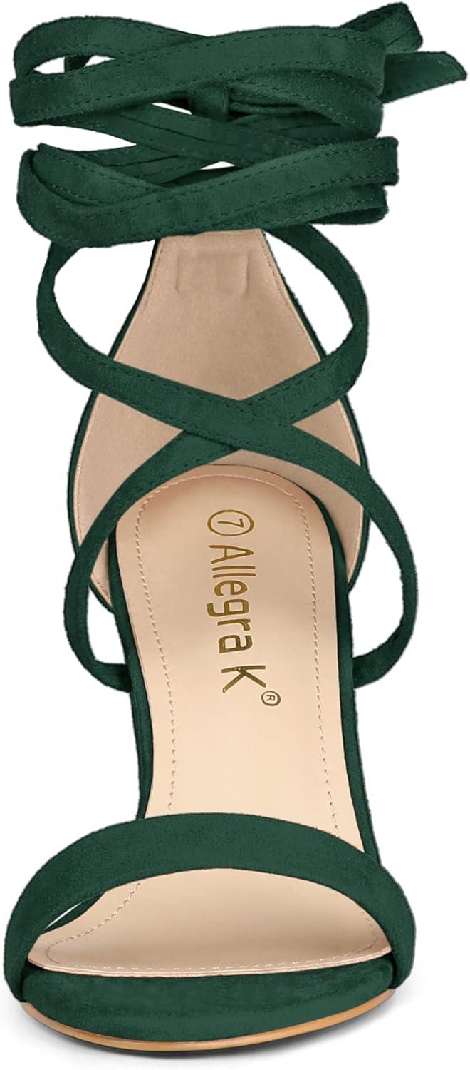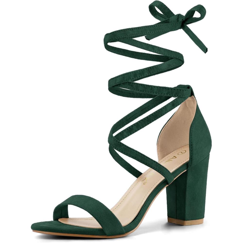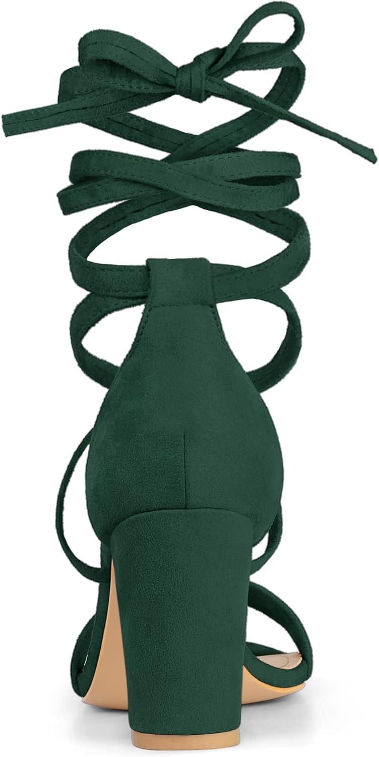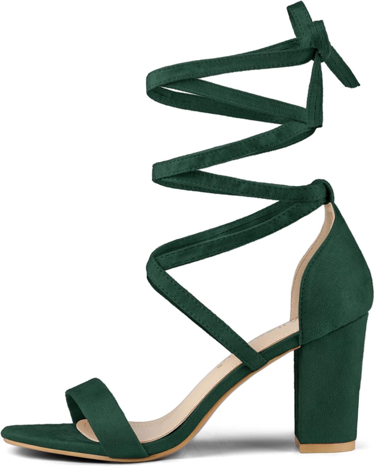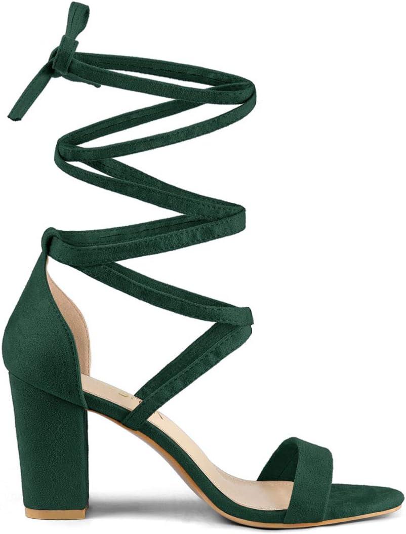 Allegra K Women’s Strappy Lace Up Heel Chunky High Heels Sandals(Green)