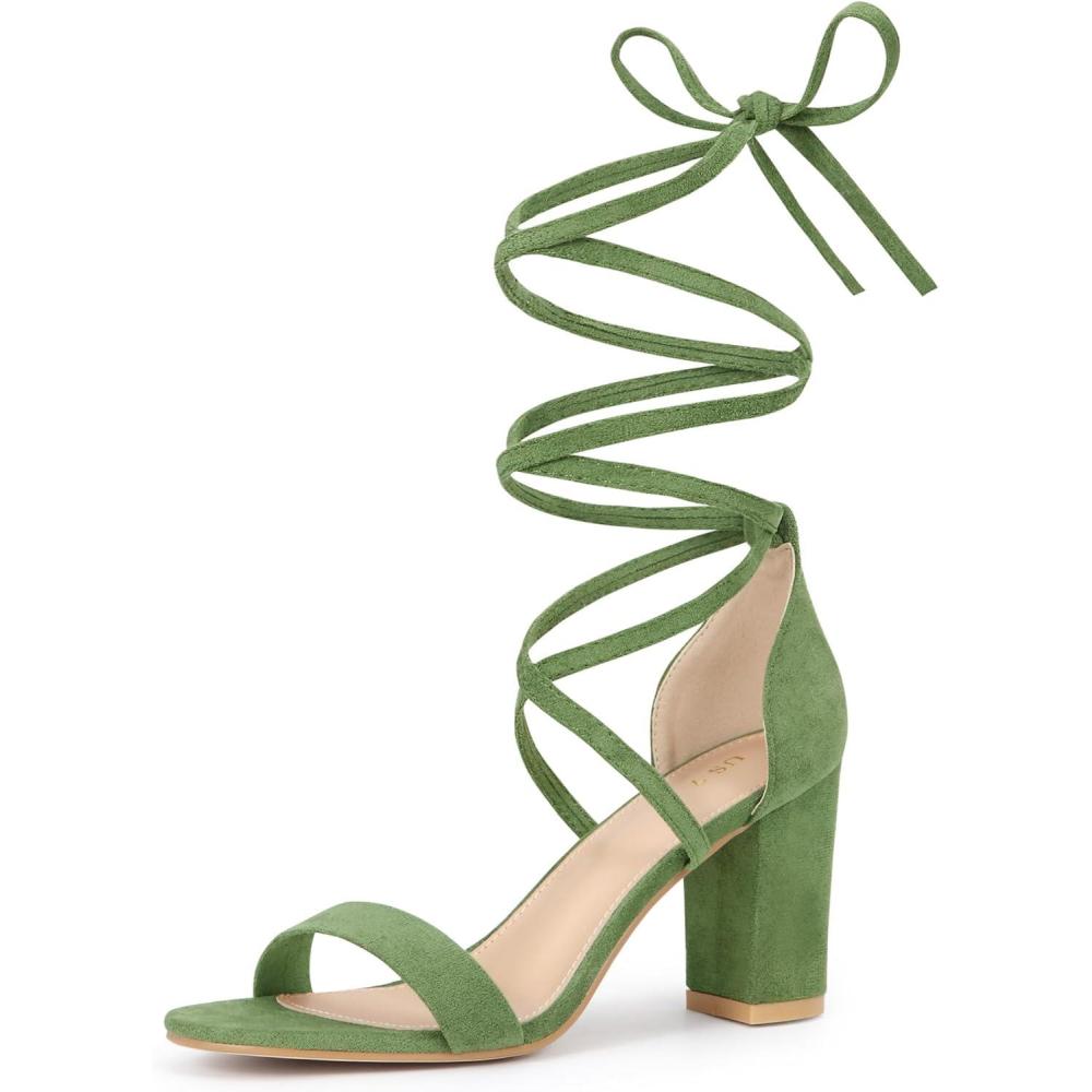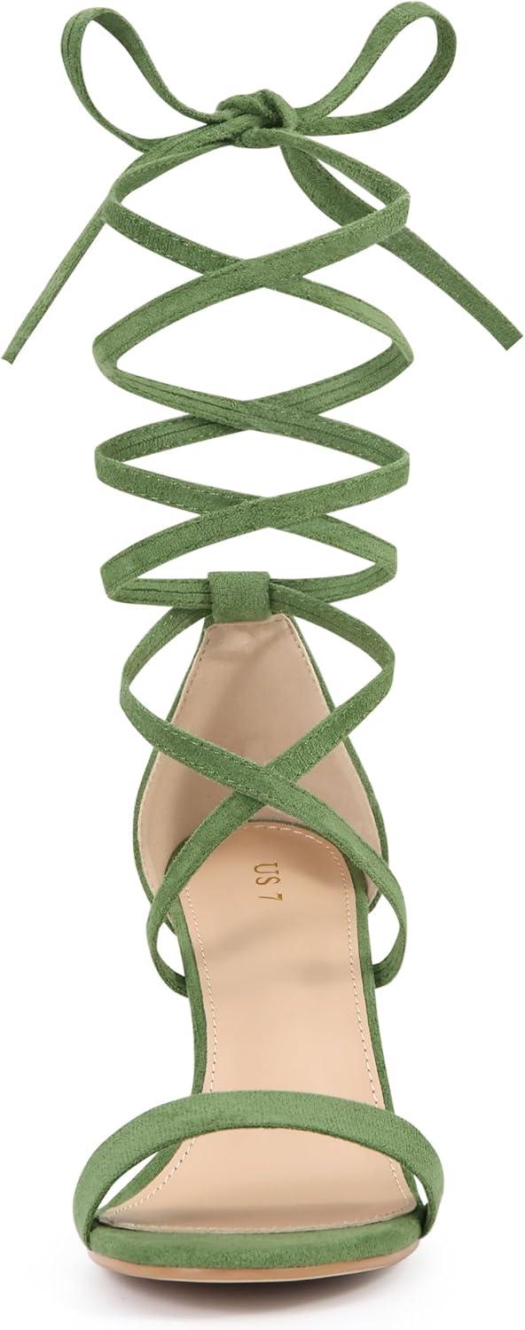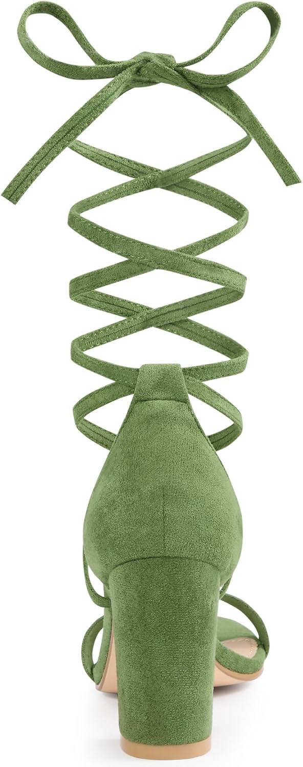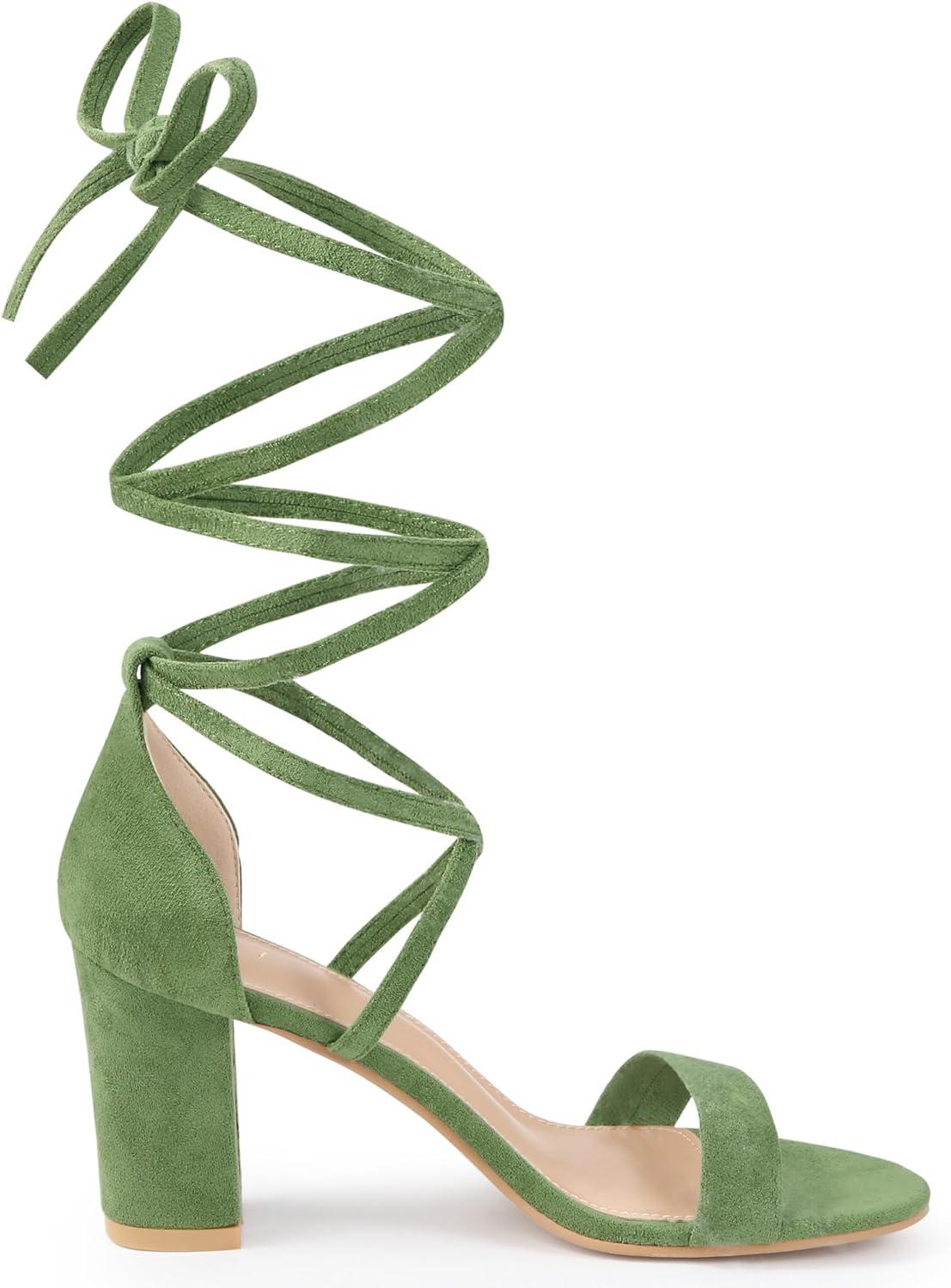 Allegra K Women’s Strappy Lace Up Heel Chunky High Heels Sandals(Olive Green)