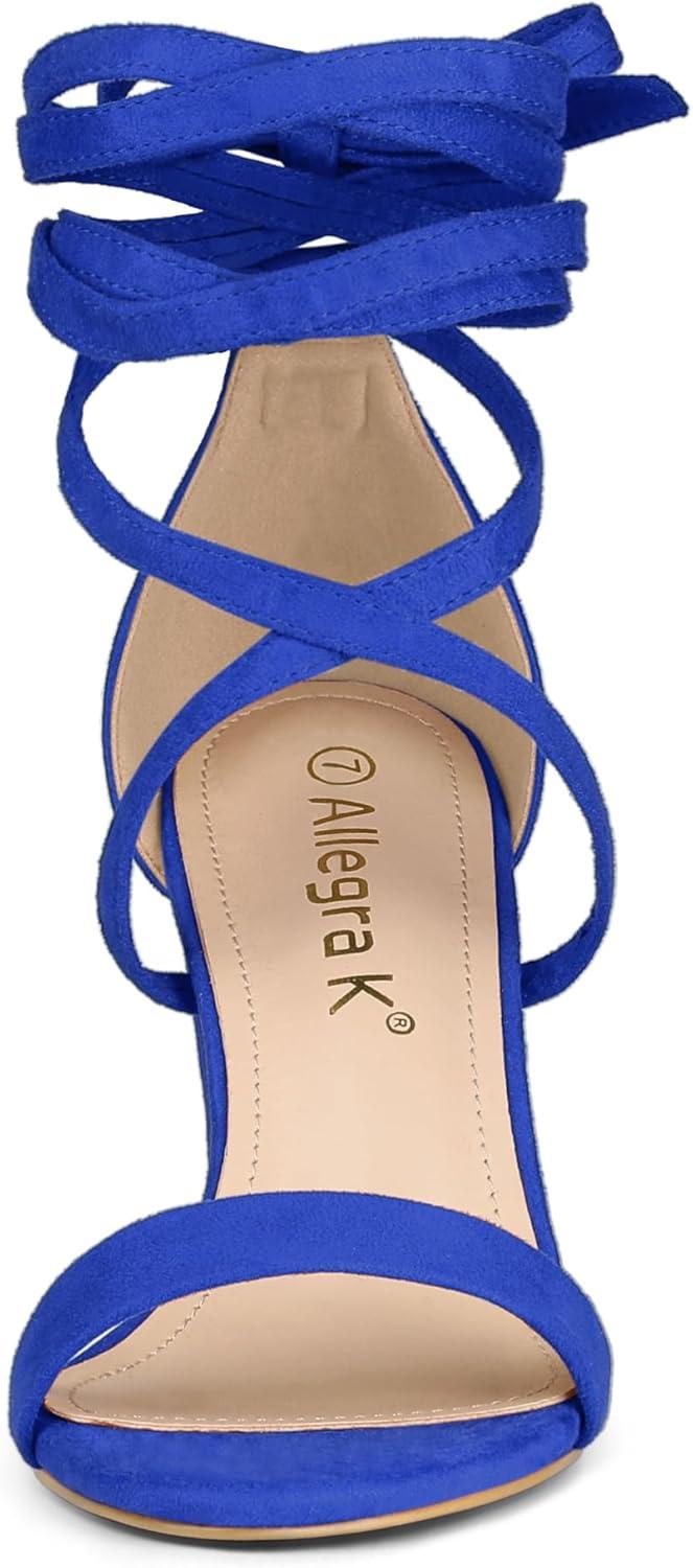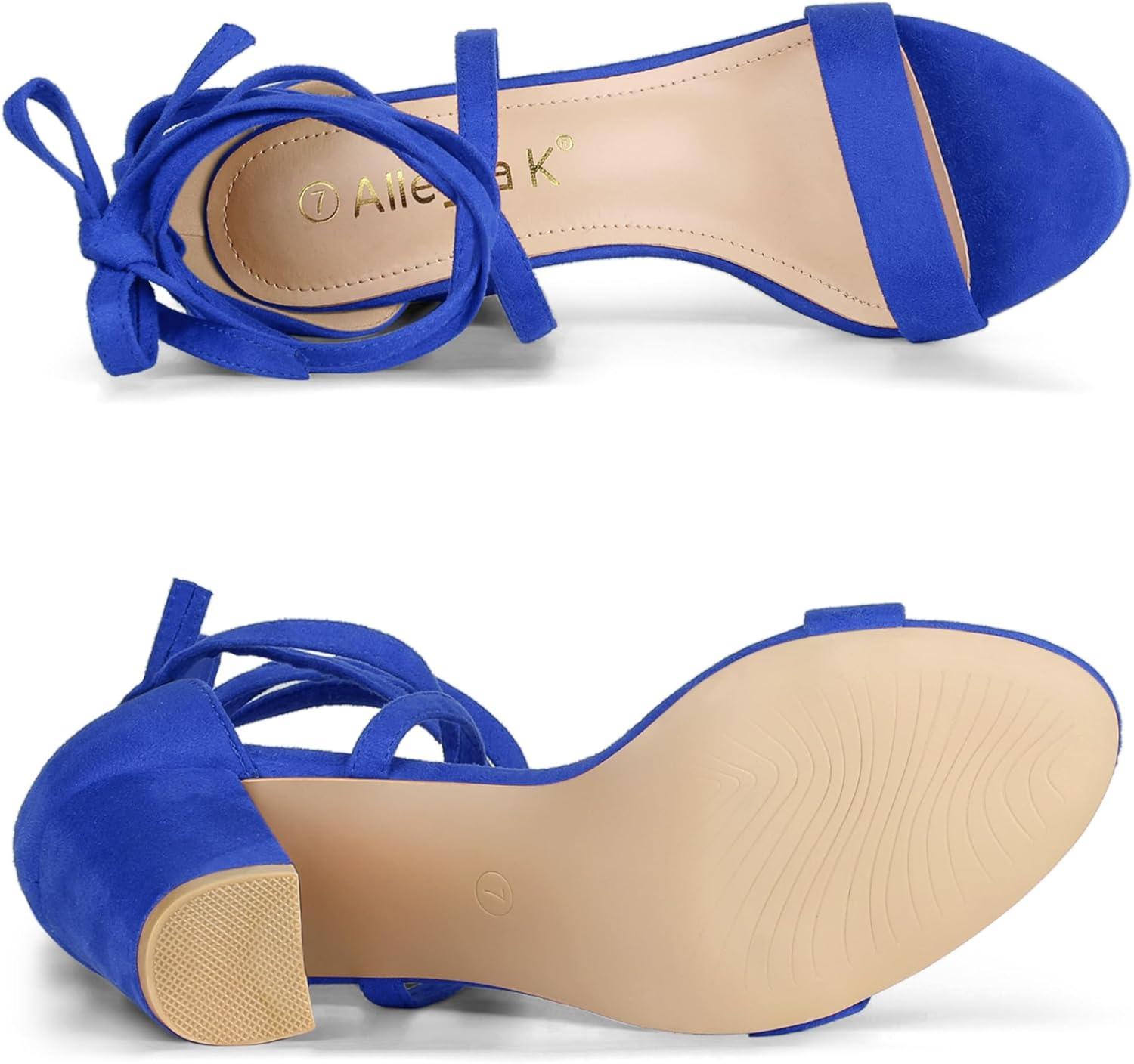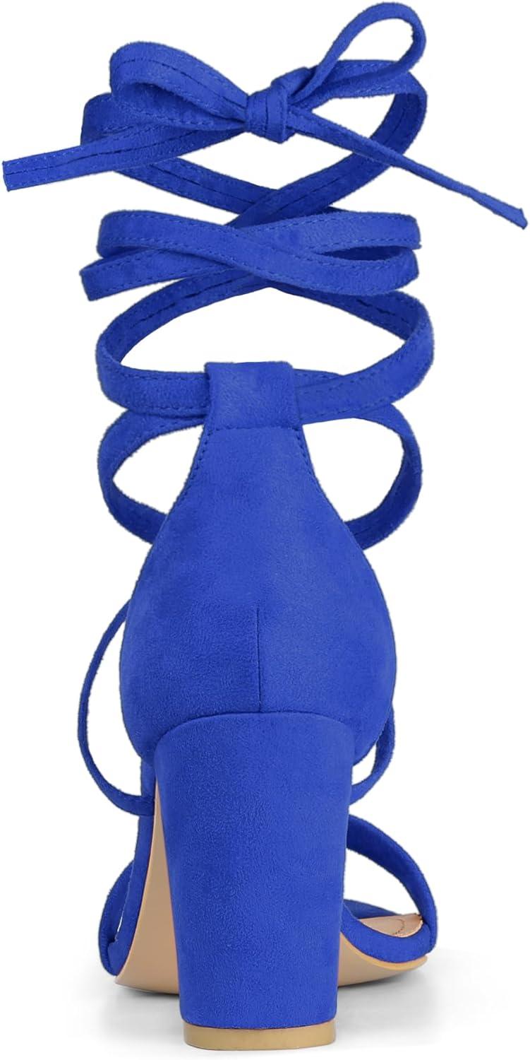 Allegra K Women’s Strappy Lace Up Heel Chunky High Heels Sandals(Royal Blue)