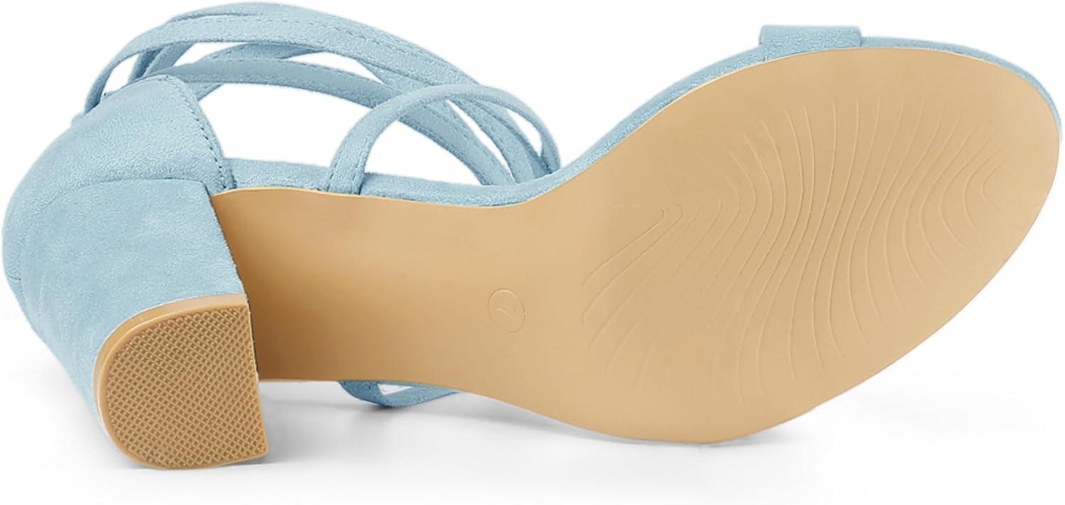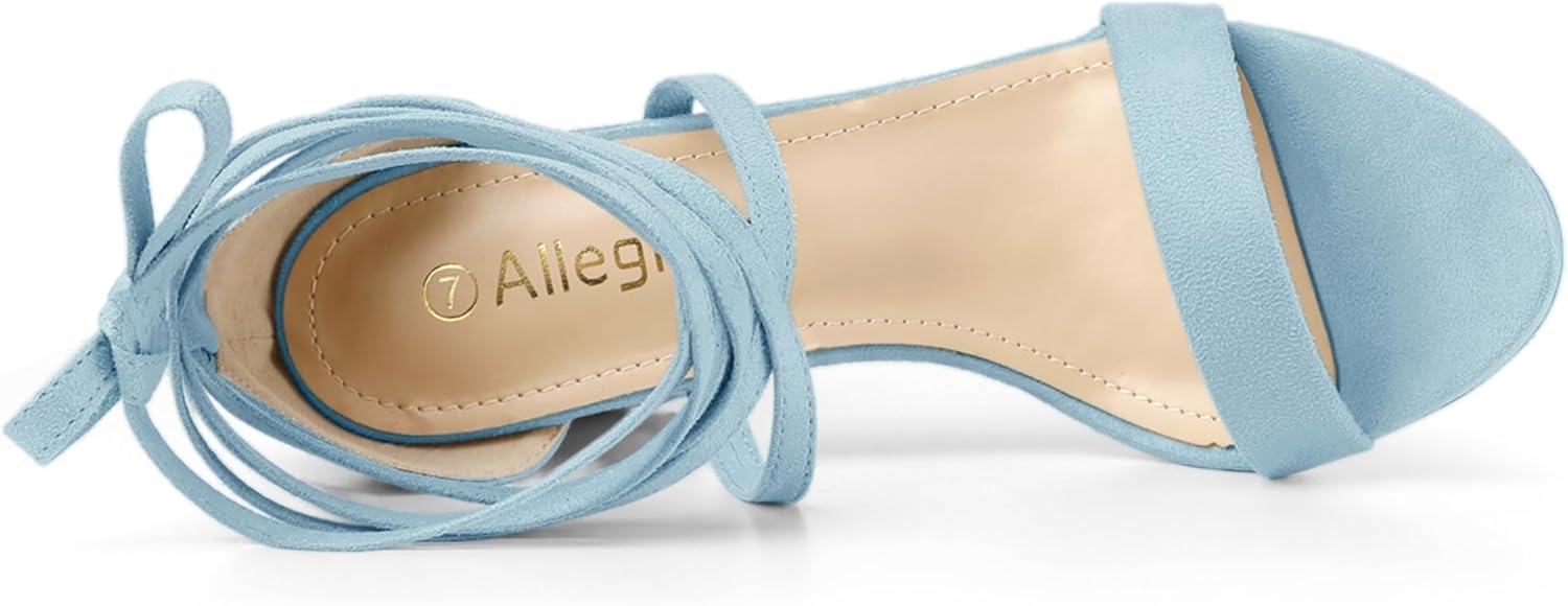 Allegra K Women's Strappy Lace Up Heel Chunky High Heels Sandals(Sky Blue)