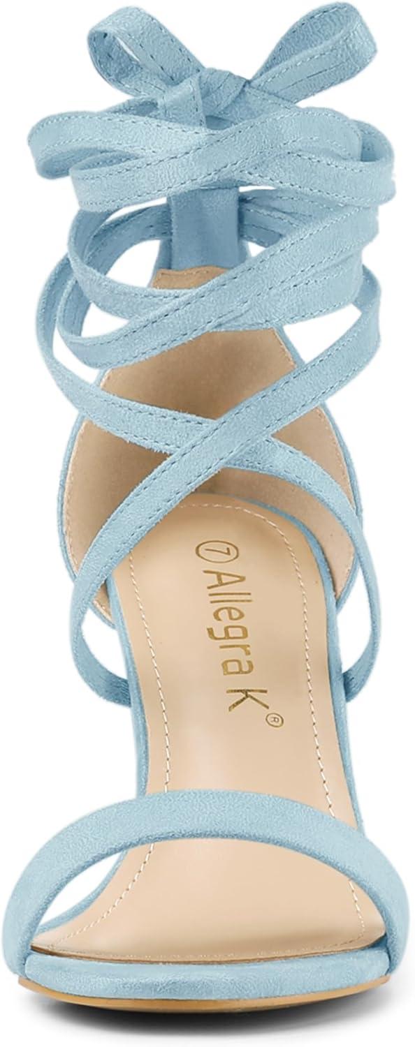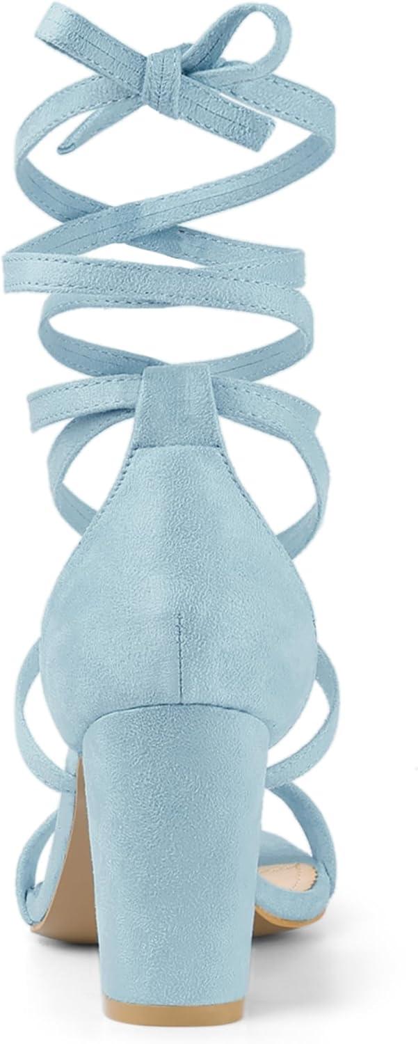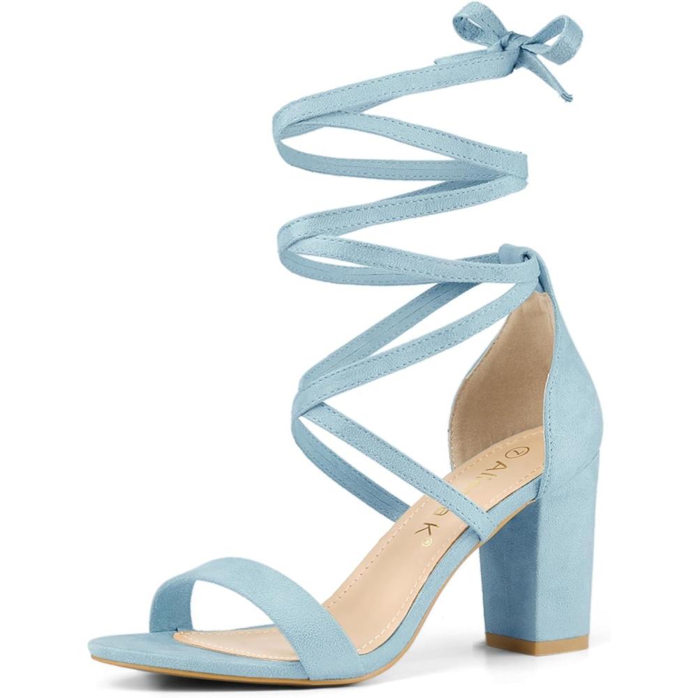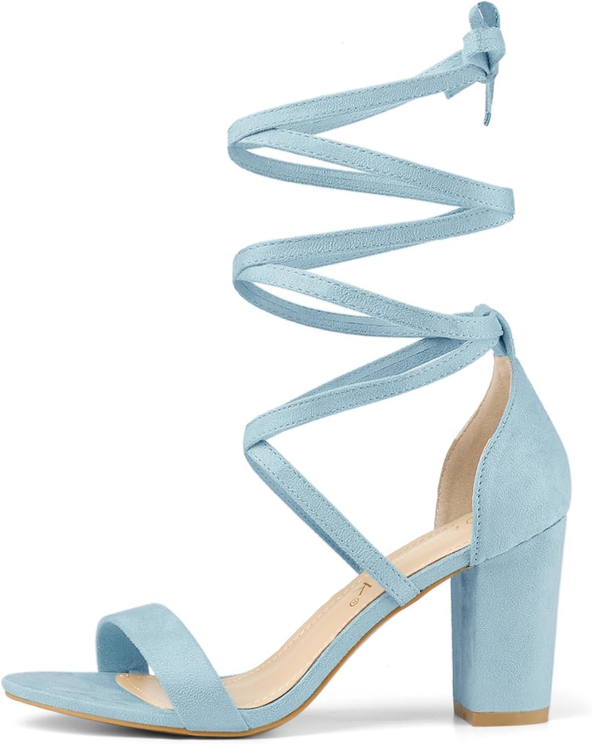 Allegra K Women’s Strappy Lace Up Heel Chunky High Heels Sandals(Sky Blue)