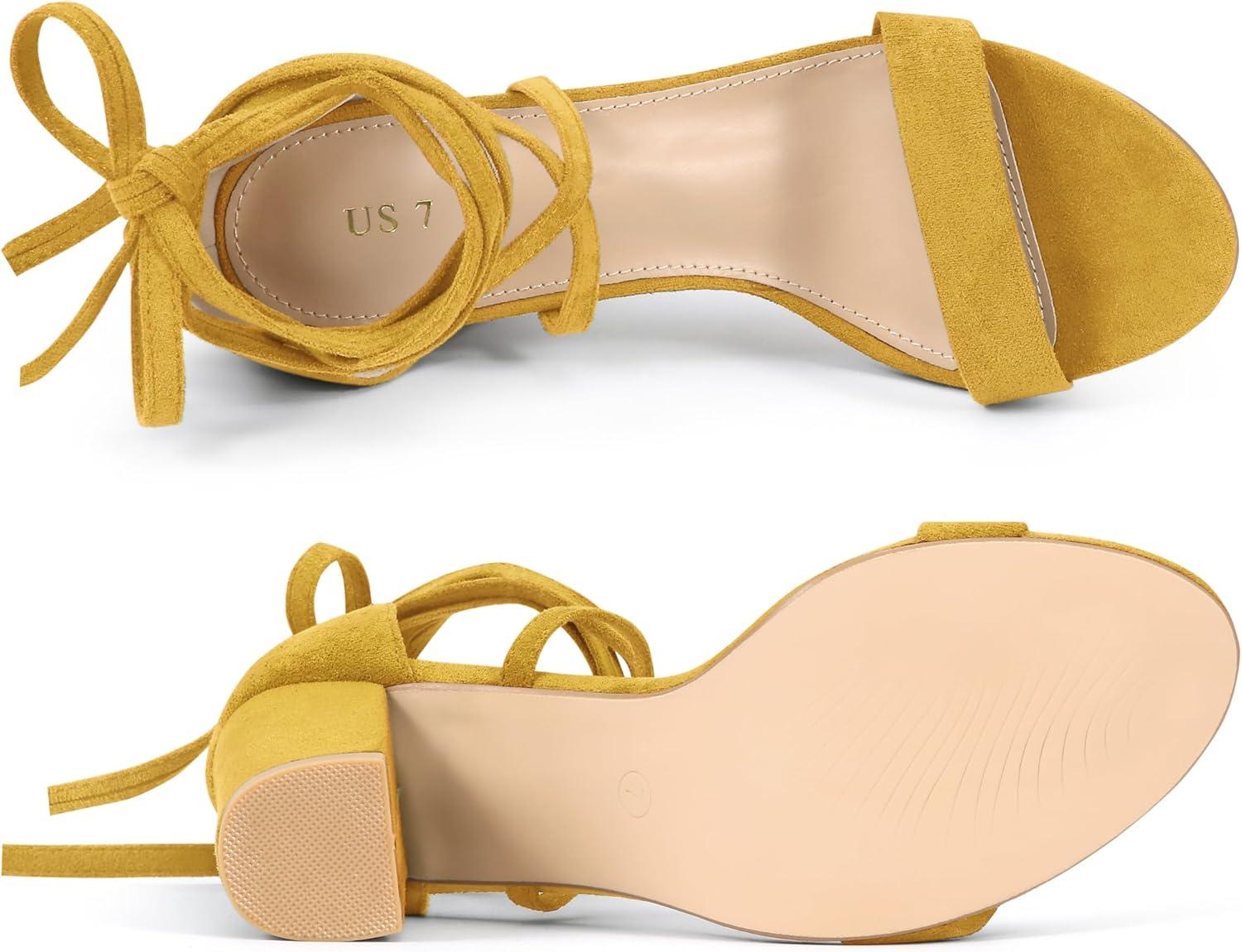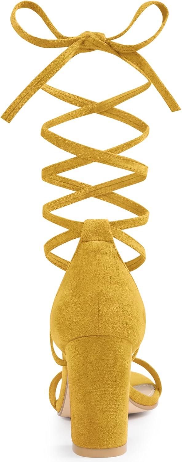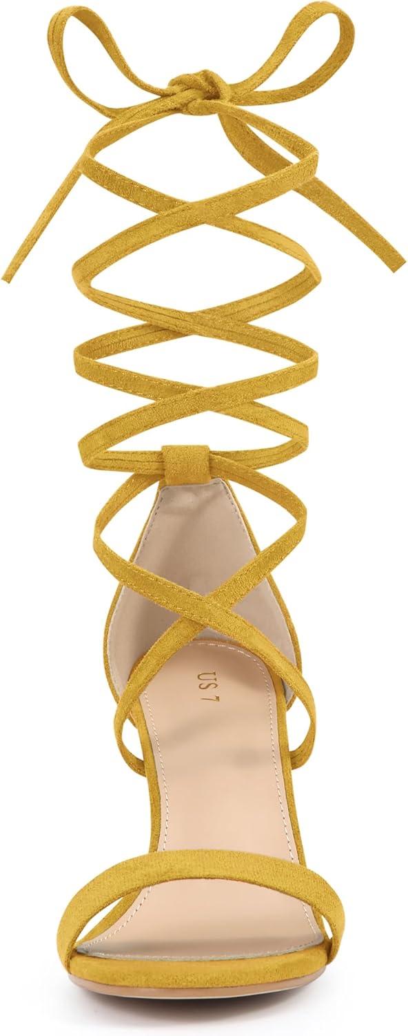 Allegra K Women’s Strappy Lace Up Heel Chunky High Heels Sandals(Yellow)