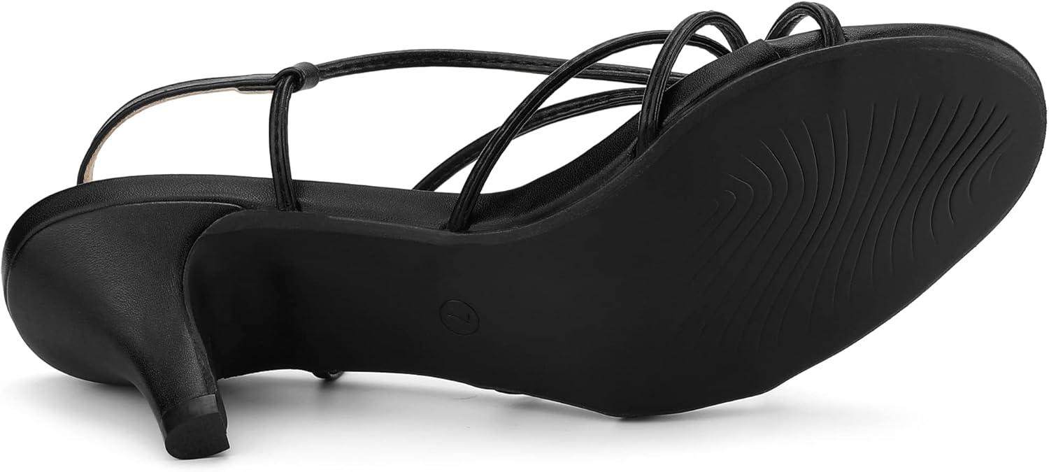 Allegra K Women's Strappy Slingback Kitten Heels Sandals(Black)