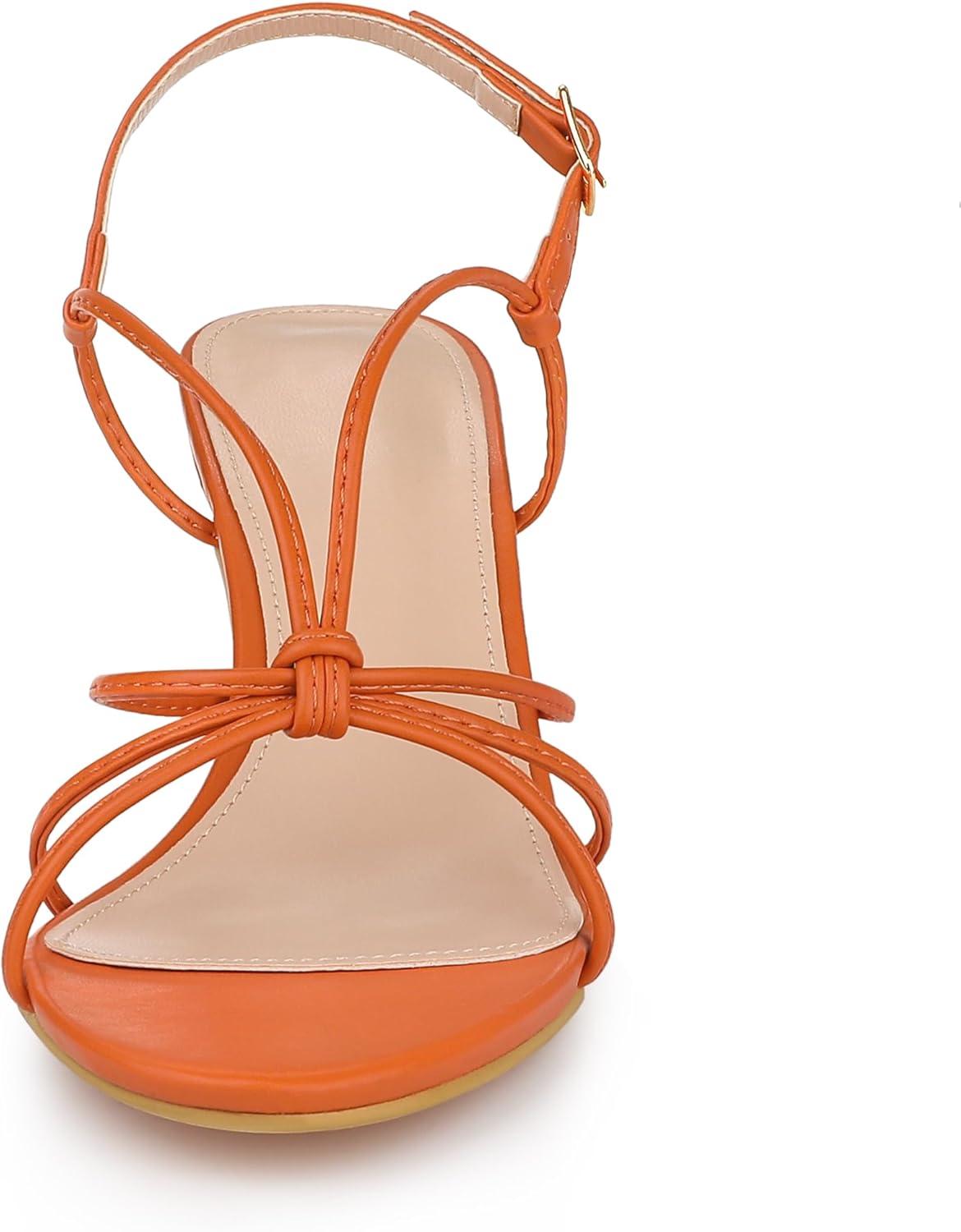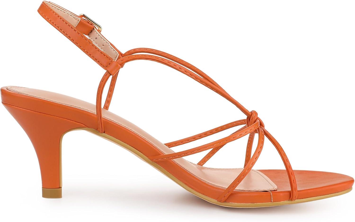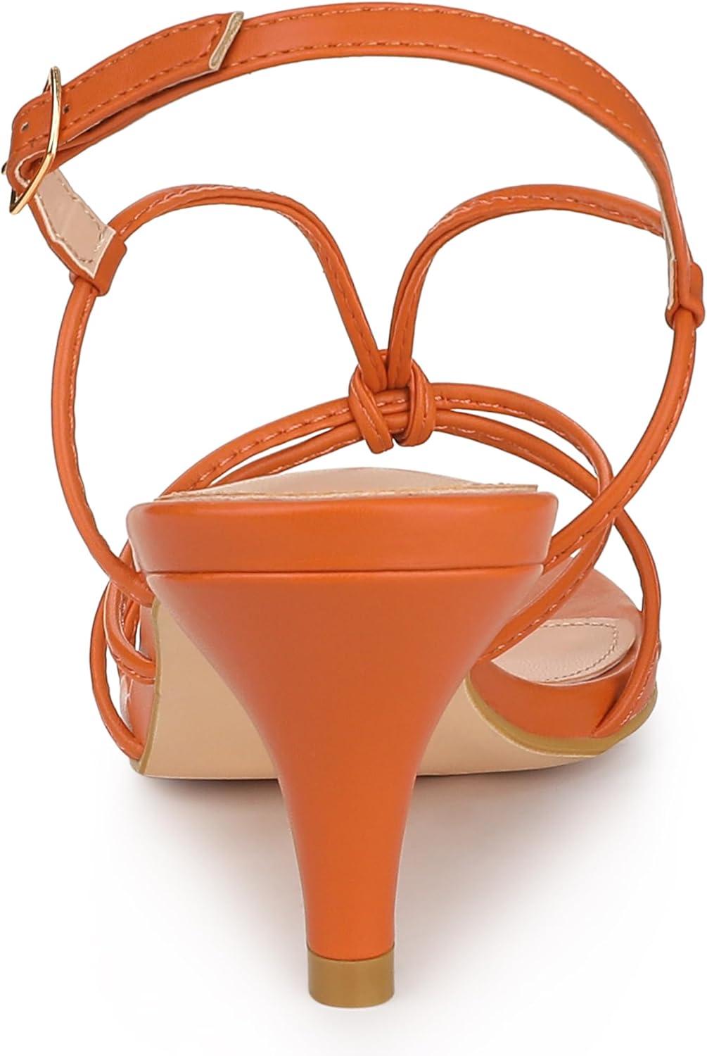 Allegra K Women’s Strappy Slingback Kitten Heels Sandals(Orange)