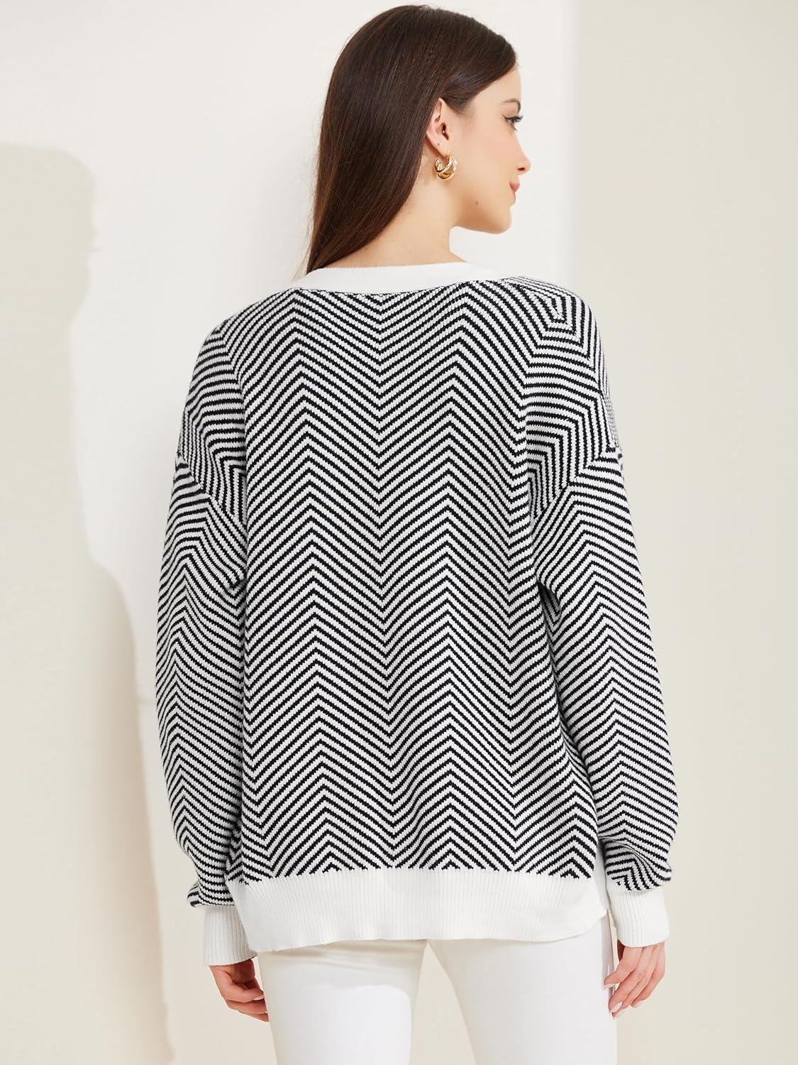 Allegra K Women’s Striped Cardigan Sweaters Open Front Button Down V Neck Cardigans(Black)