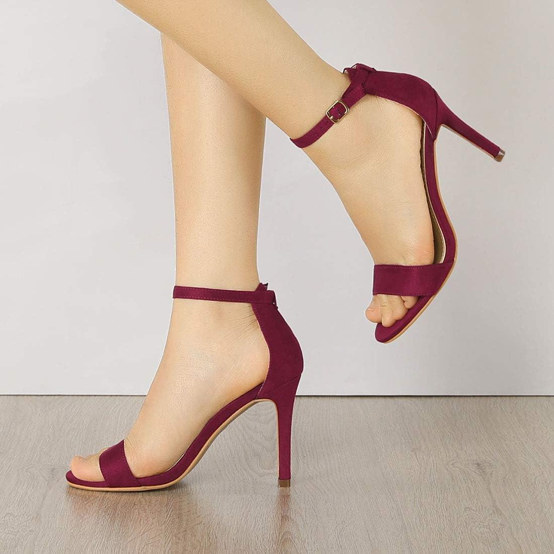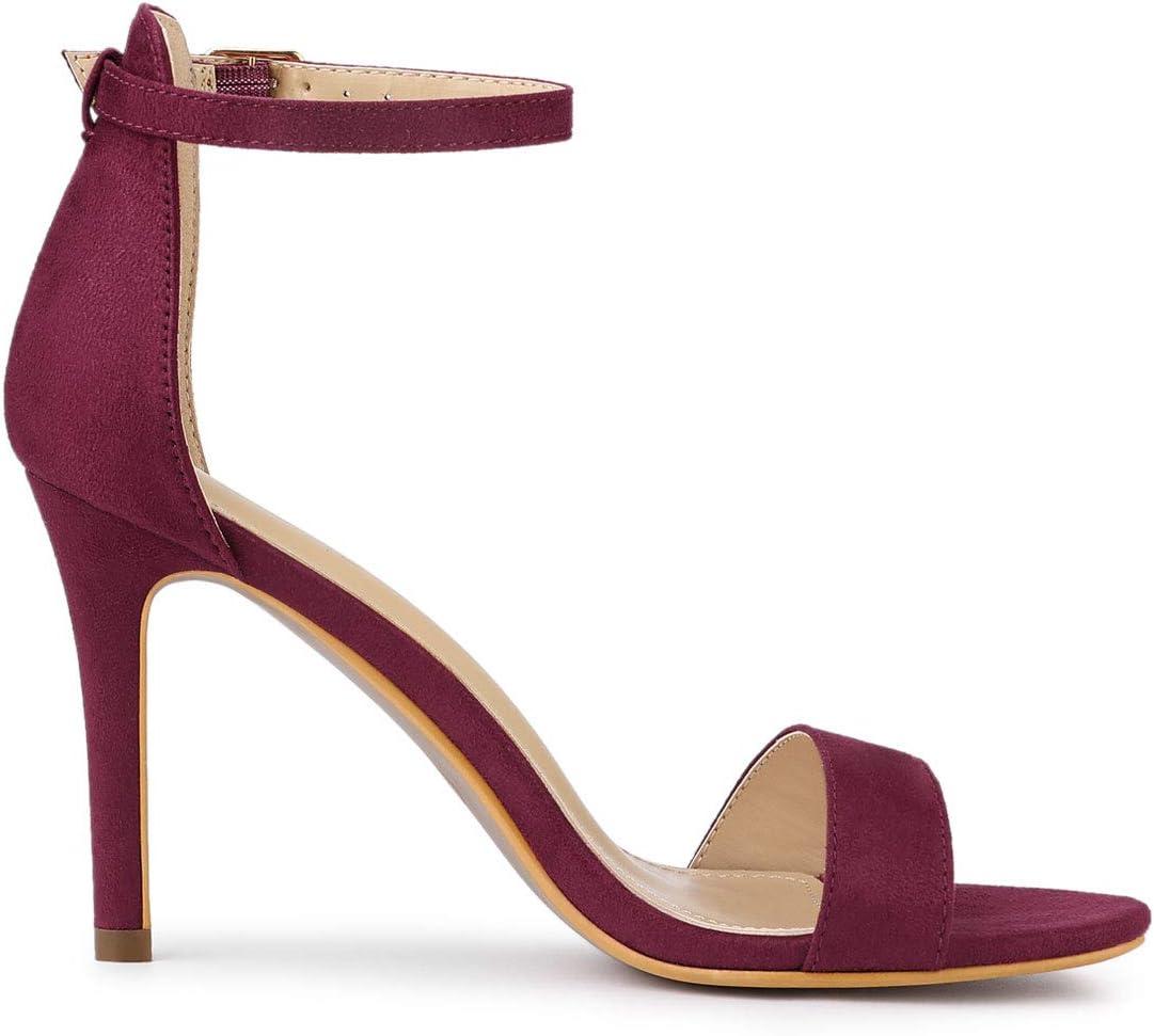Allegra K Women’s Suede Ankle Strap High Stiletto Heel Sandals(Burgundy)