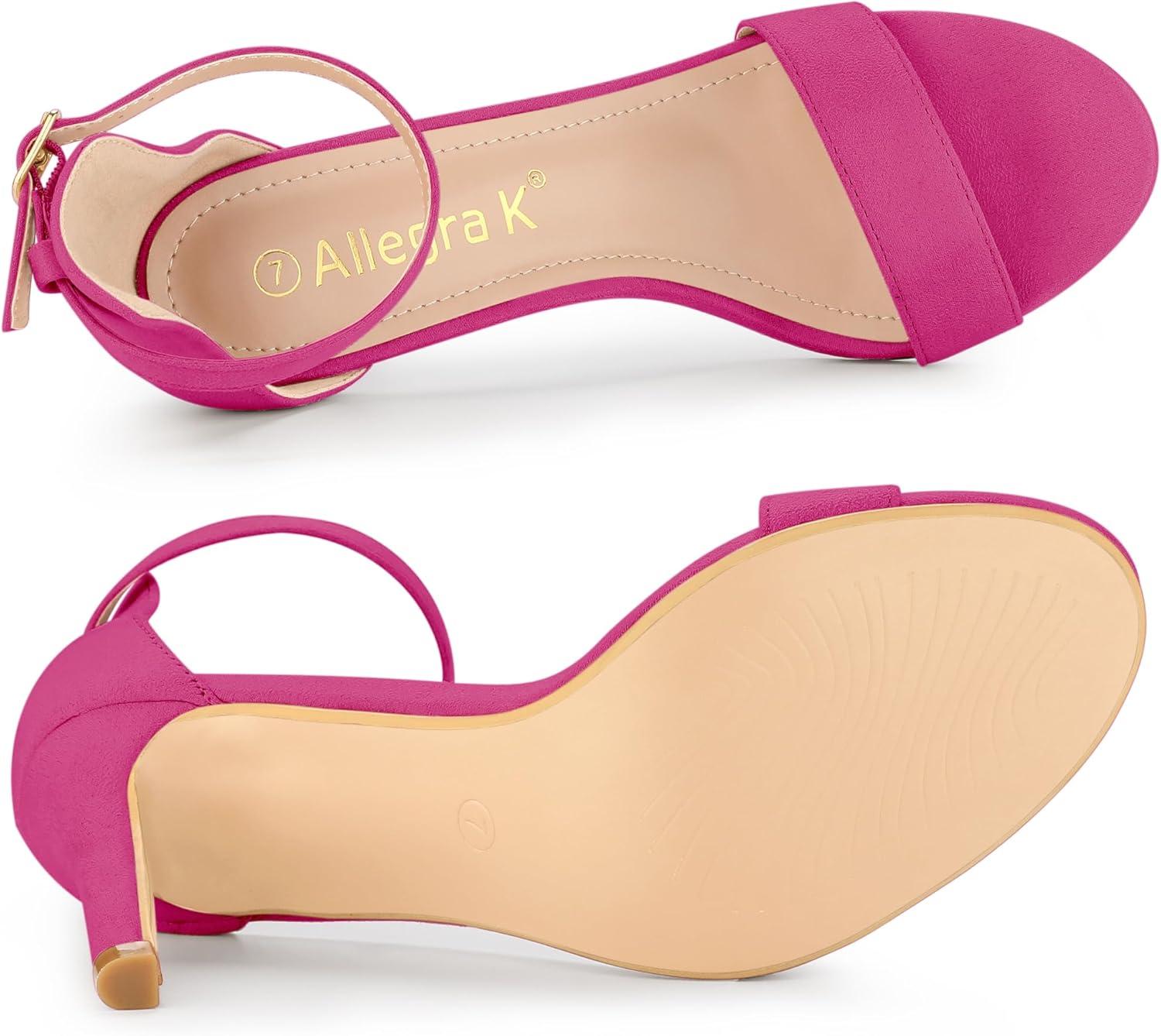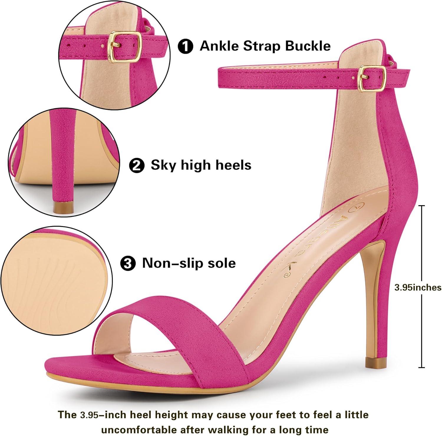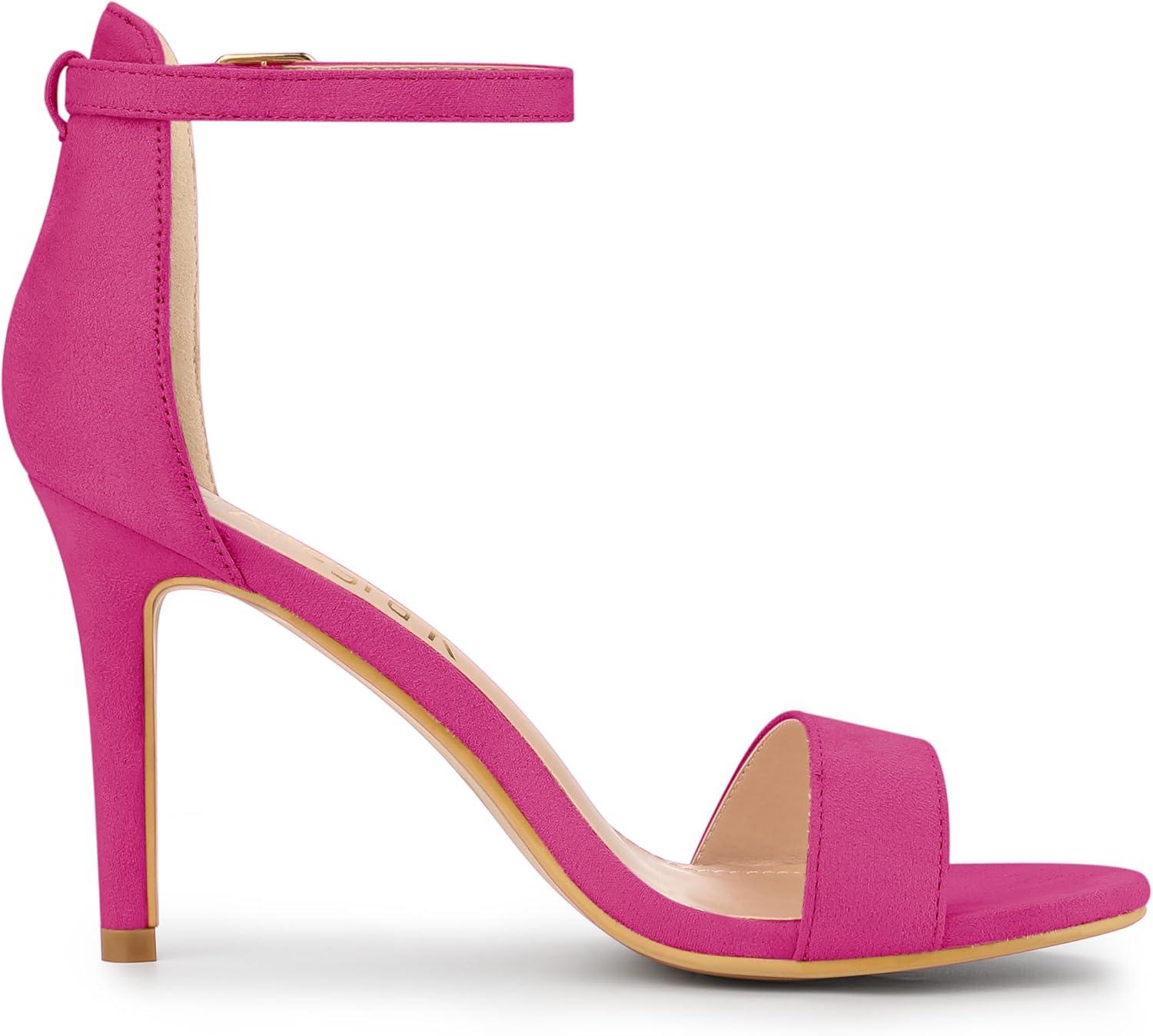 Allegra K Women’s Suede Ankle Strap High Stiletto Heel Sandals(Hot Pink)