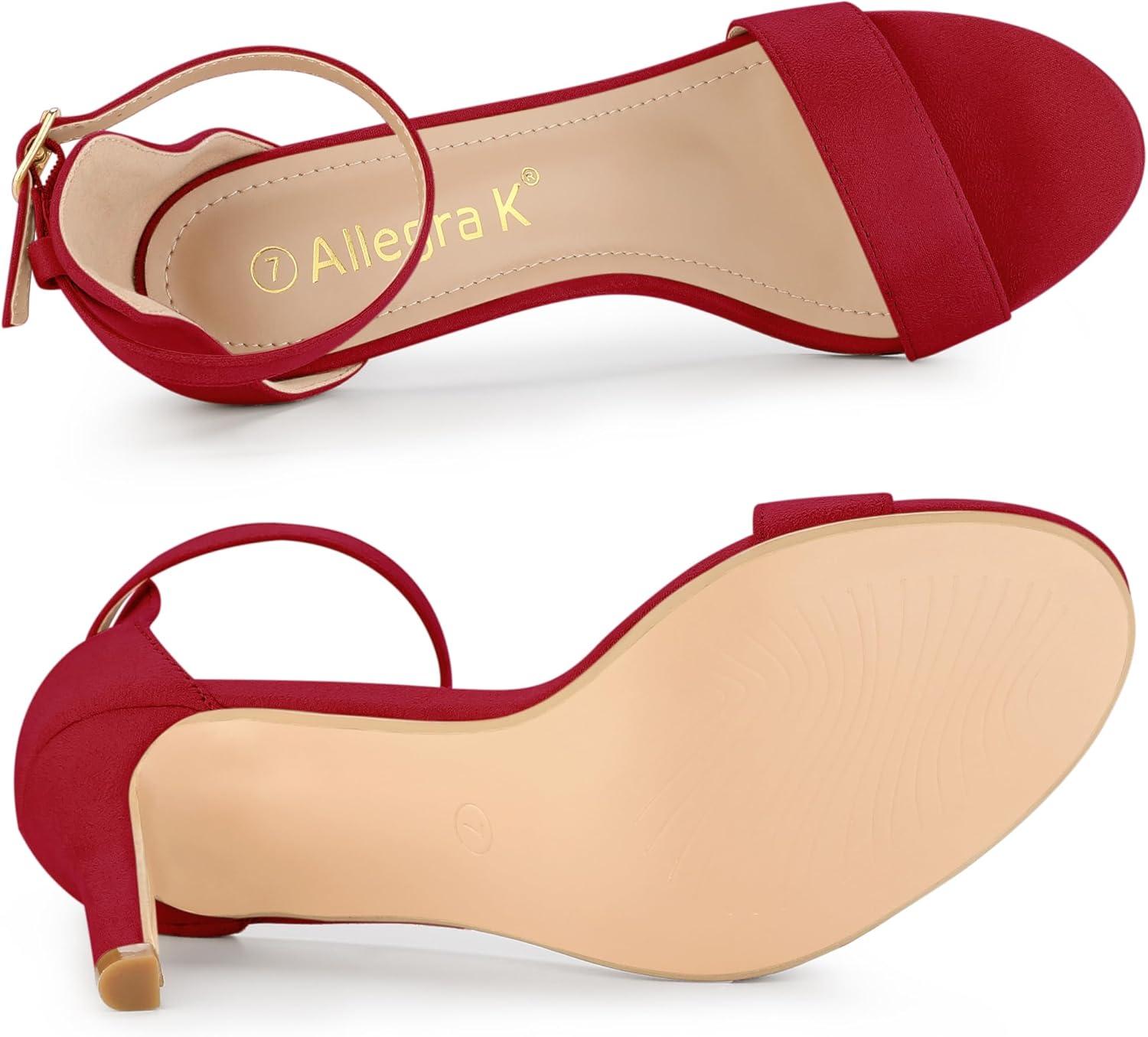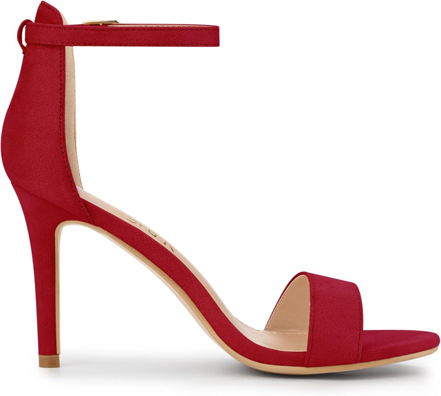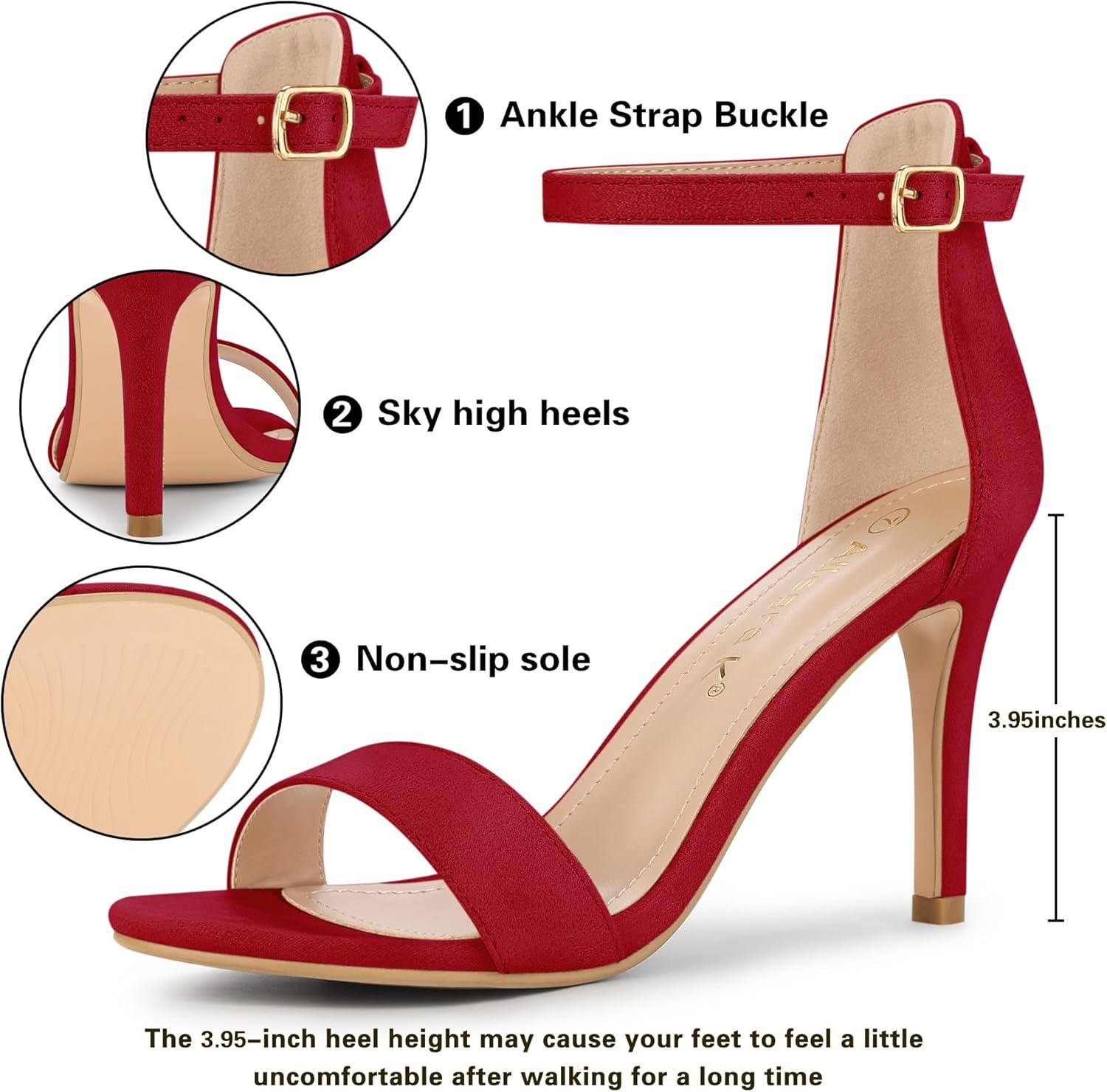 Allegra K Women’s Suede Ankle Strap High Stiletto Heel Sandals(Red)