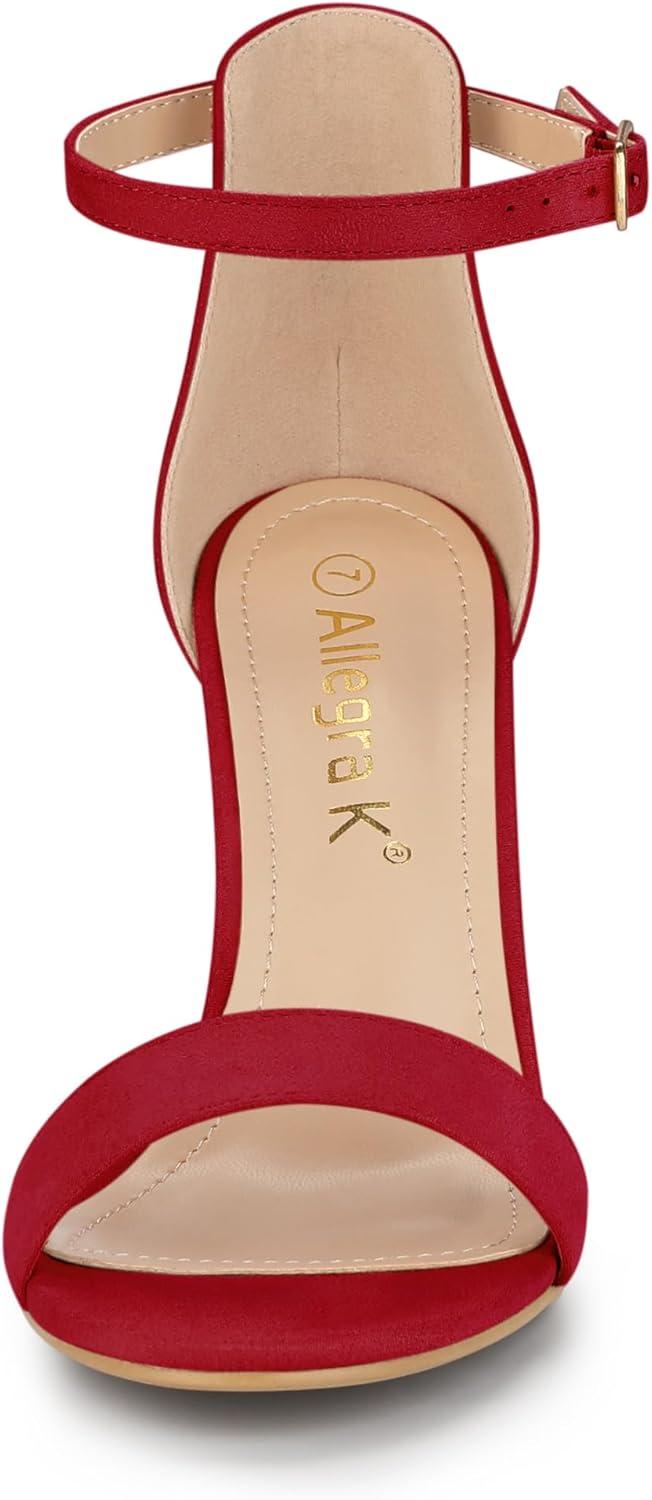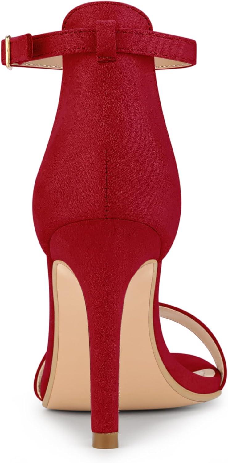 Allegra K Women's Suede Ankle Strap High Stiletto Heel Sandals(Red)