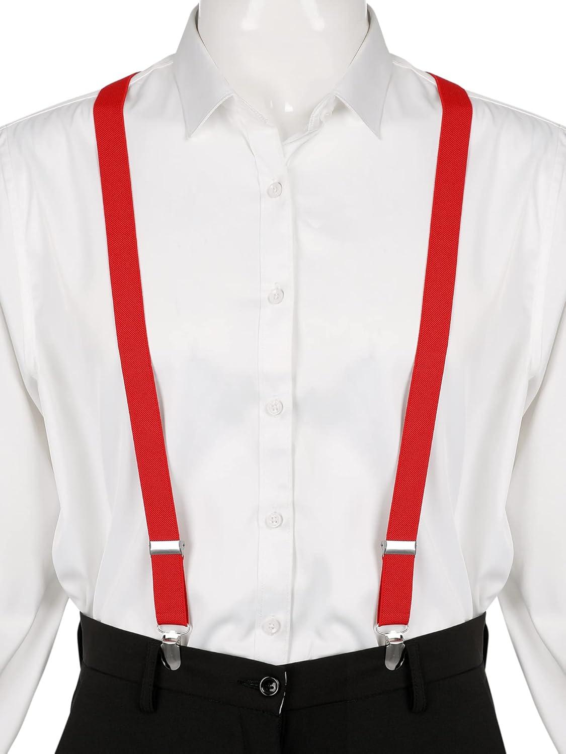 Allegra K Women's Suspenders Metal Clips Adjustable Elastic Band Y Shaped Suspender(Red)
