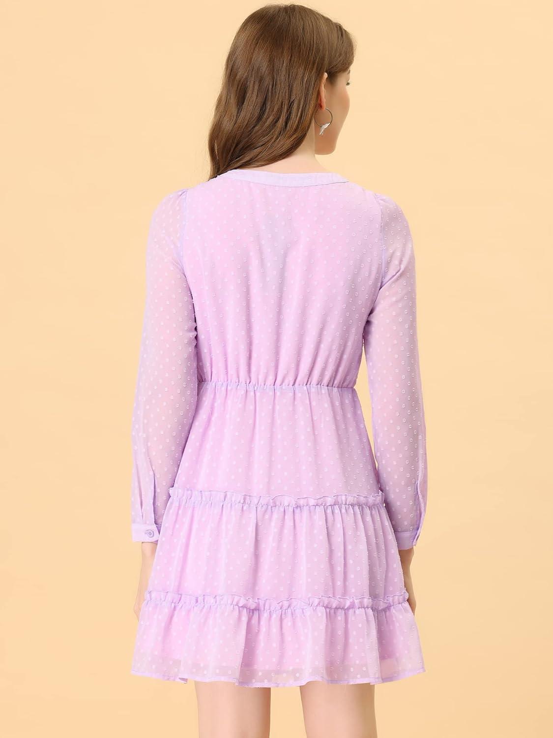 Allegra K Women's Swiss Dots Elastic Waist A-Line Tiered Flowy Chiffon Dress(Lavender)