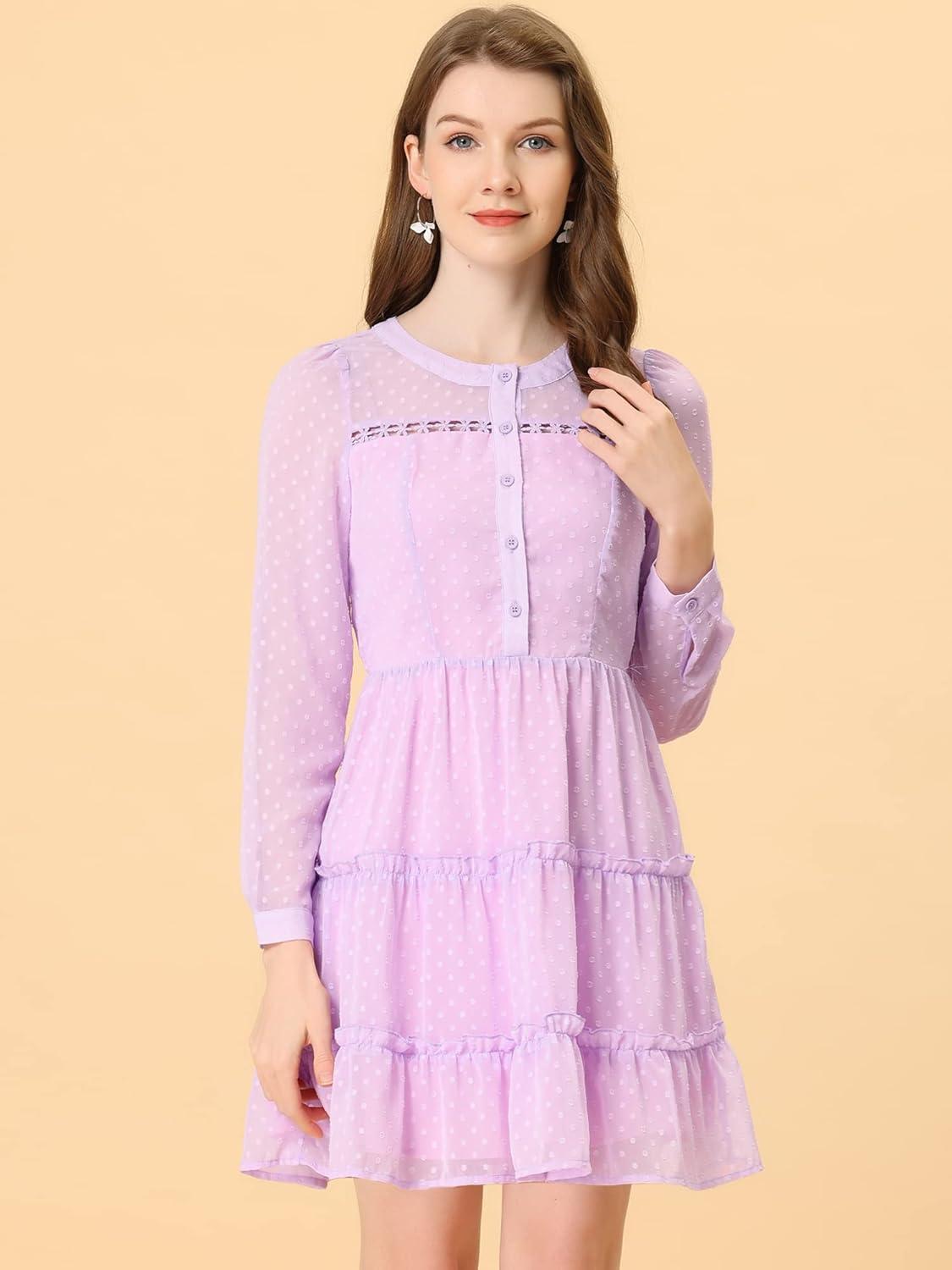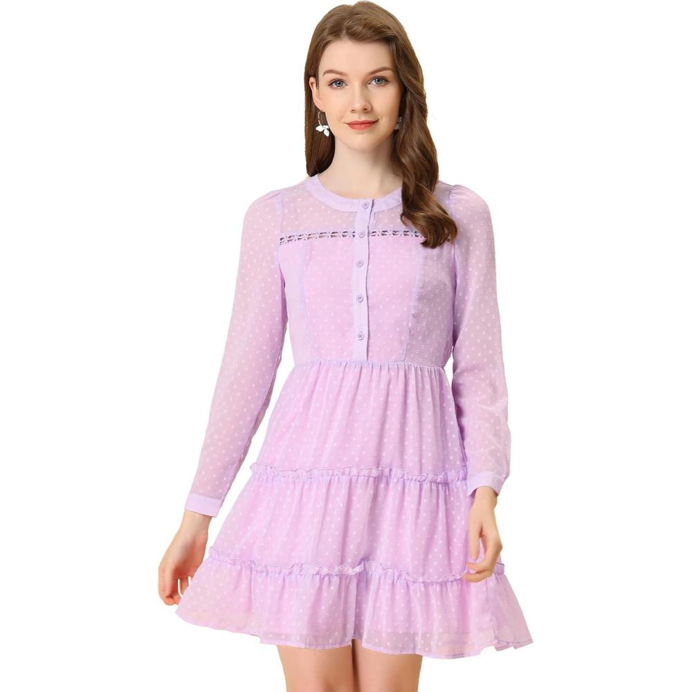 Allegra K Women’s Swiss Dots Elastic Waist A-Line Tiered Flowy Chiffon Dress(Lavender)
