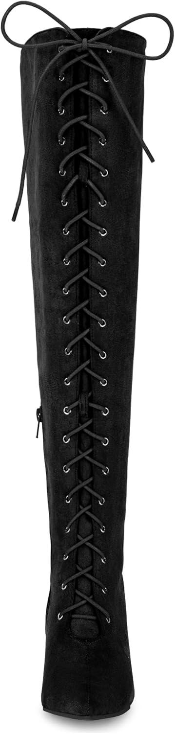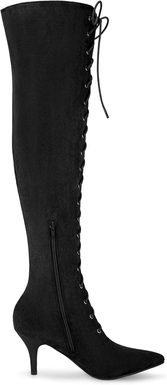 Allegra K Women's Thigh High Boots Lace Up Stiletto Heel Over Knee High Boots(Black)