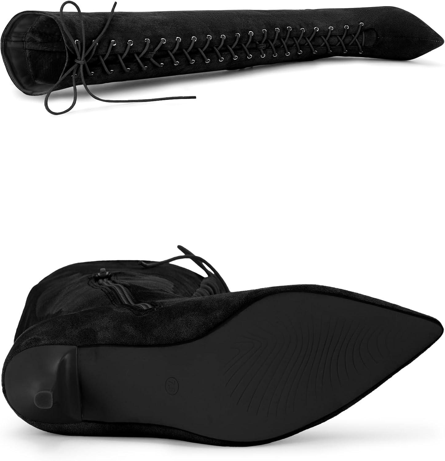 Allegra K Women’s Thigh High Boots Lace Up Stiletto Heel Over Knee High Boots(Black)