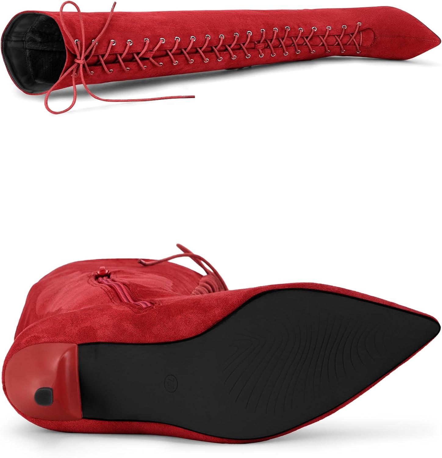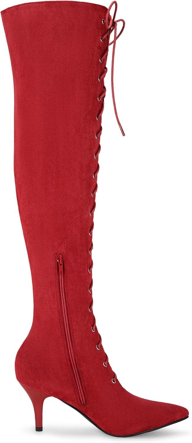 Allegra K Women’s Thigh High Boots Lace Up Stiletto Heel Over Knee High Boots(Red)
