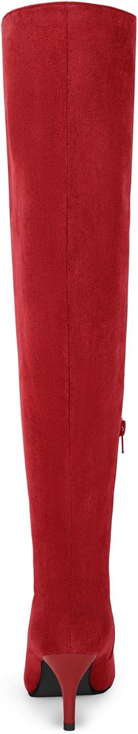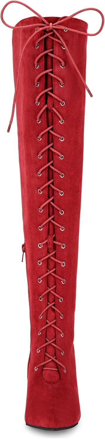 Allegra K Women's Thigh High Boots Lace Up Stiletto Heel Over Knee High Boots(Red)