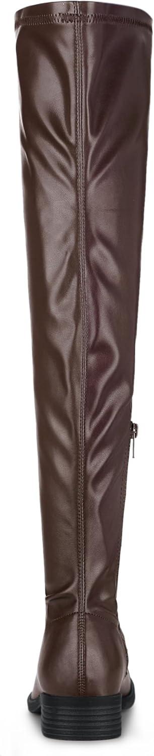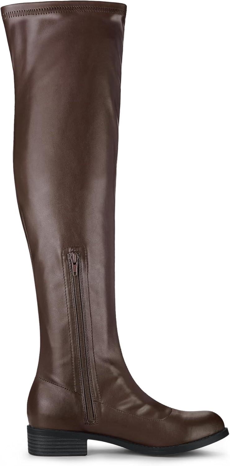 Allegra K Women’s Thigh High Boots Low Block Heel Fashion Over the Knee High Boots(Coffee)