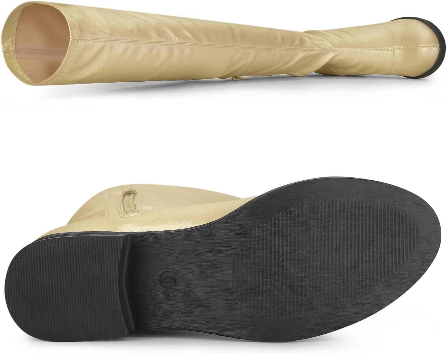 Allegra K Women’s Thigh High Boots Low Block Heel Fashion Over the Knee High Boots(Nude)