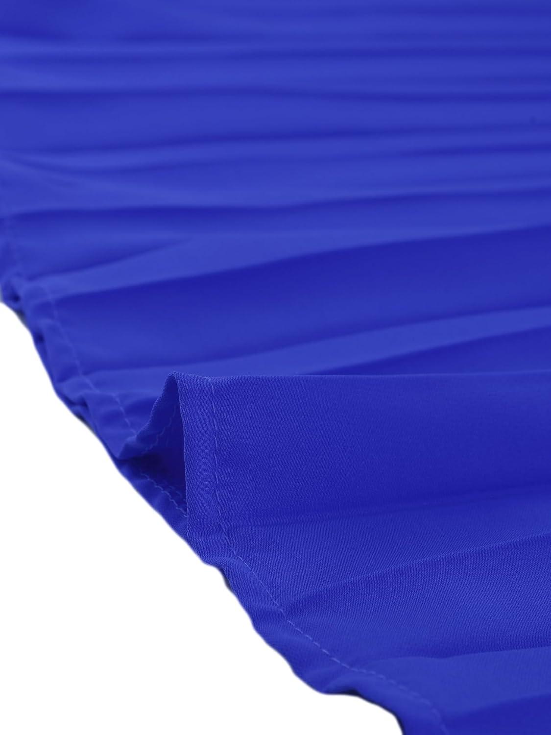 Allegra K Women's Tie Halter Neck Dress Sleeveless Summer Solid Color Flowy Pleated Beach Dress Sundress(Blue)