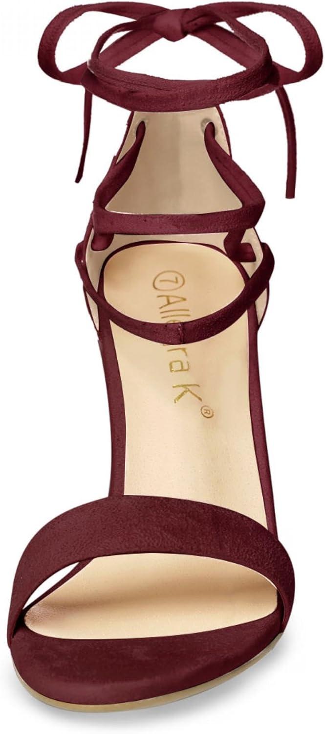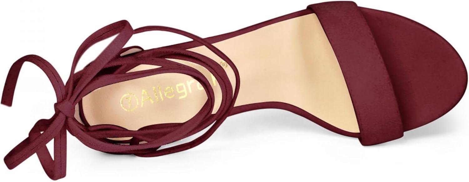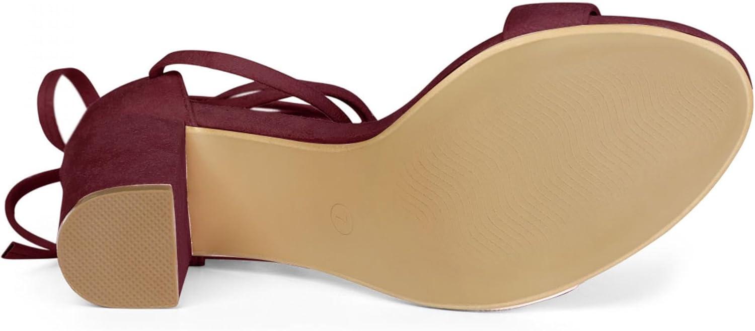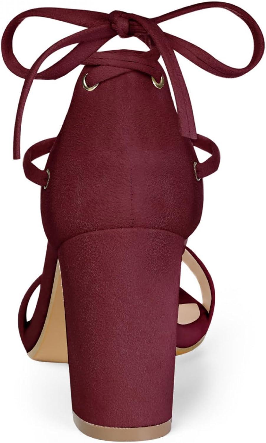 Allegra K Women’s Tie Up Heels Burgundy Open Toe Chunky High Heels Sandal 6.5 M US
