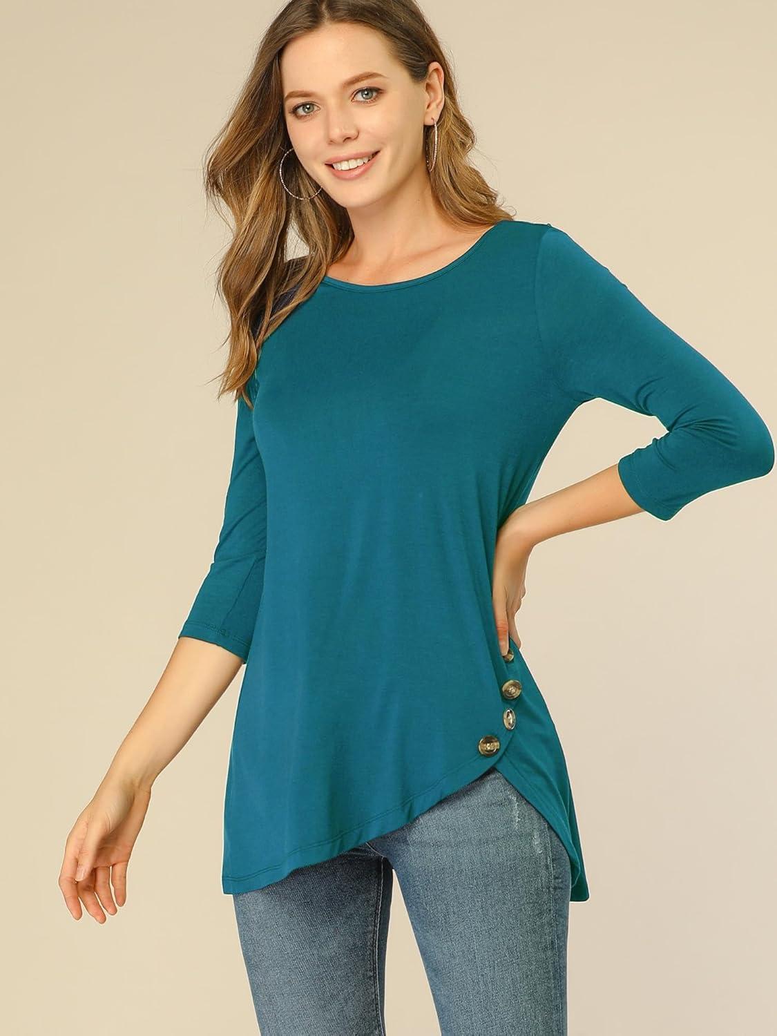 Allegra K Women’s Tunic Tops Loose Fit Dressy High Low Round Neck 2025 Fall 3/4 Sleeve Long Shirt(Lake Blue)