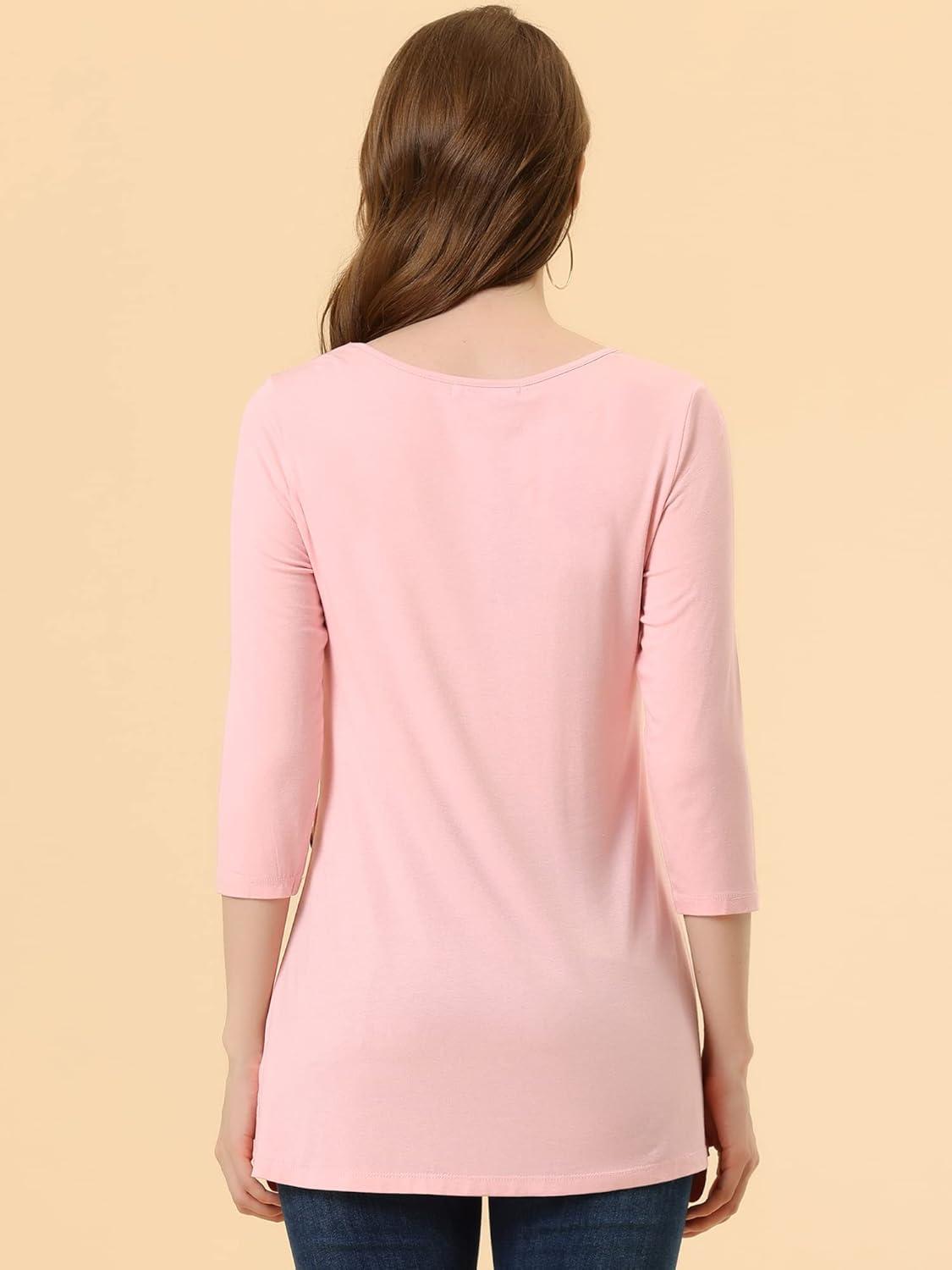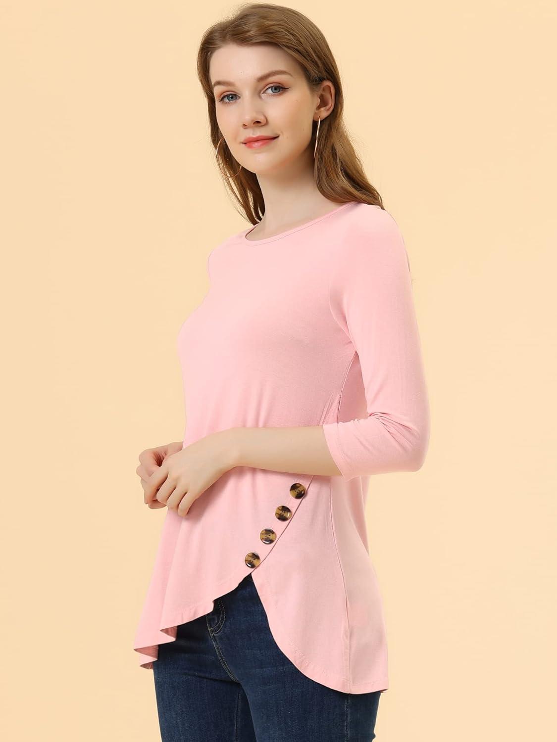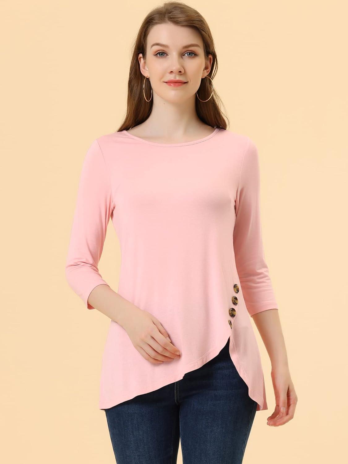 Allegra K Women's Tunic Tops Loose Fit Dressy High Low Round Neck 2025 Fall 3/4 Sleeve Long Shirt(Light Pink)