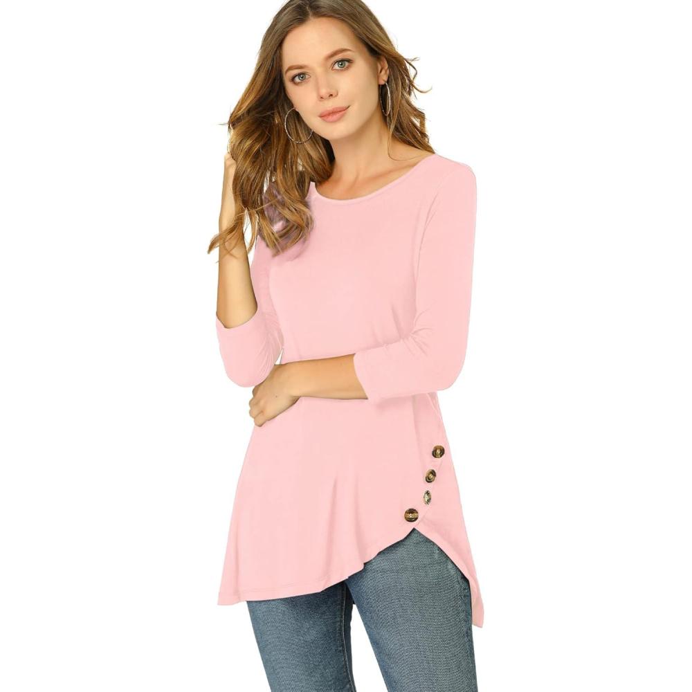 imageAllegra K Womens Tunic Tops Loose Fit Dressy High Low Round Neck 2025 Fall 34 Sleeve Long ShirtLight Pink