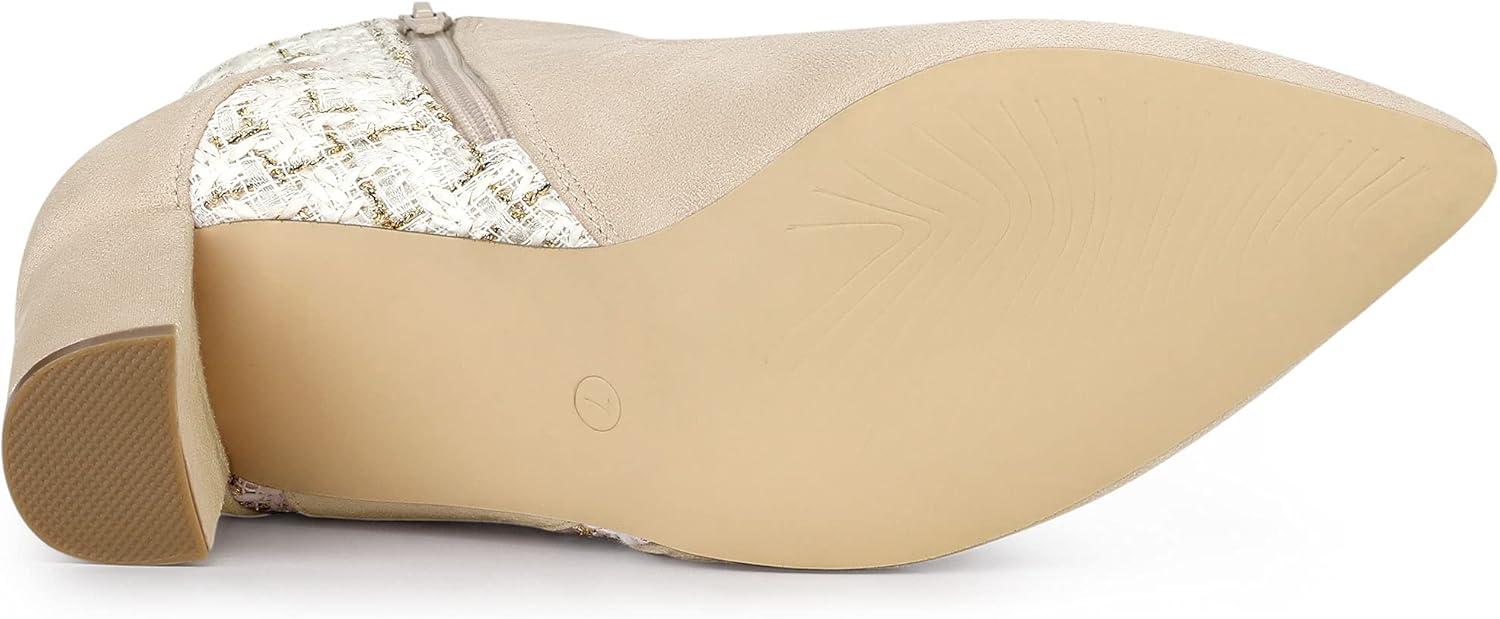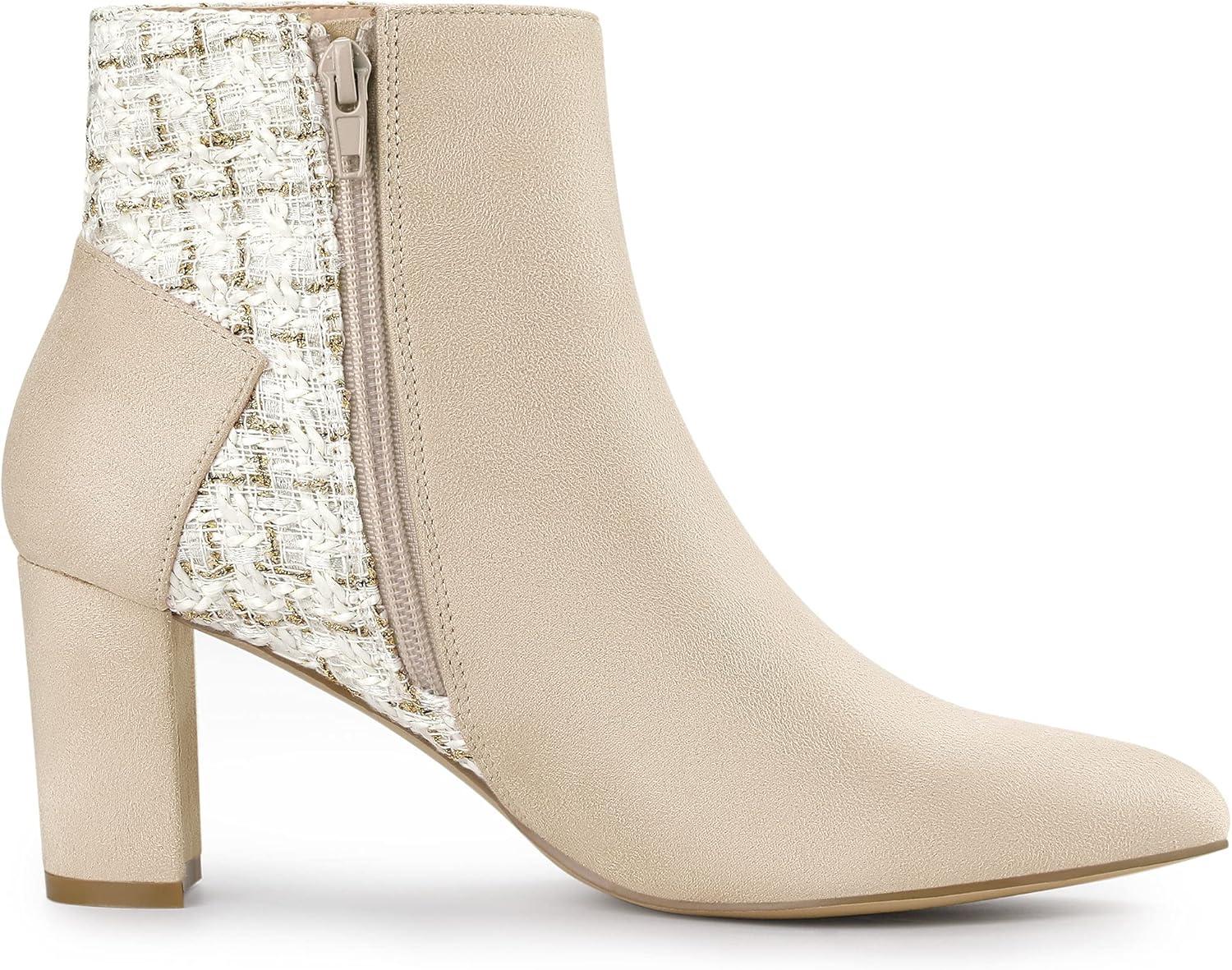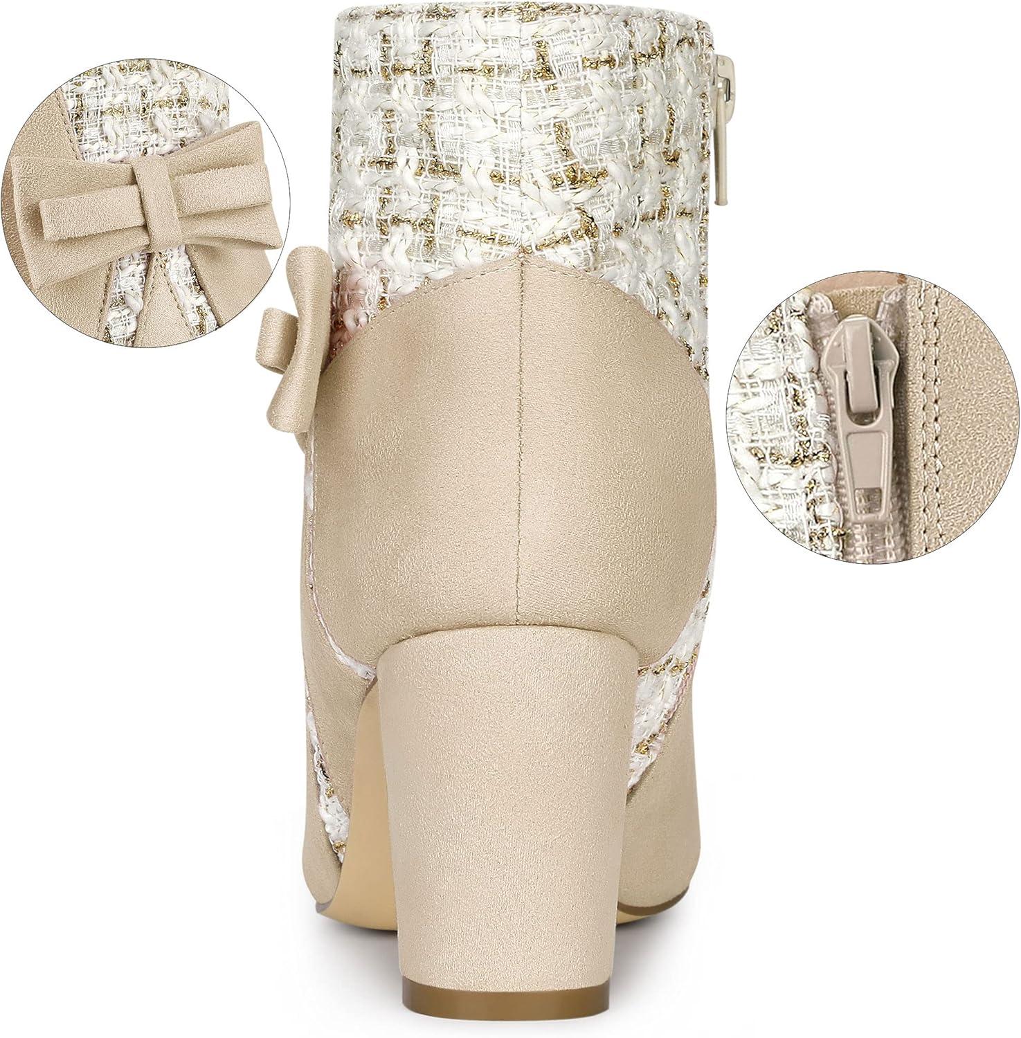 Allegra K Women’s Tweed Plaid Heels Boot Bow Block Heels Ankle Boots(Beige)