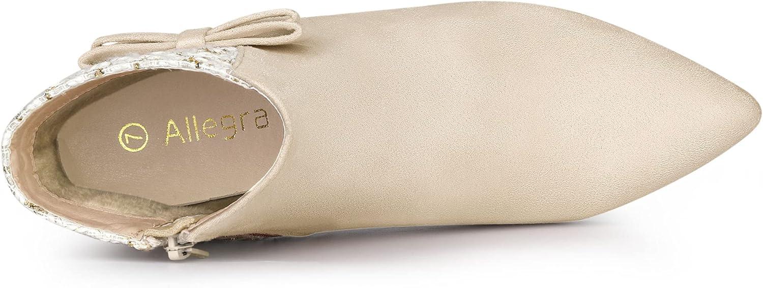 Allegra K Women's Tweed Plaid Heels Boot Bow Block Heels Ankle Boots(Beige)