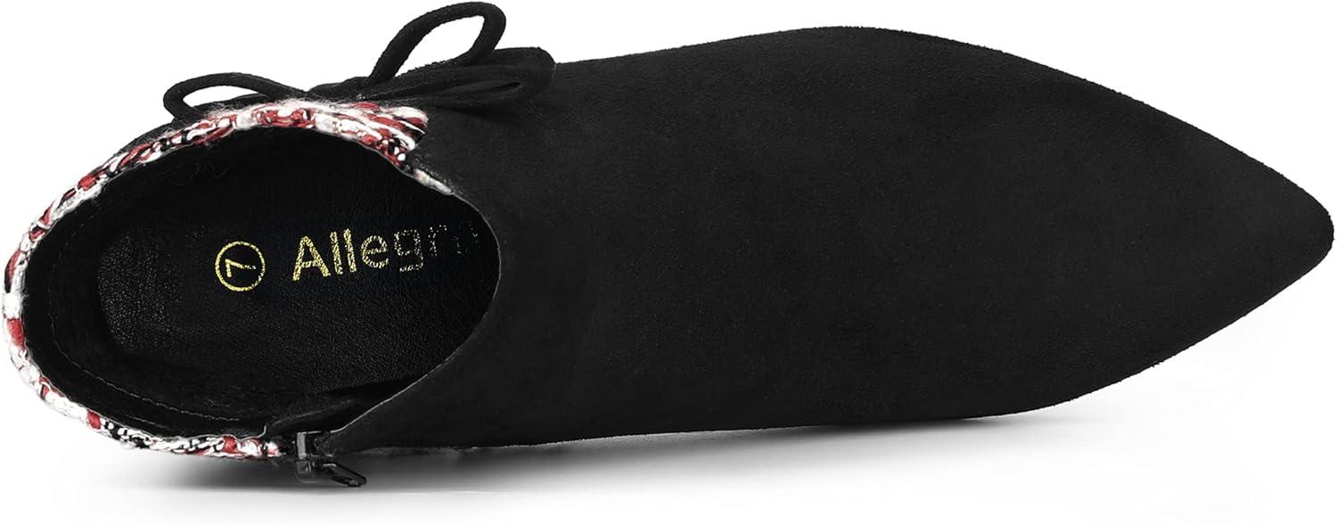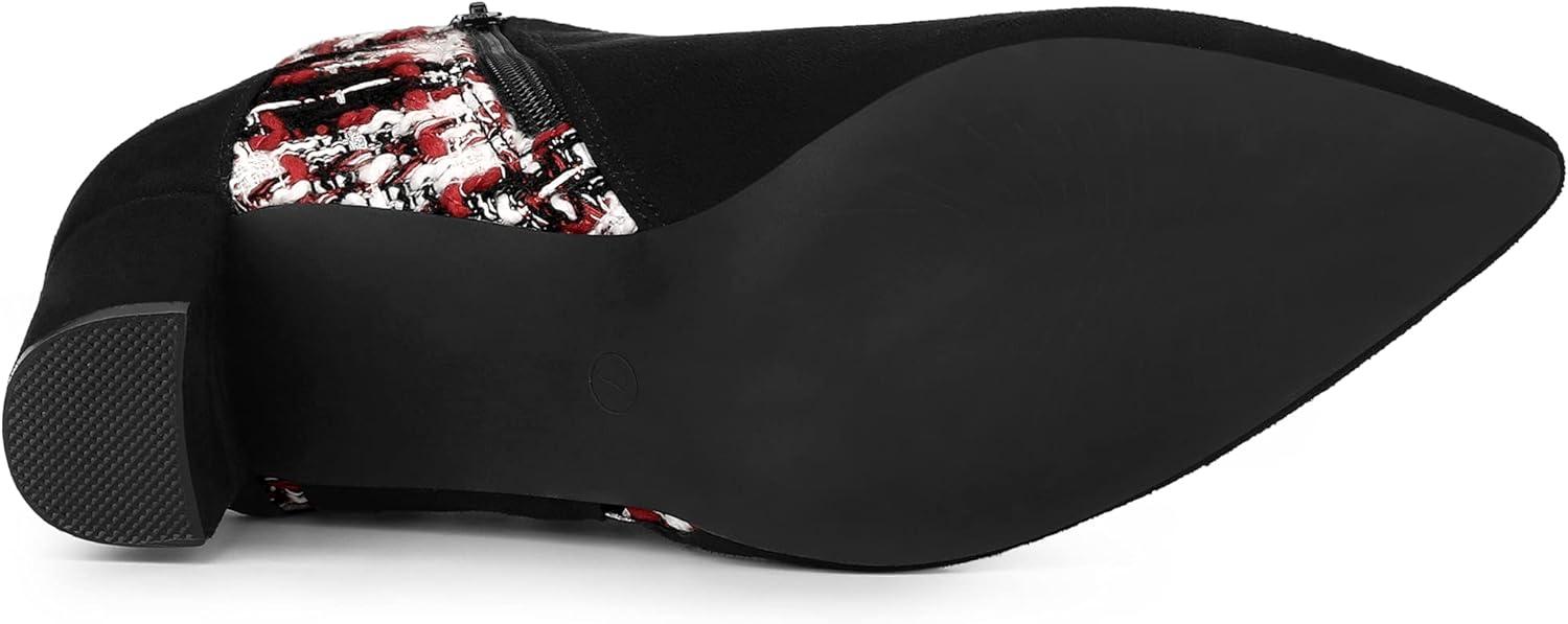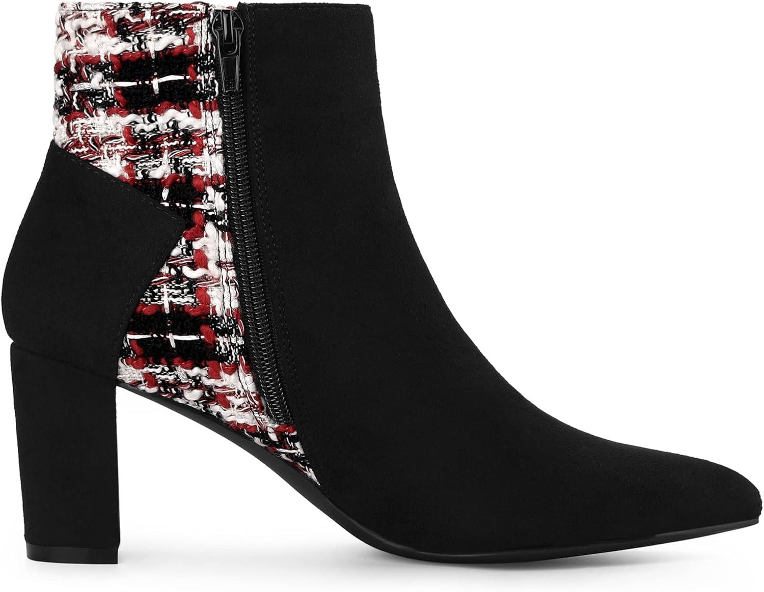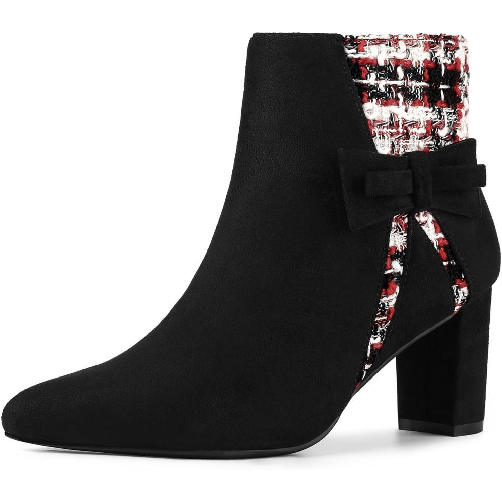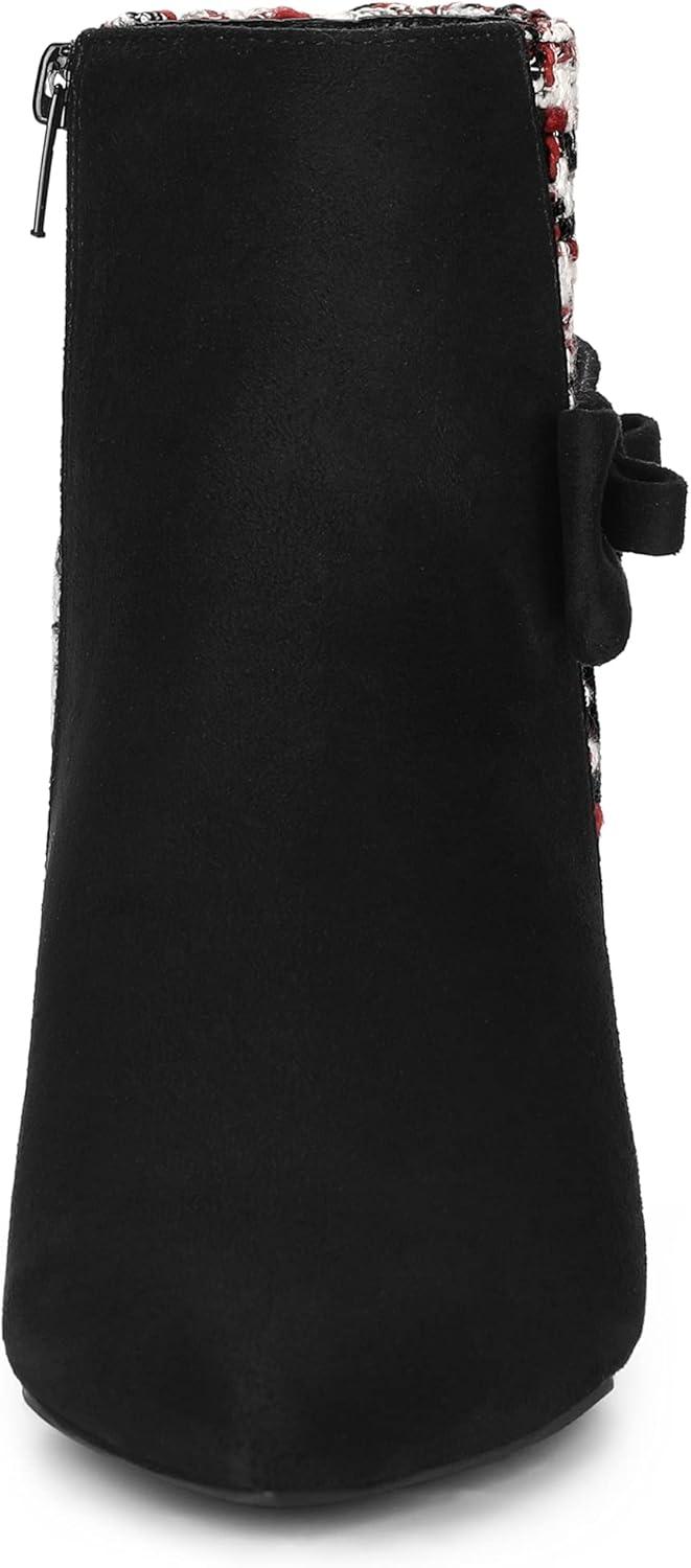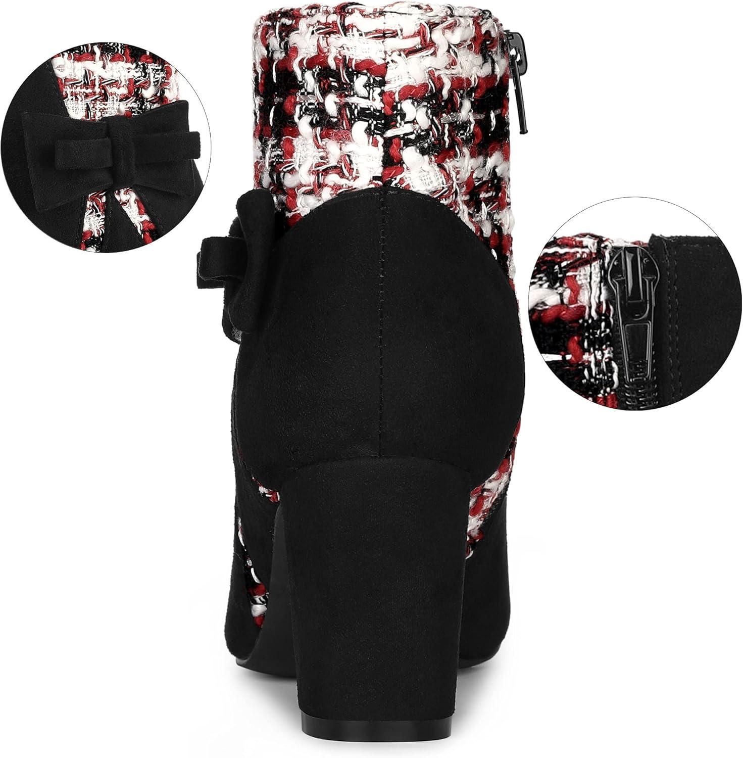 Allegra K Women's Tweed Plaid Heels Boot Bow Block Heels Ankle Boots(Black)