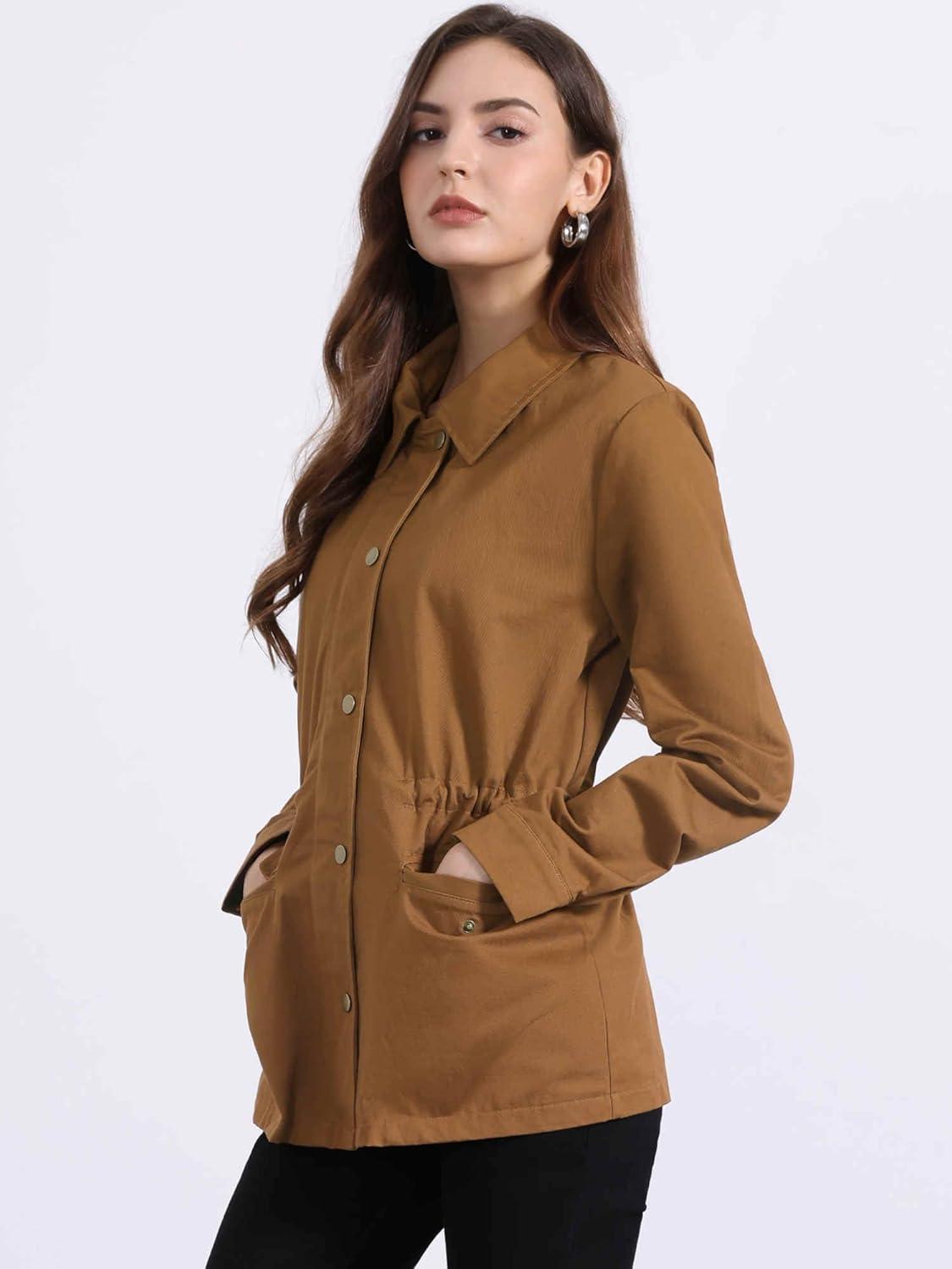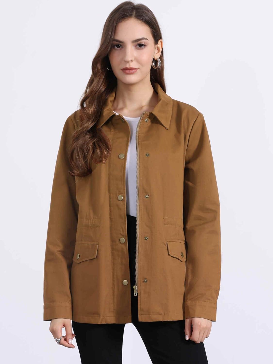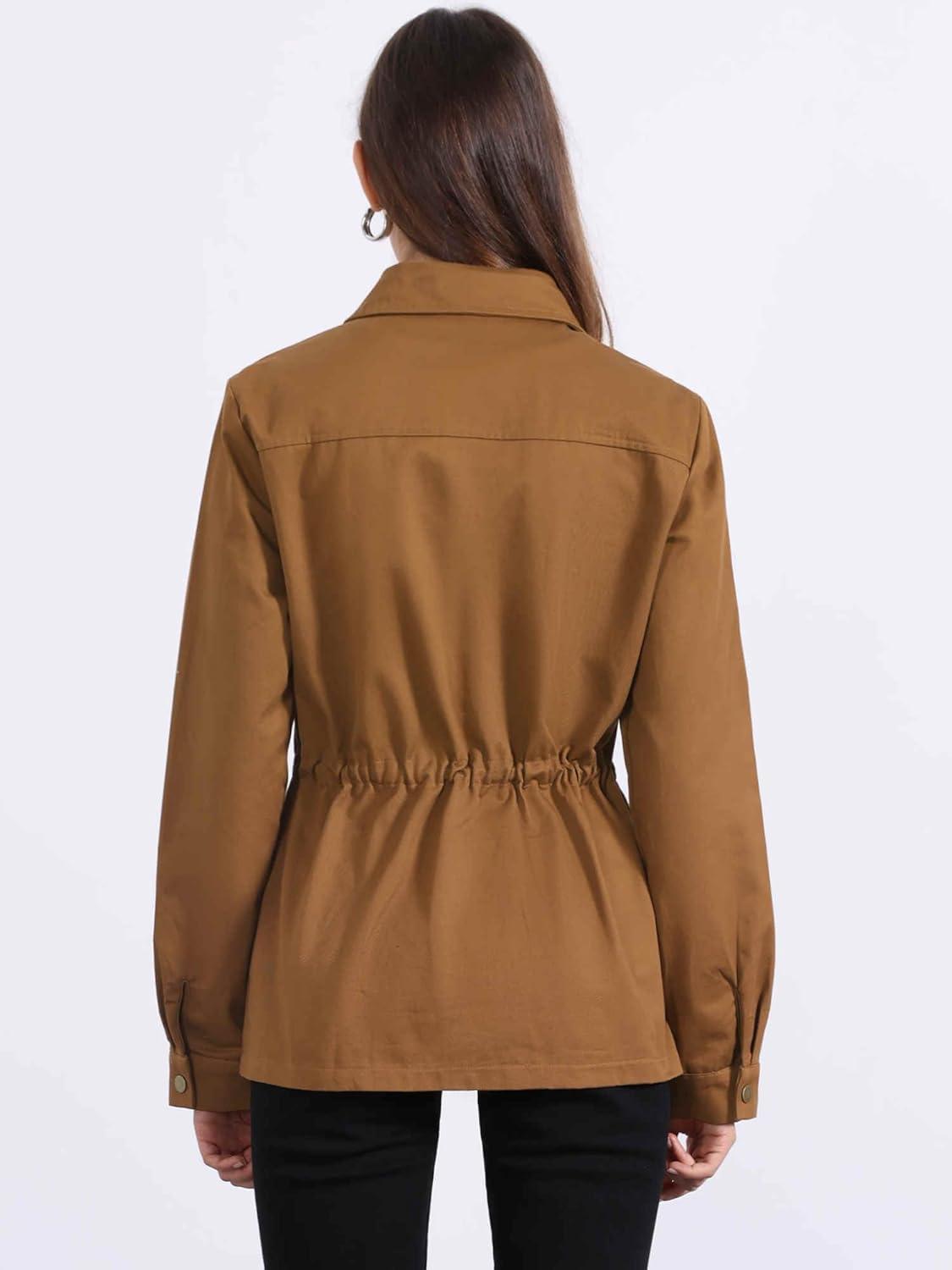 Allegra K Women's Utility Jacket Zip Up Drawstring Waist Snap Buttons Lightweight Anorak Jackets with Pockets(Caramel)