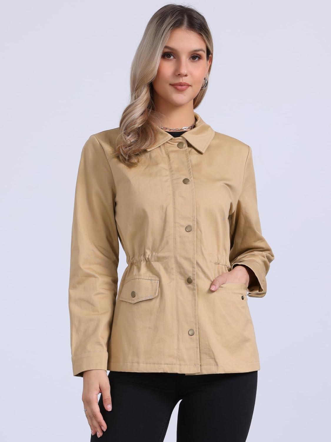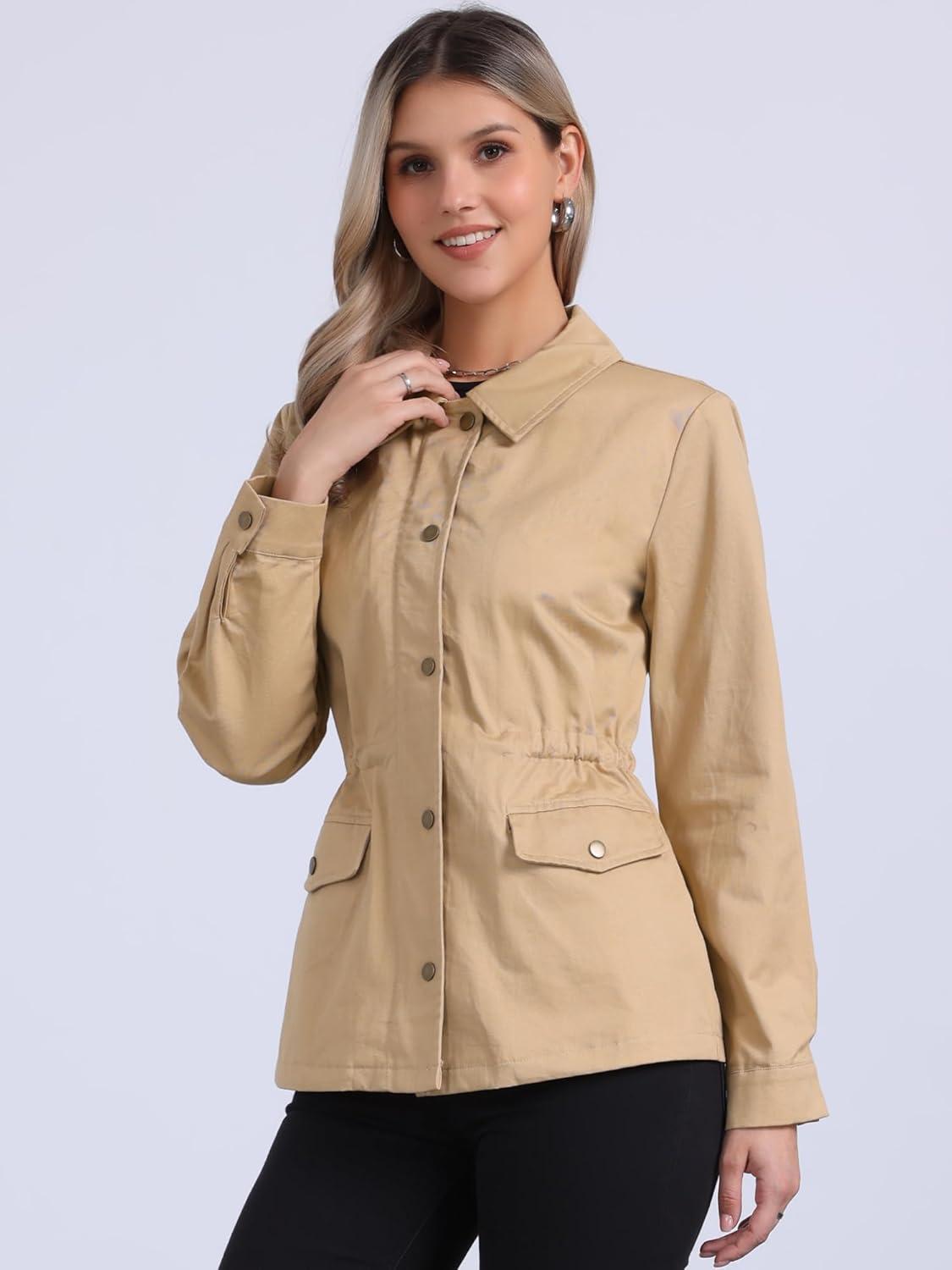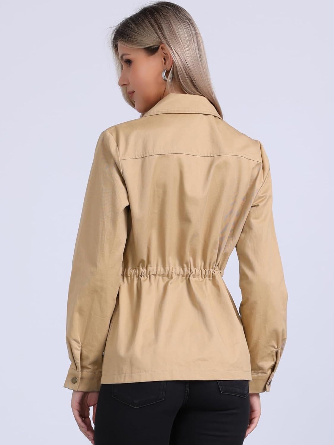 imageAllegra K Womens Utility Jacket Zip Up Drawstring Waist Snap Buttons Lightweight Anorak Jackets with PocketsLight Khaki