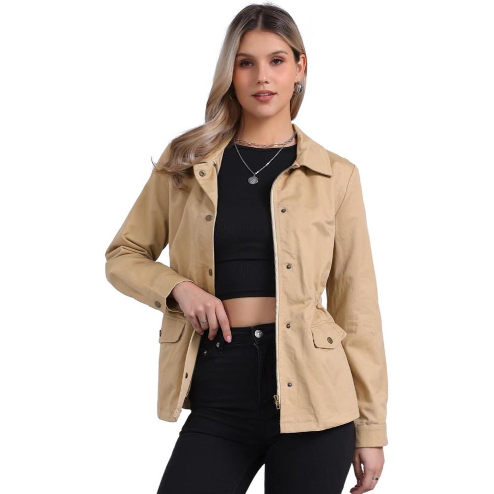 imageAllegra K Womens Utility Jacket Zip Up Drawstring Waist Snap Buttons Lightweight Anorak Jackets with PocketsTan Khaki
