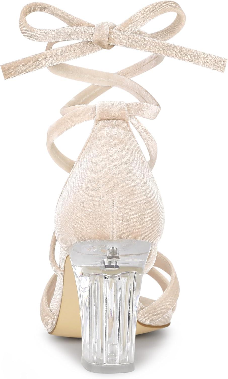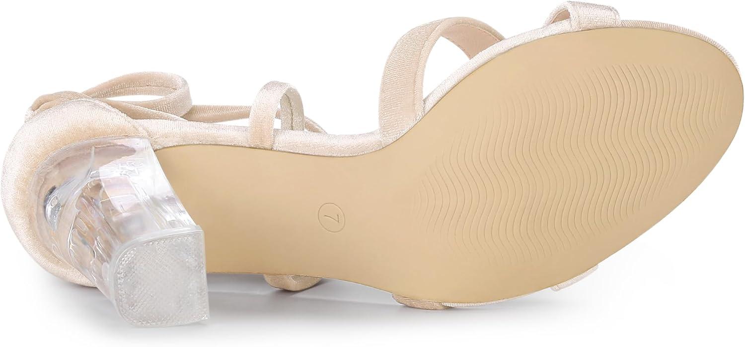 Allegra K Women’s Velvet Lace Up Clear Heels Block Heel Sandals(Beige)