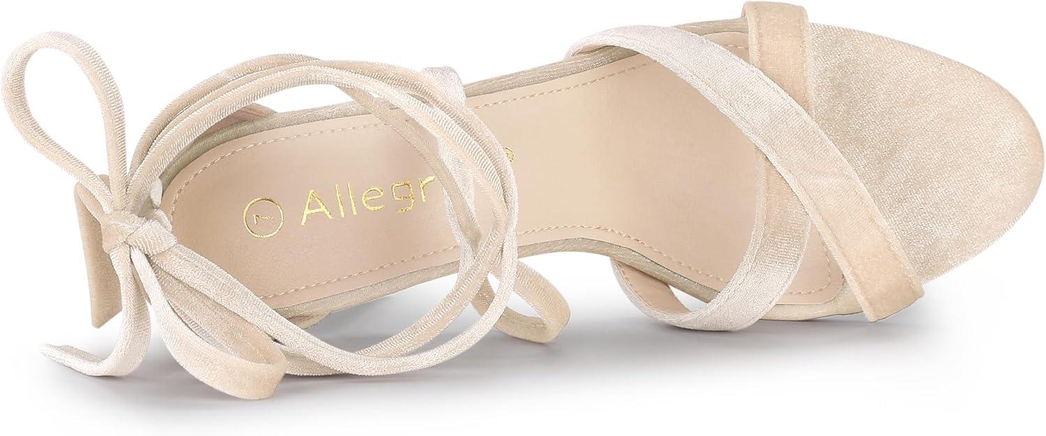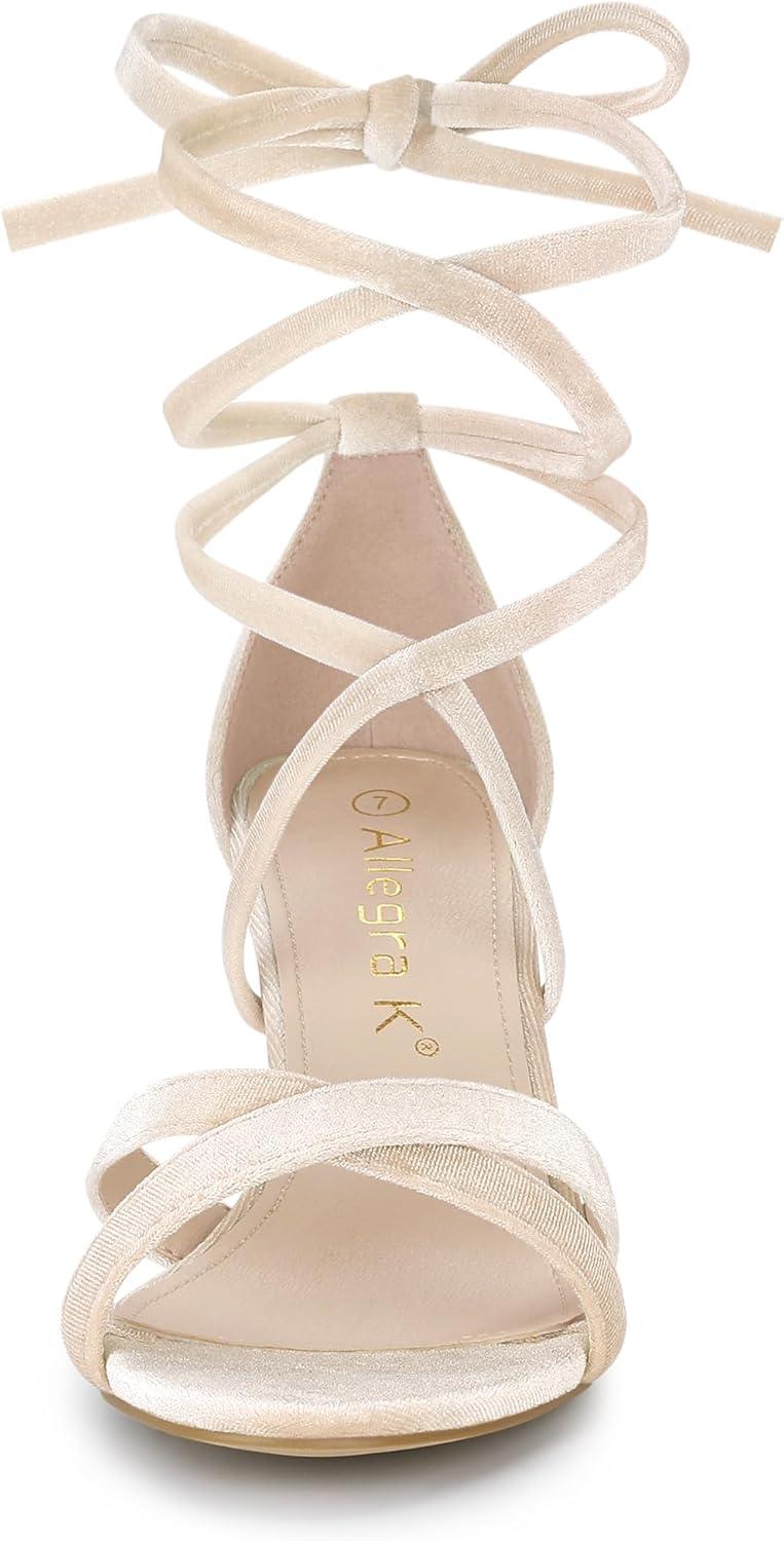 Allegra K Women's Velvet Lace Up Clear Heels Block Heel Sandals(Beige)