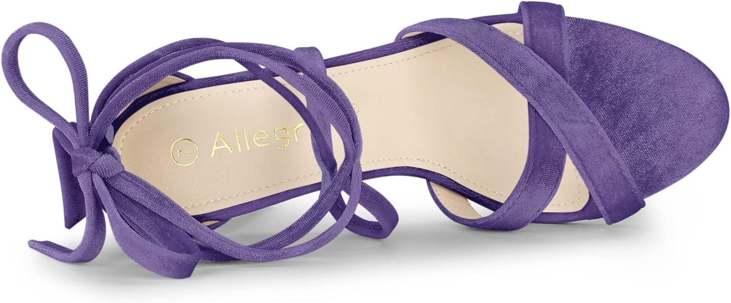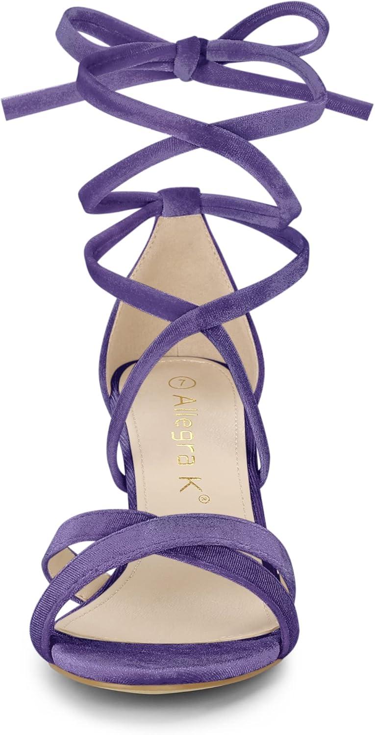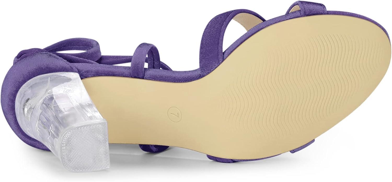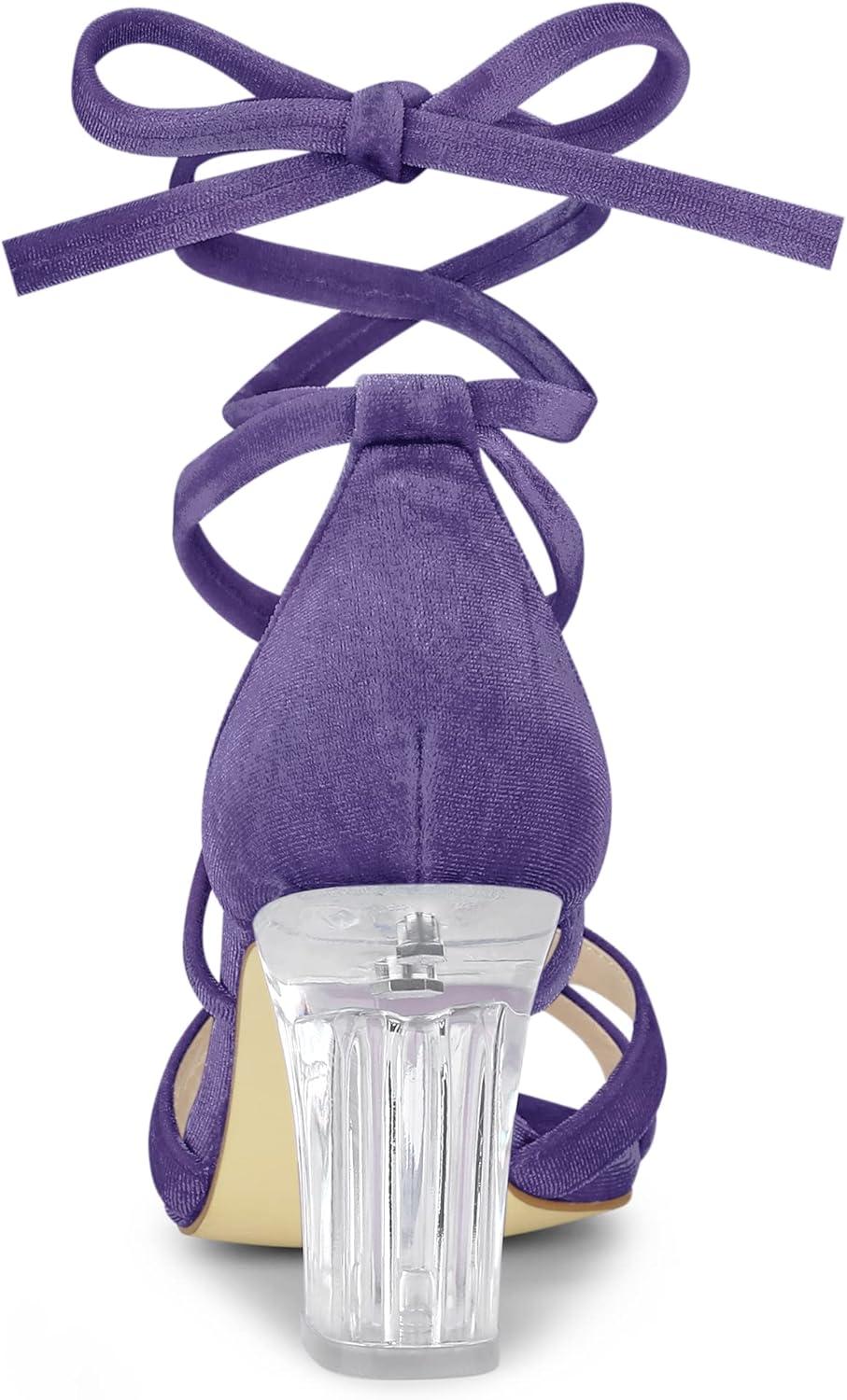 Allegra K Women’s Velvet Lace Up Clear Heels Block Heel Sandals(Elegant Purple)