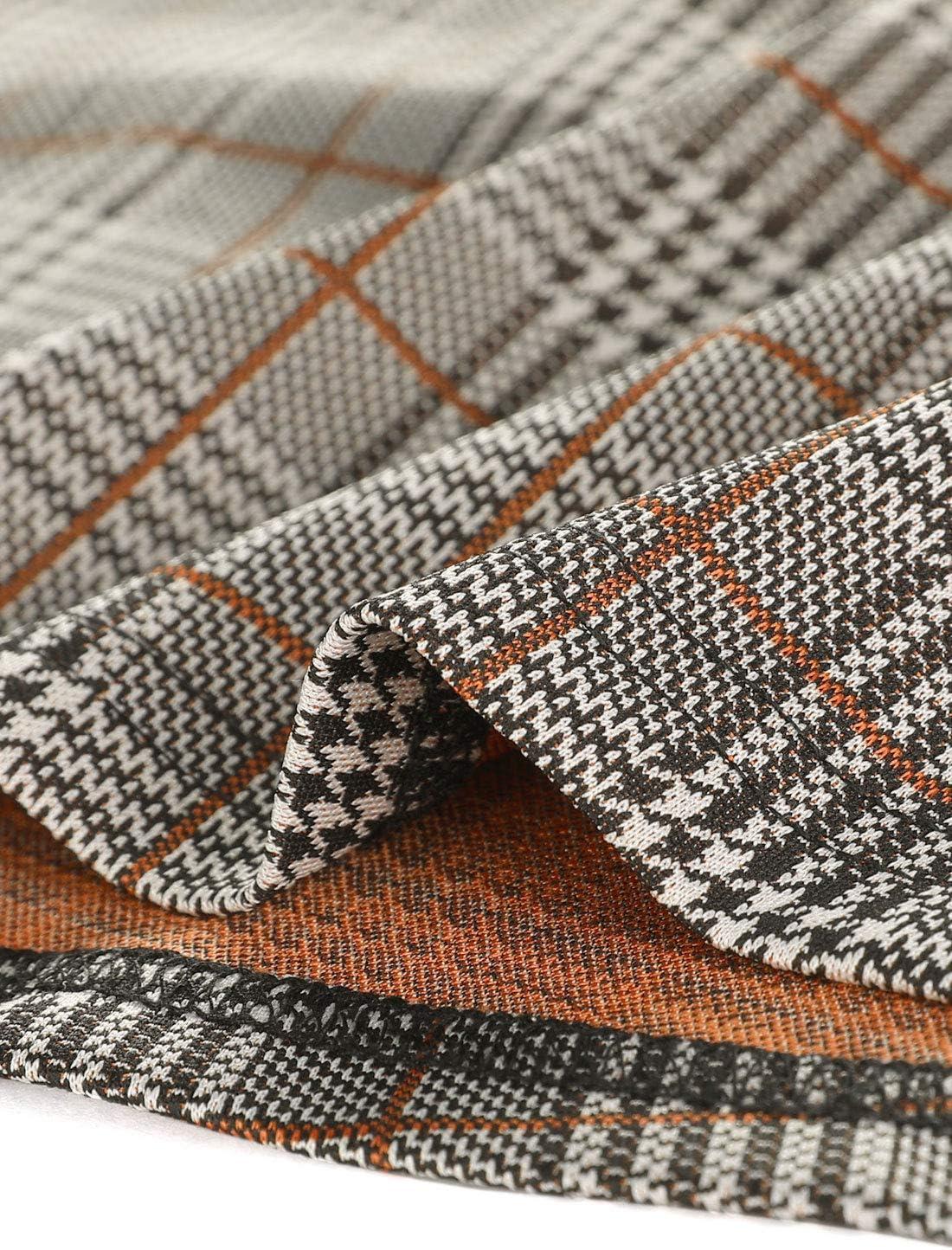 Allegra K Women's Vintage Plaid Dress Retro Square Neck Long Sleeve Office Work Christmas Mini Dresses(Brown)